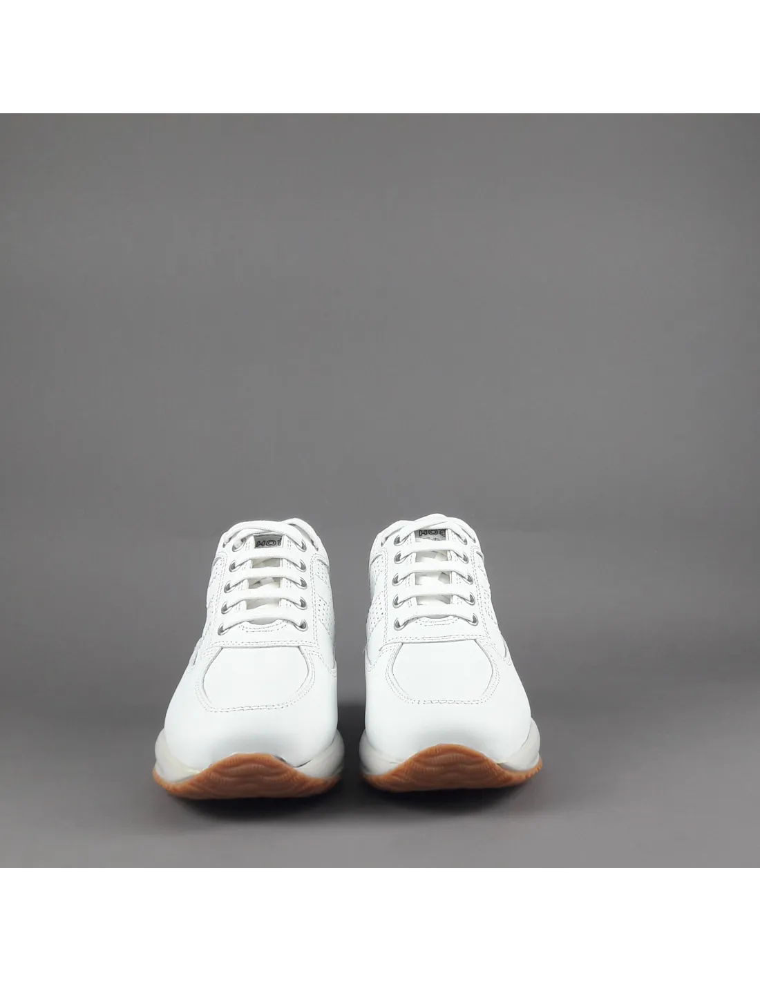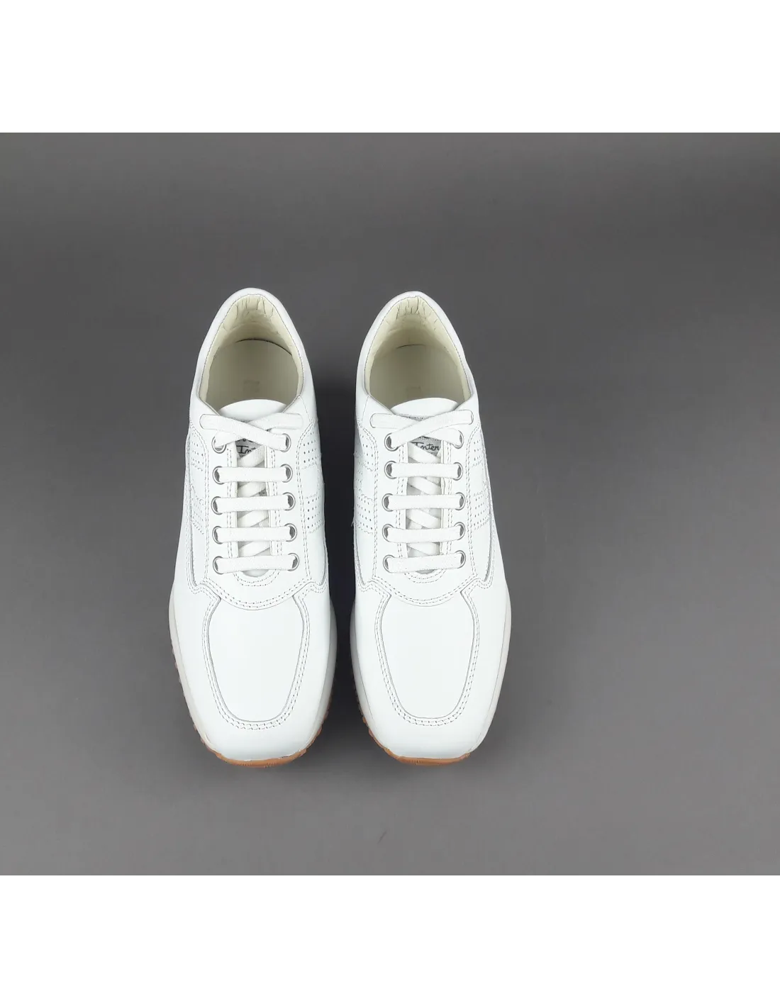 Collezione estiva, Hogan interactive donna in pelle bianca, con impunture a vista e H laterale traforata, fousbett estraibile, fondo gomma.
