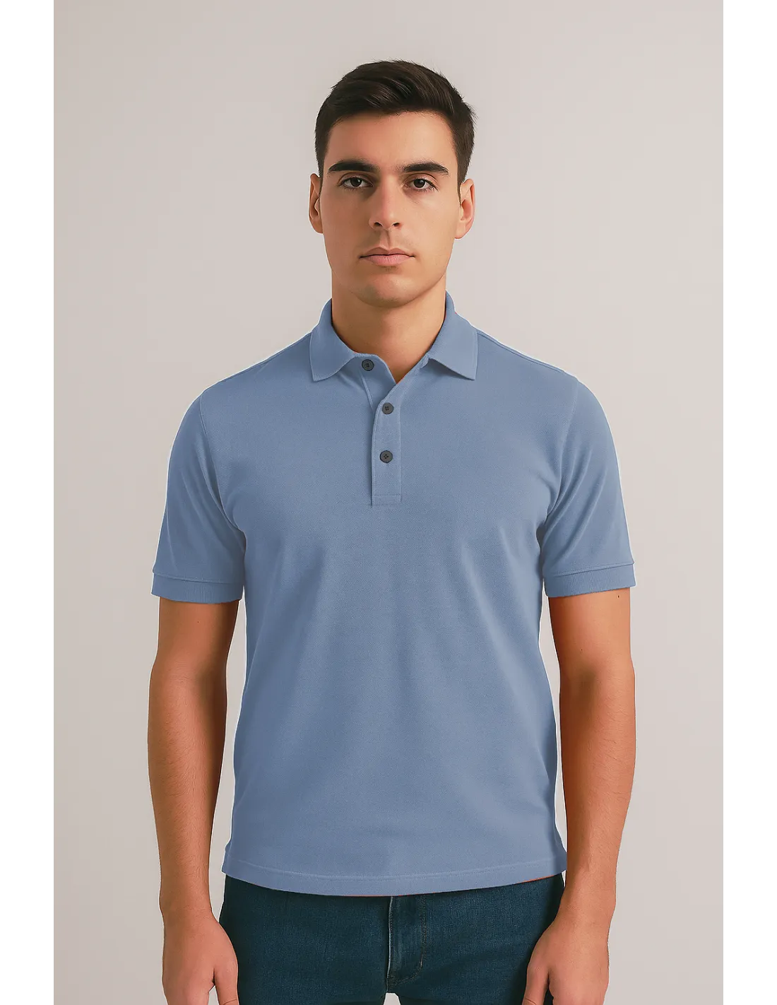 Collezione estiva, polo uomo Filippo De Laurentiis, in piquet di cotone avion chiaro, manica corta, chiusura con tre bottoni, vestibilità regular