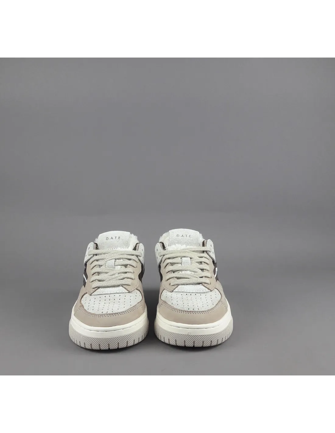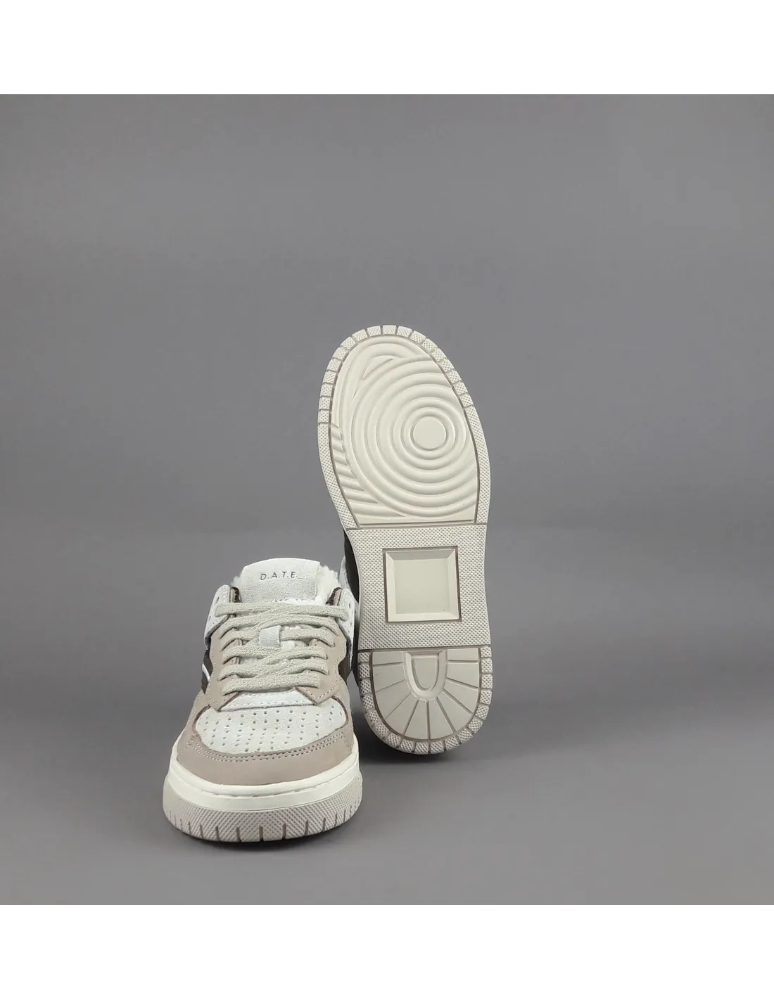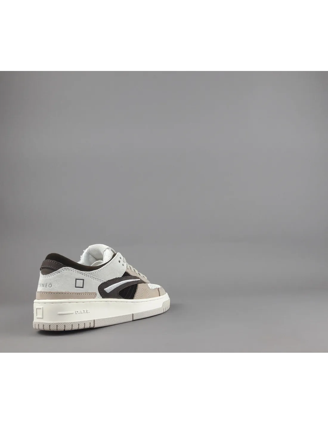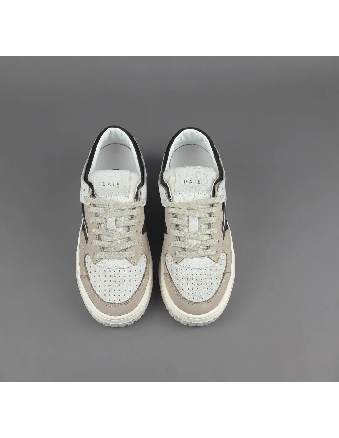 Collezione invernale, Sneakers donna D.A.T.E. TORNEO POP in camoscio ghiaccio e nabuk beige, spoiler in velluto marrone, baffo laterale e dettagli in nabuk marrone, logo laterale impresso, fondo cucito, soletta interna removibile di 2,5 cm, suola in gomma.