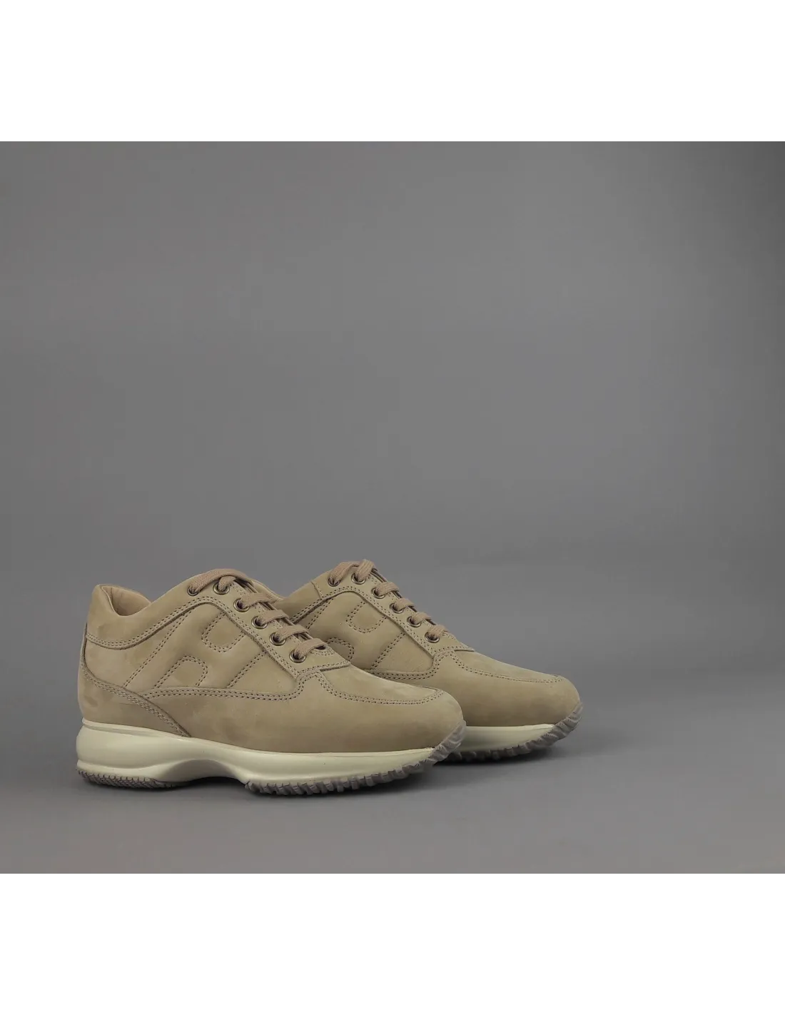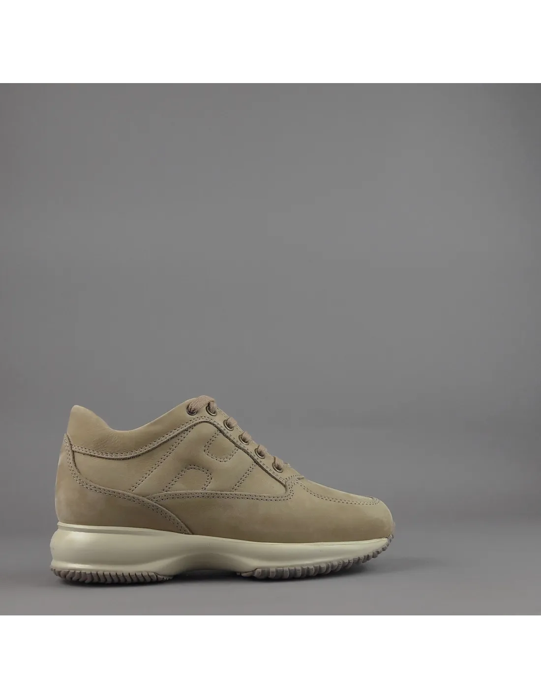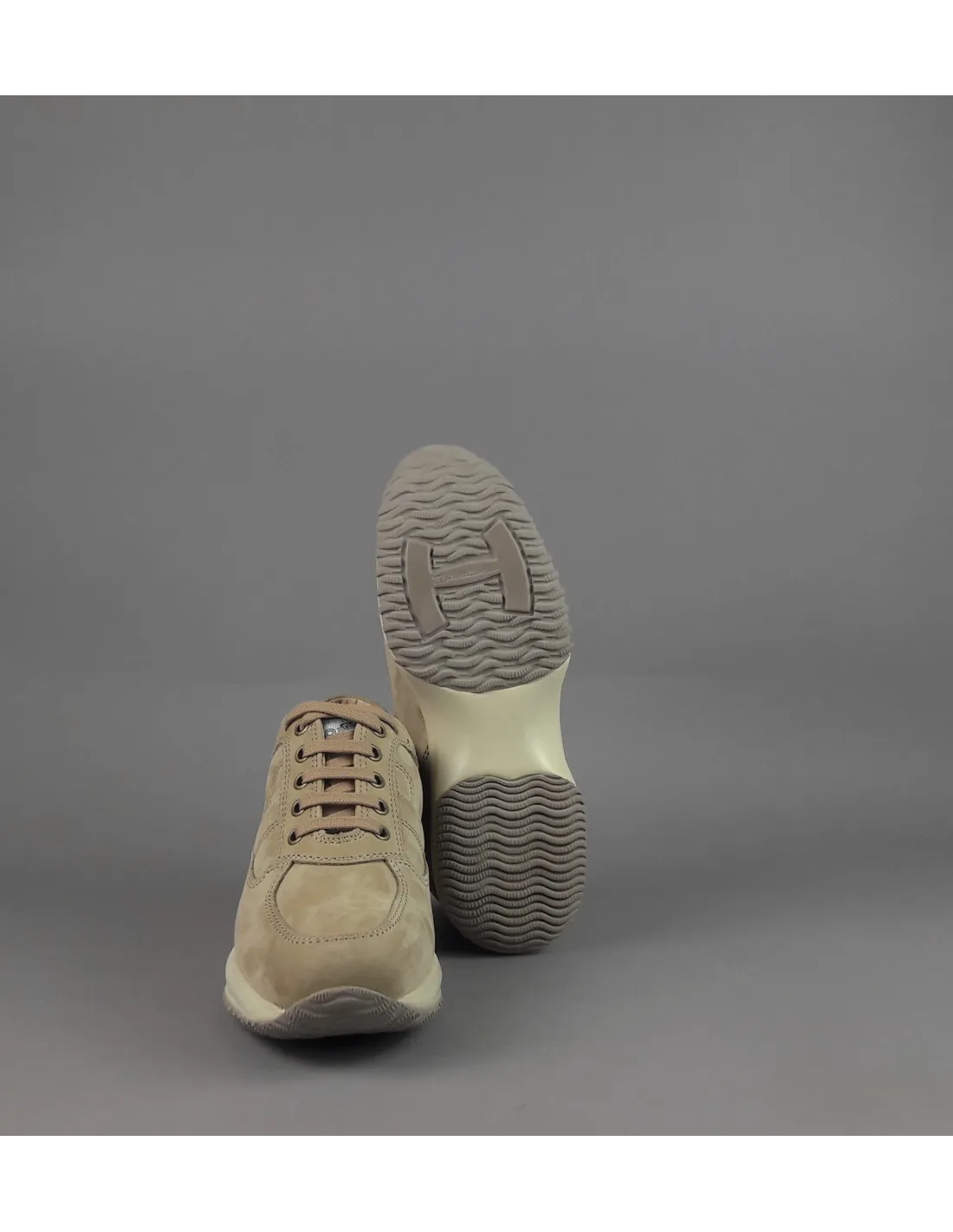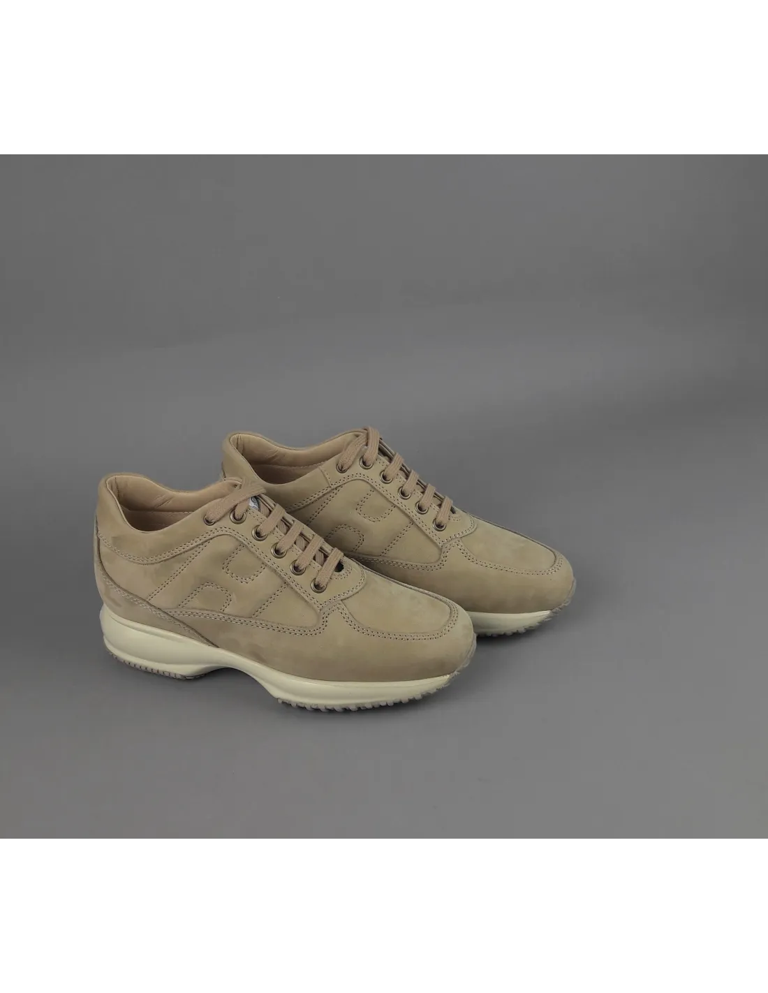 Collezione invernale, Sneakers hogan interactive donna, camoscio, H imbottita, fussbett estraibile 2 cm, fondo gomma.