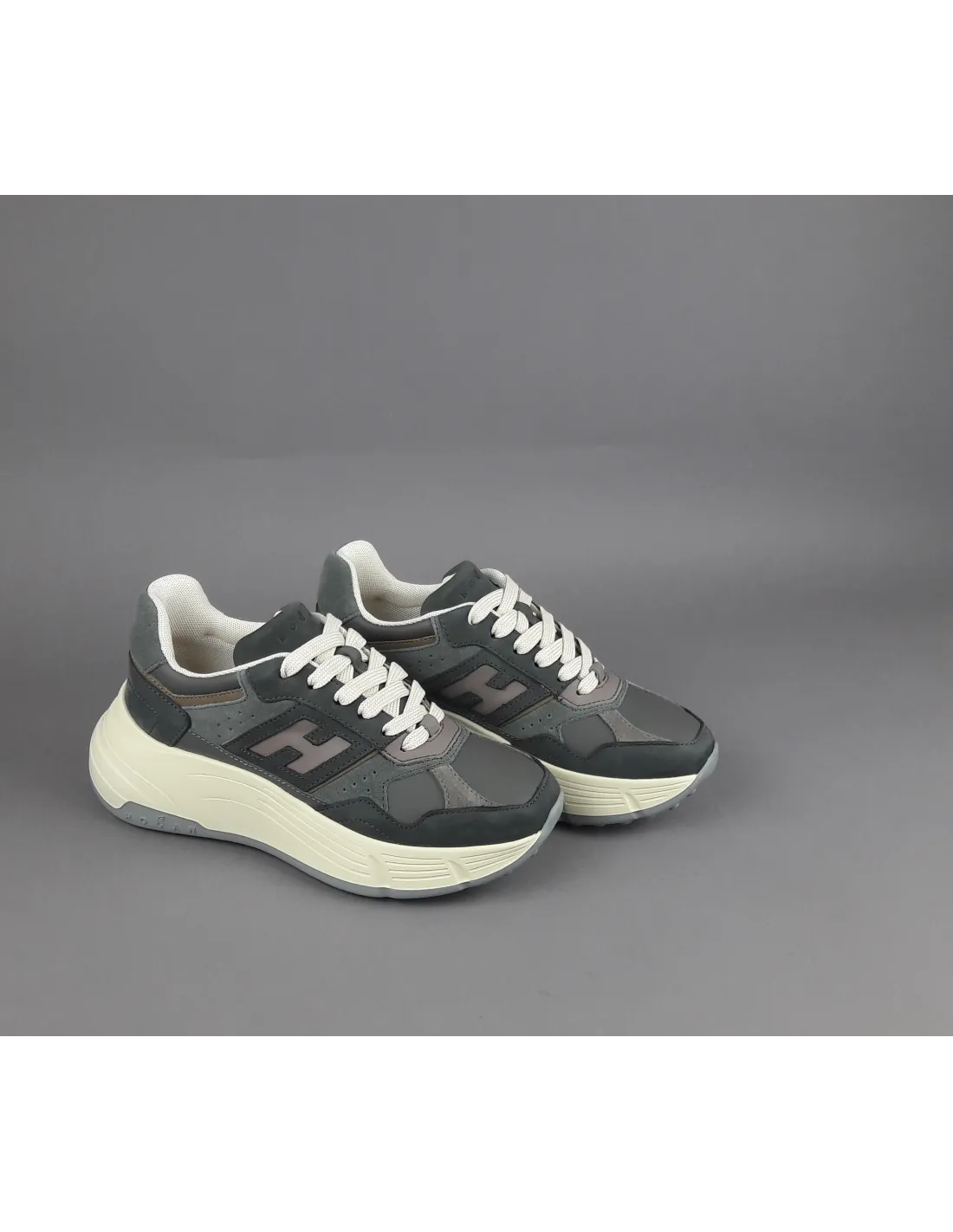 Collezione invernale, Hogan donna H669 in nabuk, inserti in camoscio, dettagli puntale in pelle, h laterale cucita, impunture a vista, foussbett estraibile in memory foam, fondo gomma.