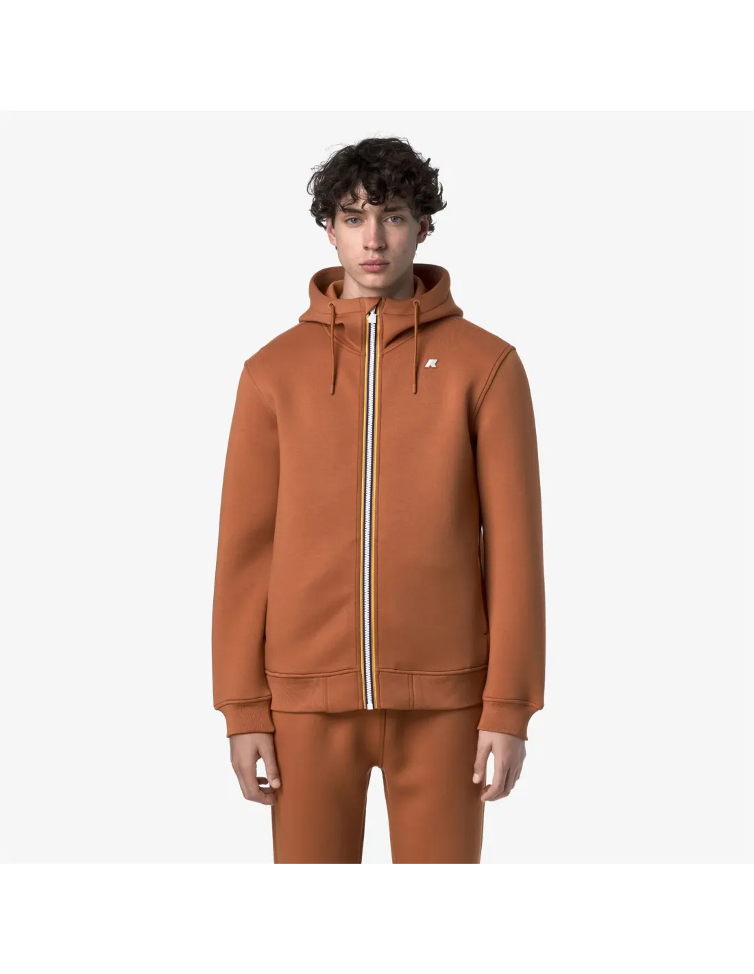 Collezione invernale, K-Way giacca uomo Rainer spacer, tessuto scuba stretch, chiusura con zip, tasche laterali, cappuccio fisso regolabile, fit regolare, logo silicone.