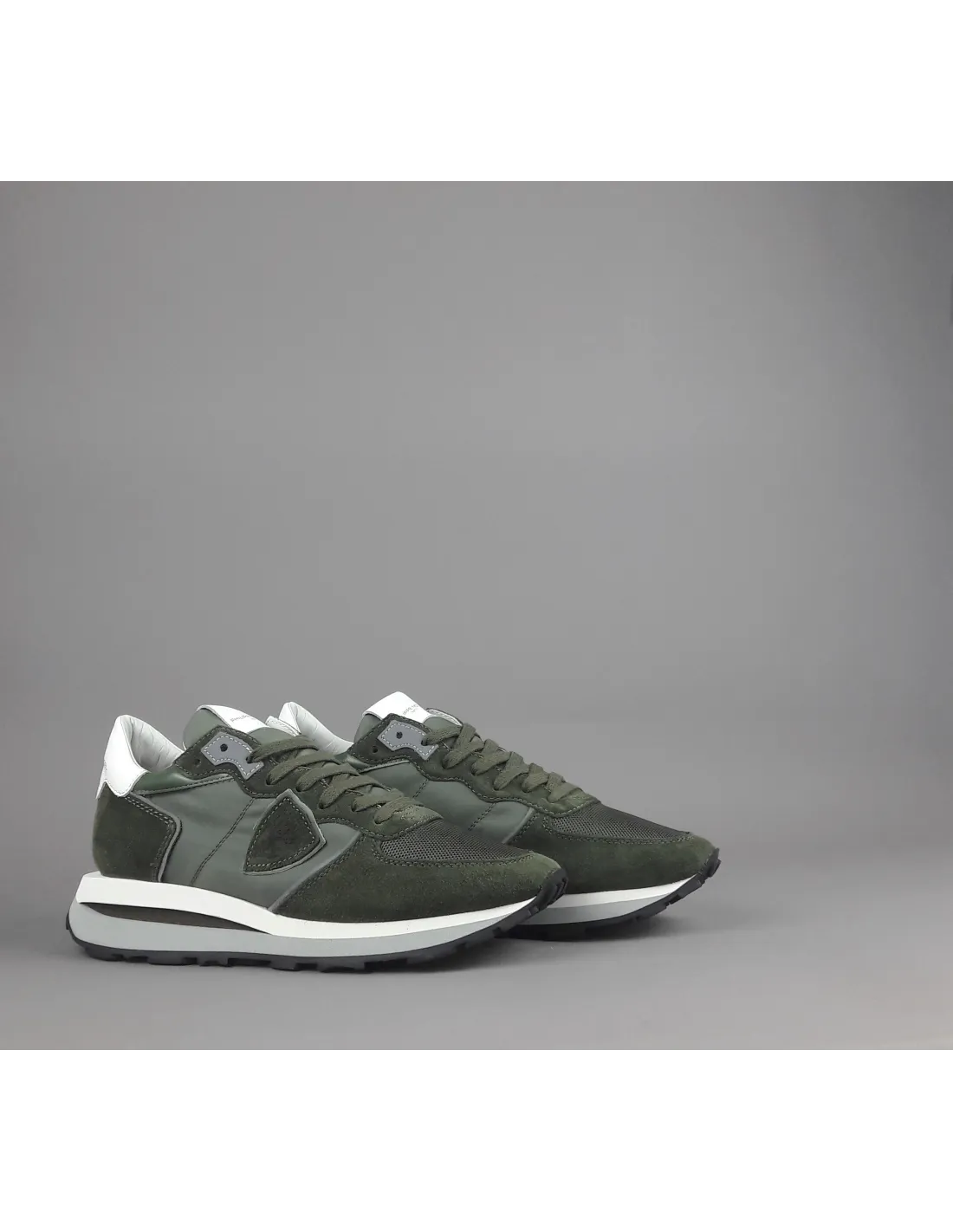 Philippe Model \ Sneakers Uomo New Tropez Camoscio Tela Verde Militare Prezzo 295,00