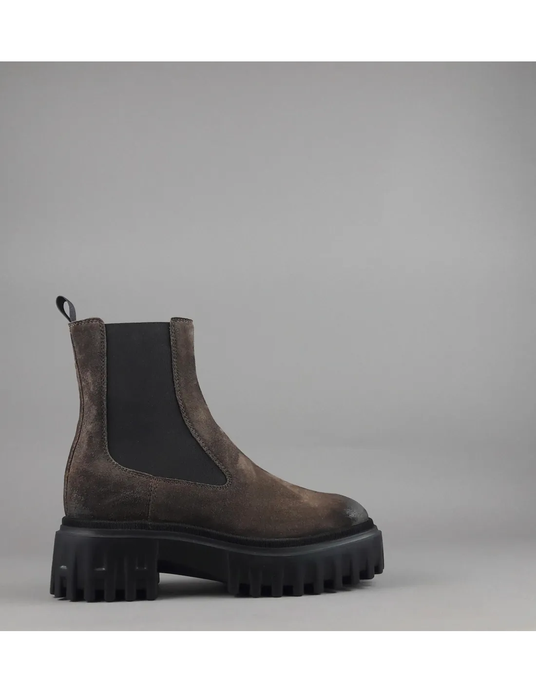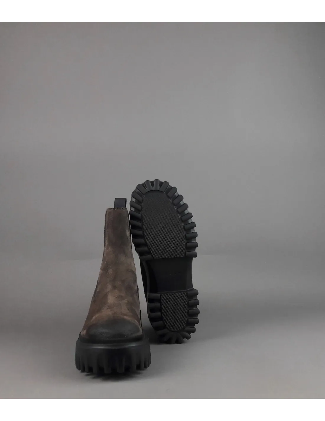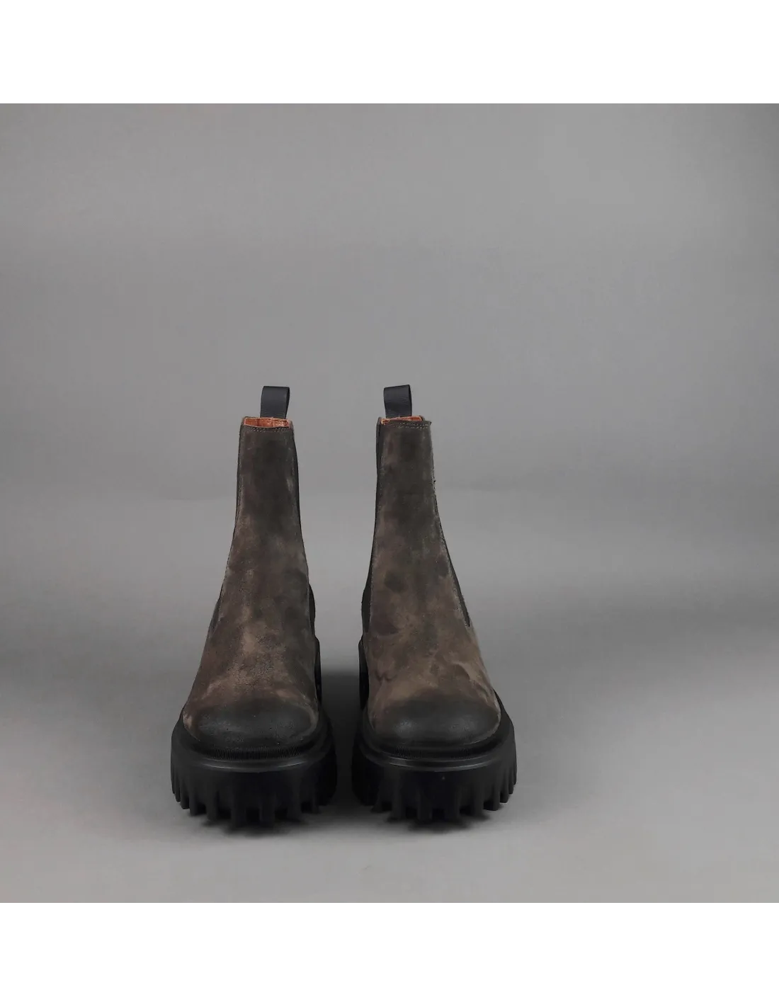 Collezione invernale, tronchetto Chelsea donna H700, tomaia in crosta di camoscio ingrassato, elastici laterali, fussbett in memory foam estraibile, fondo gomma con logo impresso, altezza tacco 5 cm.