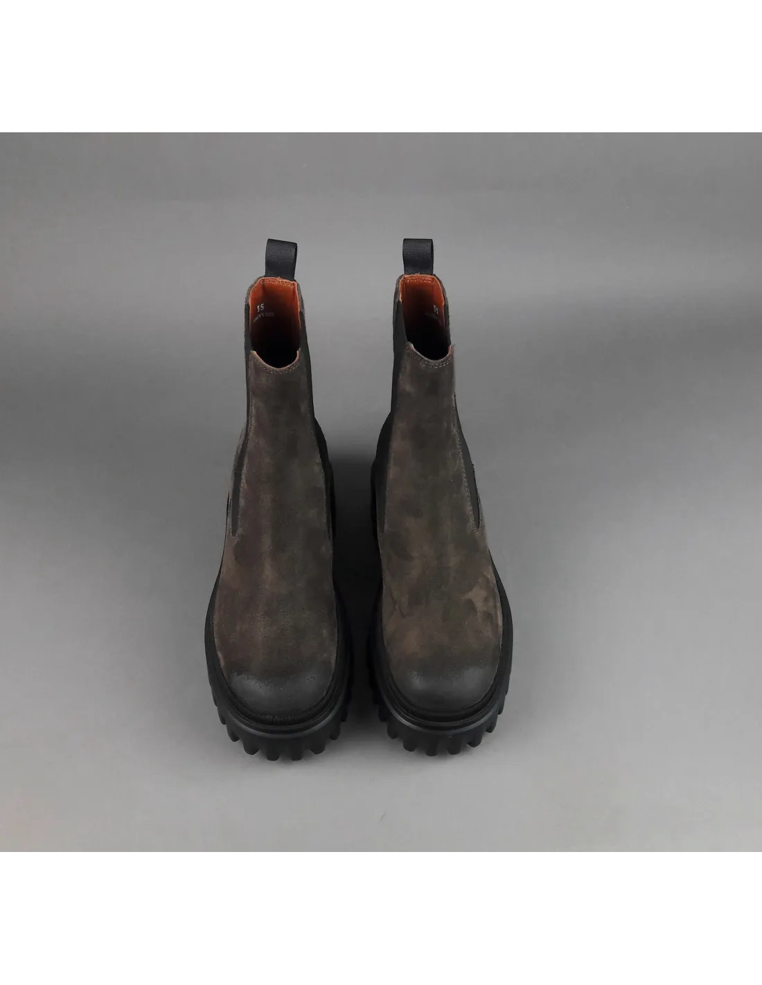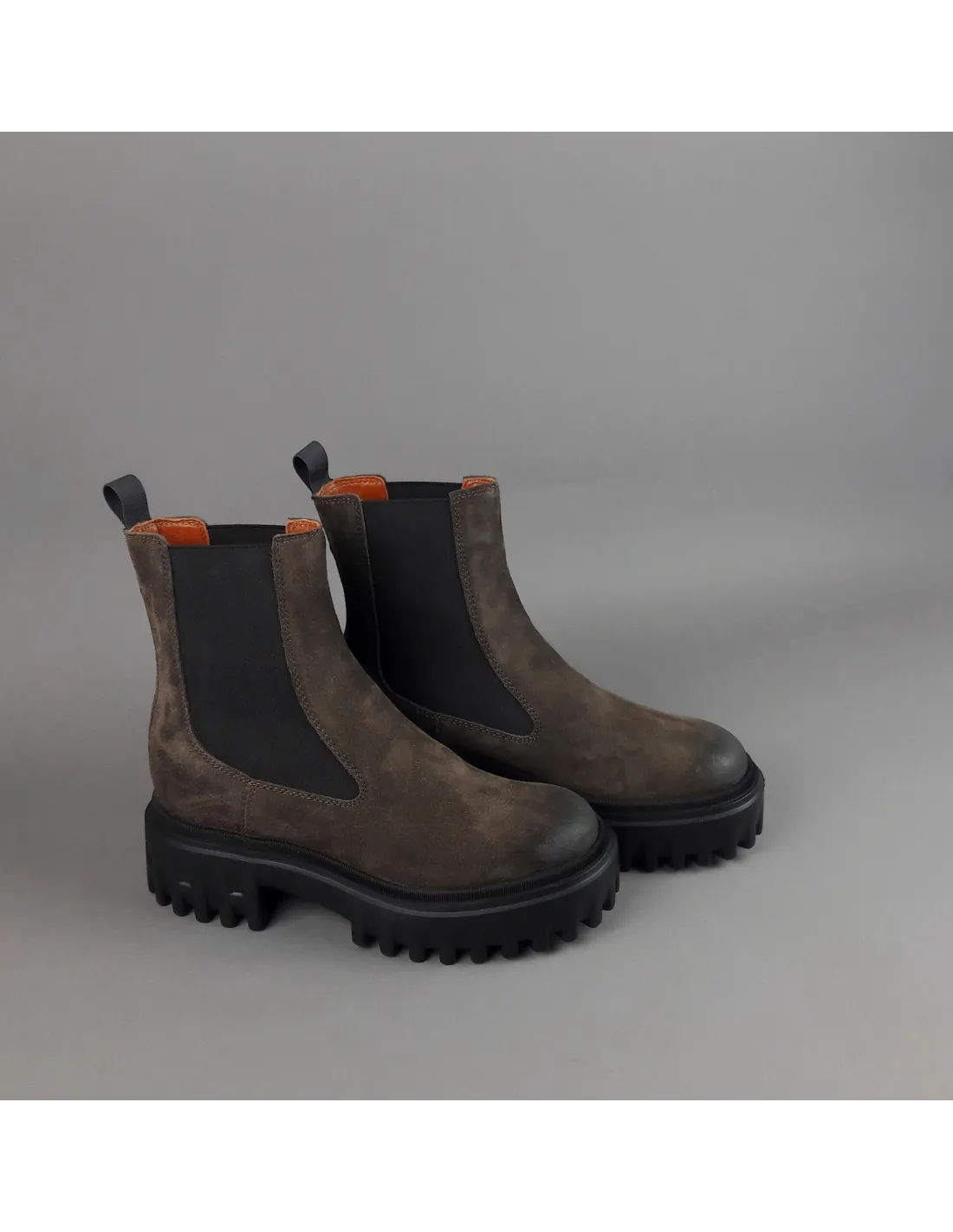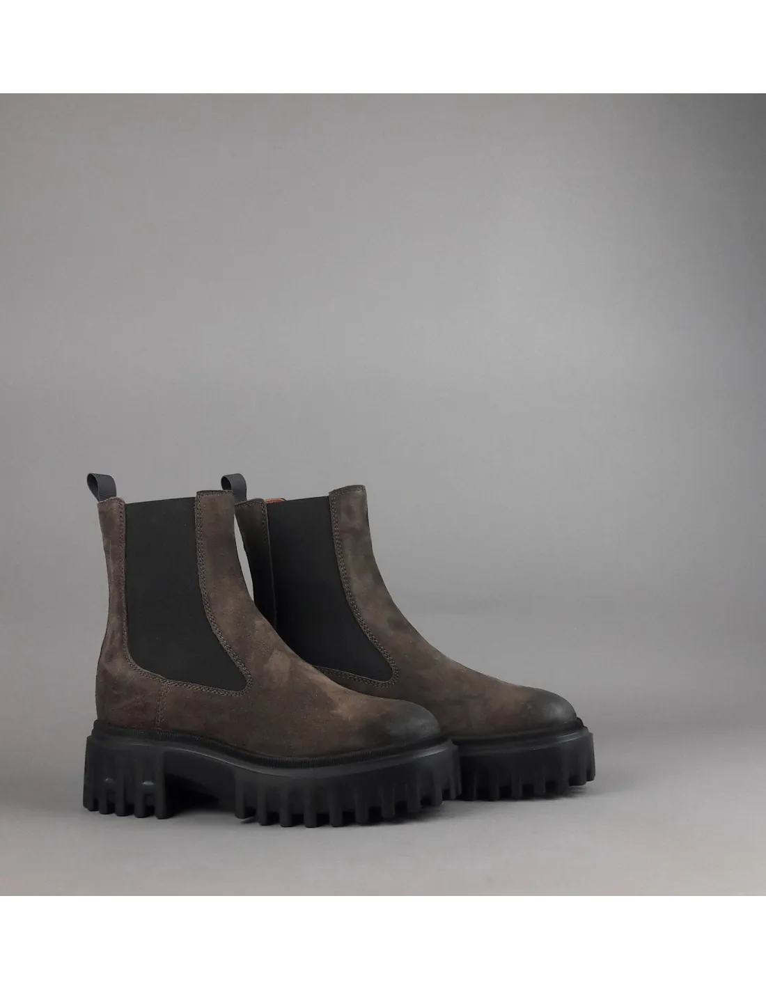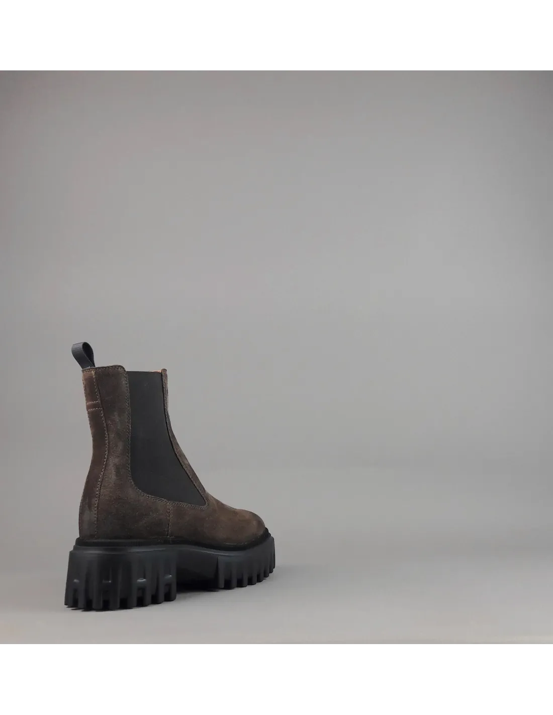 Collezione invernale, tronchetto Chelsea donna H700, tomaia in crosta di camoscio ingrassato, elastici laterali, fussbett in memory foam estraibile, fondo gomma con logo impresso, altezza tacco 5 cm.