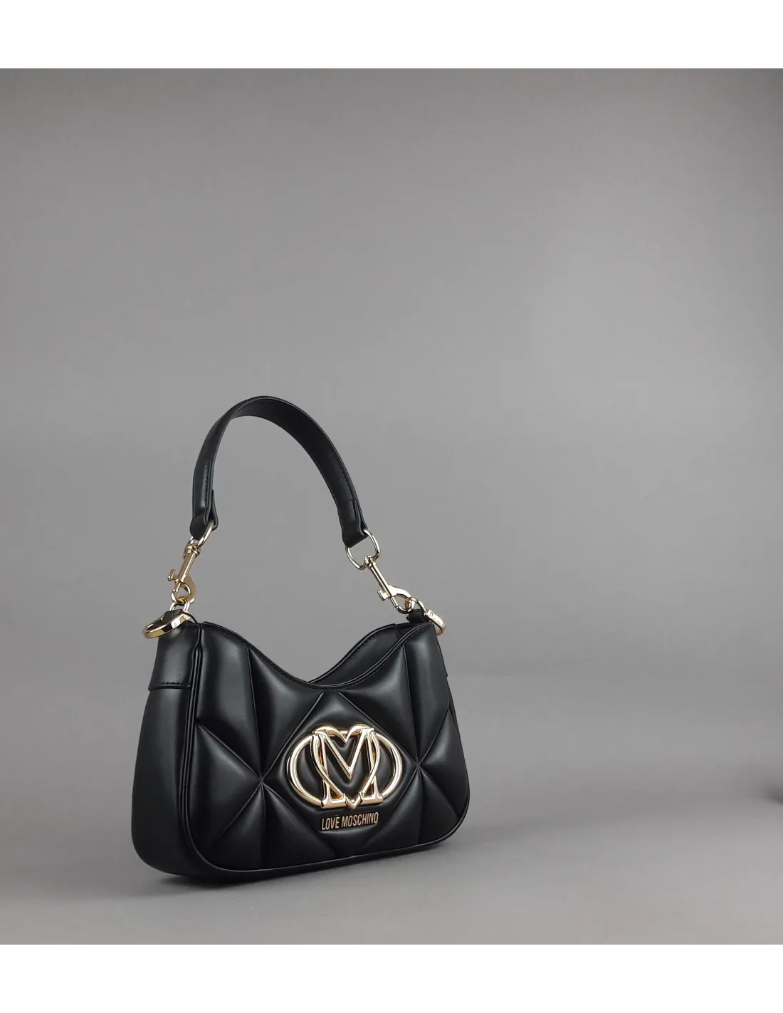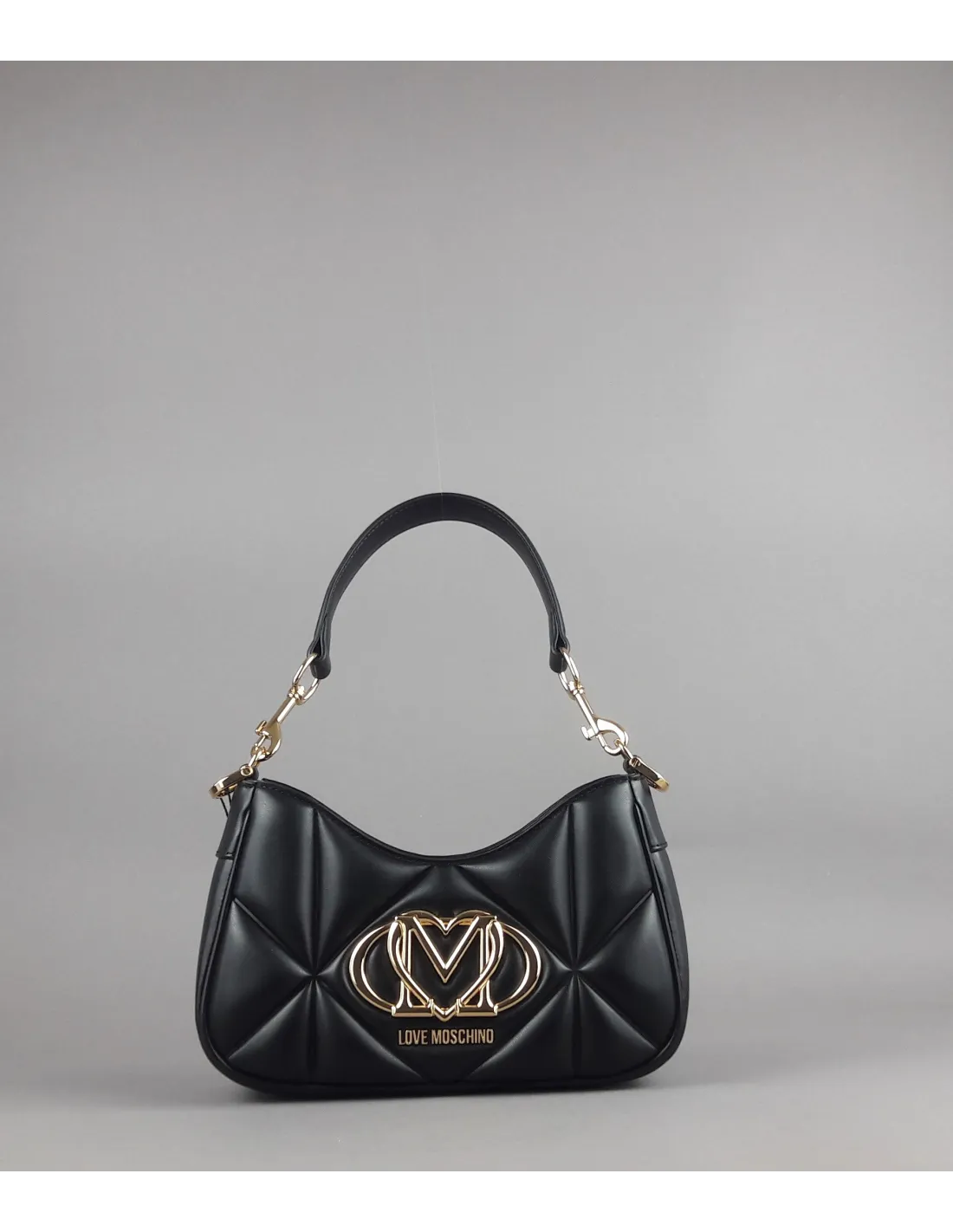 Love Moschino collezione invernale, borsa a spalla donna in poliuretano trapuntato, doppia tracolla intercambiabile, chiusura con cerniera, logo metallo frontale