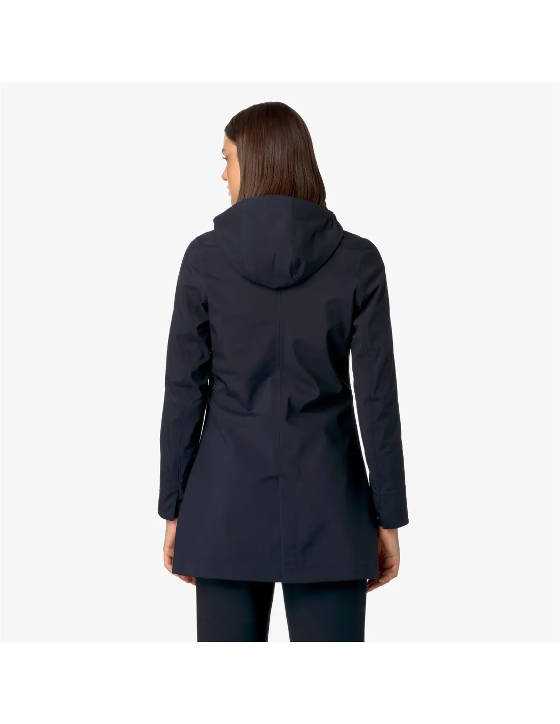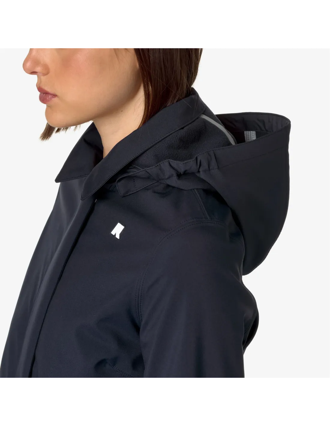Collezione invernale, K-Way giubbino donna Mathy Bonded, nylon triplo strato, lunghezza media, chiusura con zip, collo a camicia, cappuccio staccabile, calore leggero, fit slim, logo silicone.