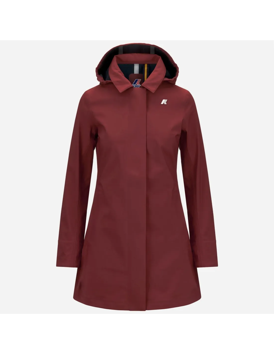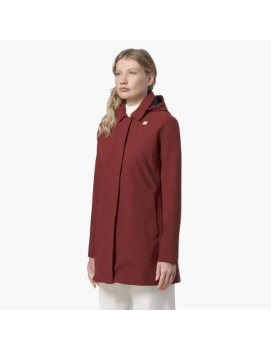 Collezione invernale, K-Way giubbino donna Mathy Bonded, nylon triplo strato, lunghezza media, chiusura con zip, collo a camicia, cappuccio staccabile, calore leggero, fit slim, logo silicone.