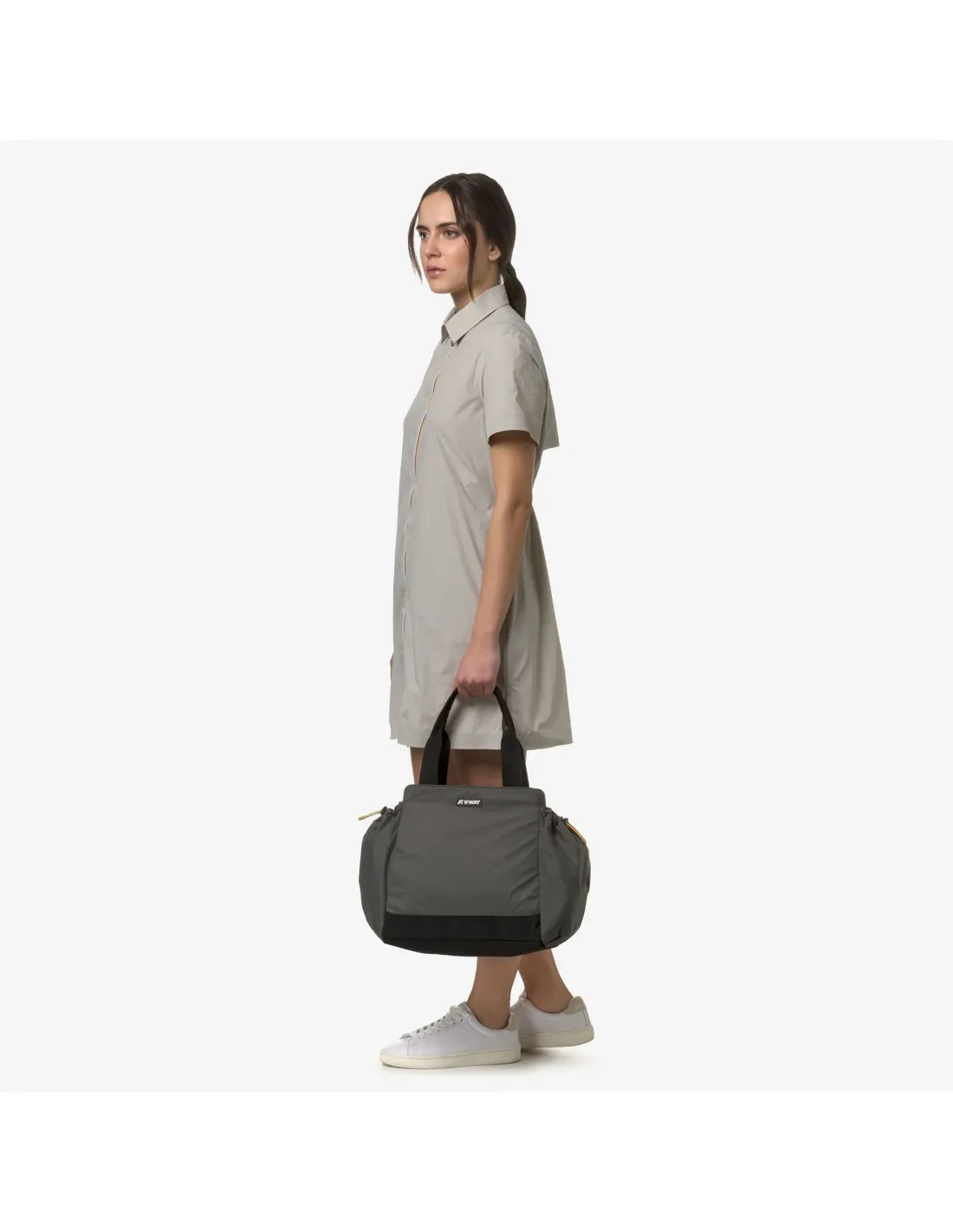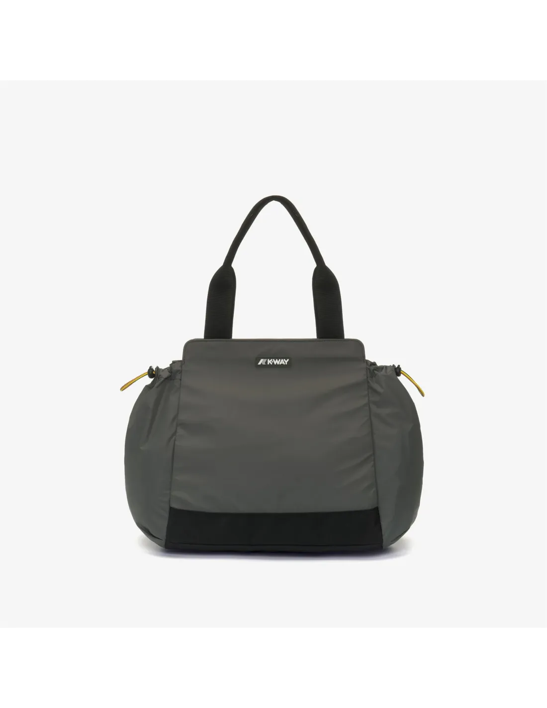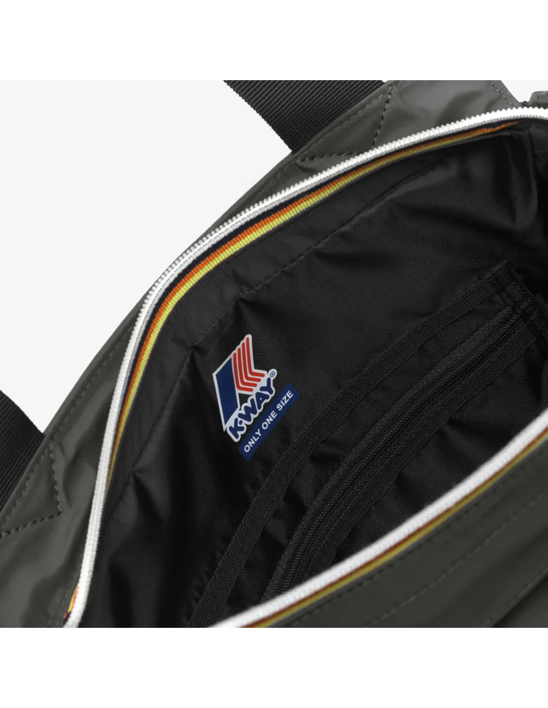 Borsa shopping K-Way Aisy, chiusura con zip, tessuto nylon ripstop, doppi manici in nastro, tasche laterali con coulisse, logo in silicone frontale.