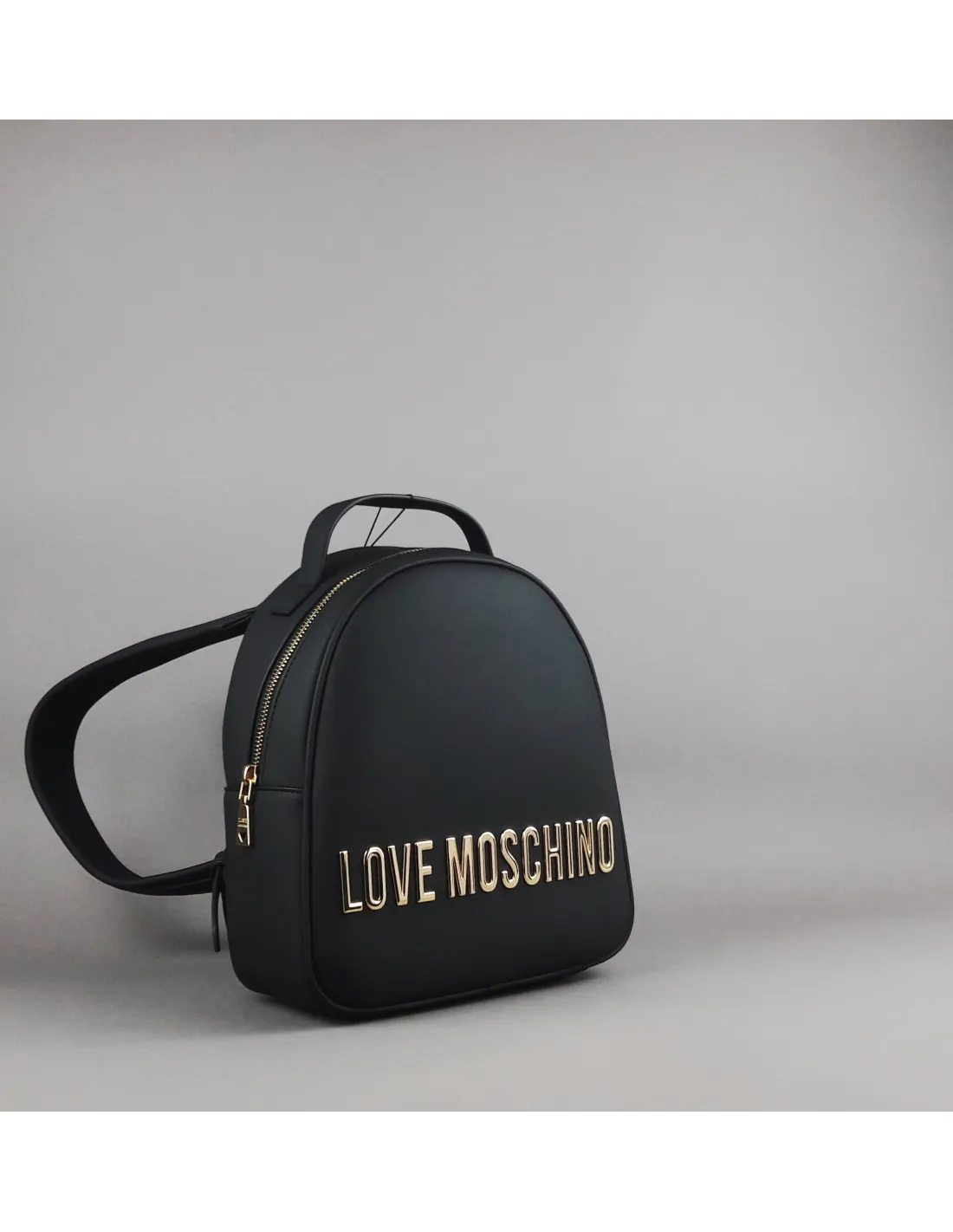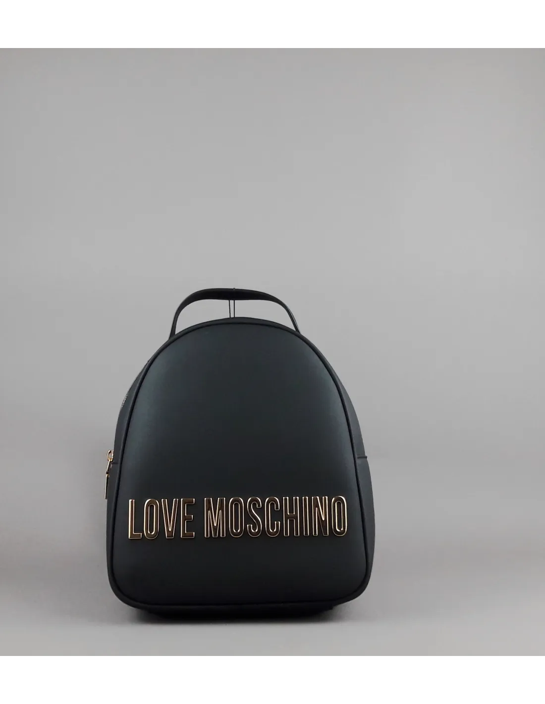Love Moschino collezione invernale, zaino donna in poliuretano liscio, doppia tracolla, manico centrale, chiusura con cerniera, logo metallo frontale