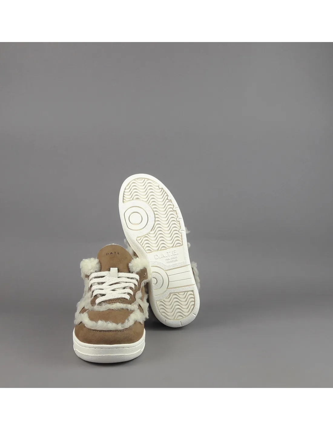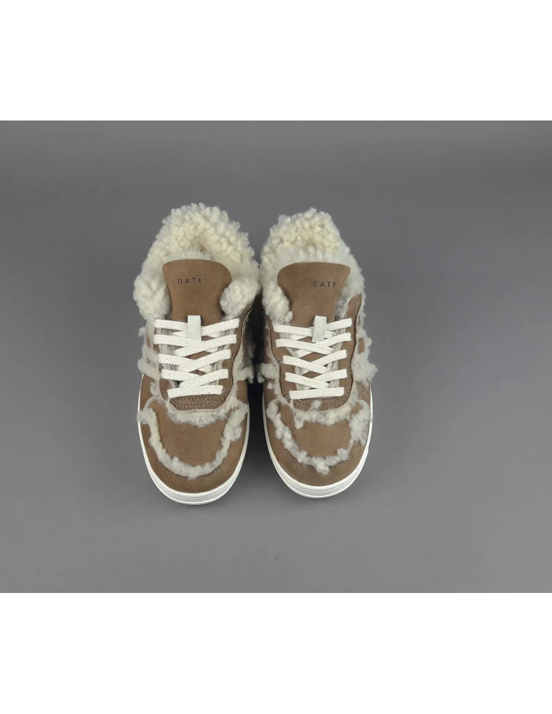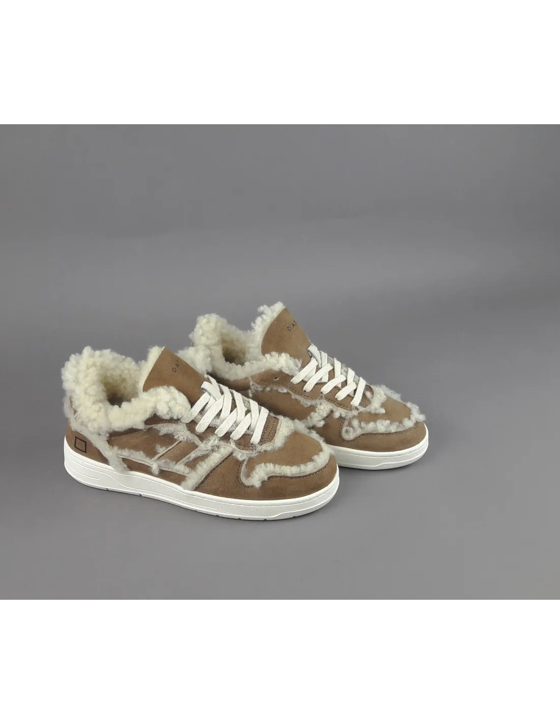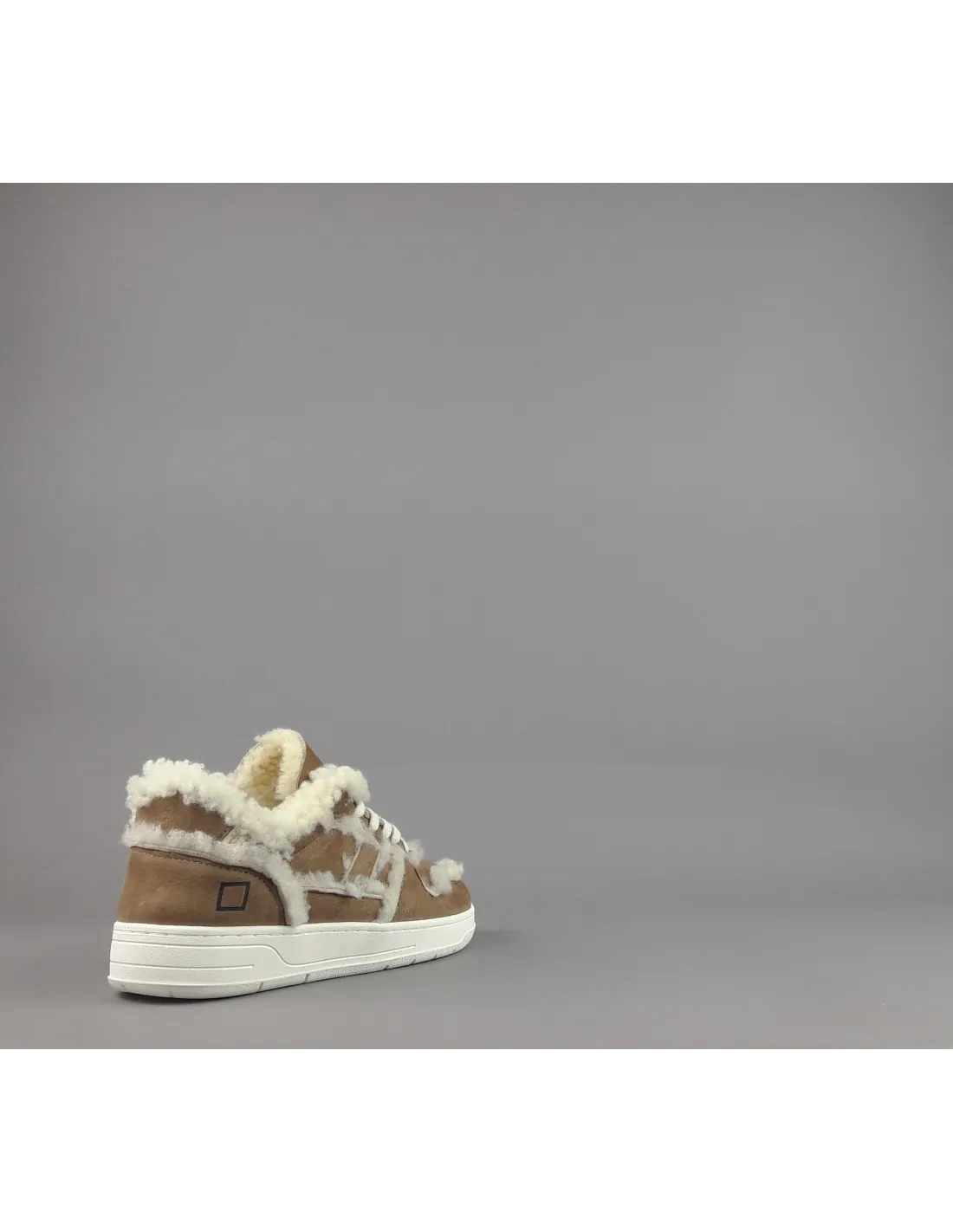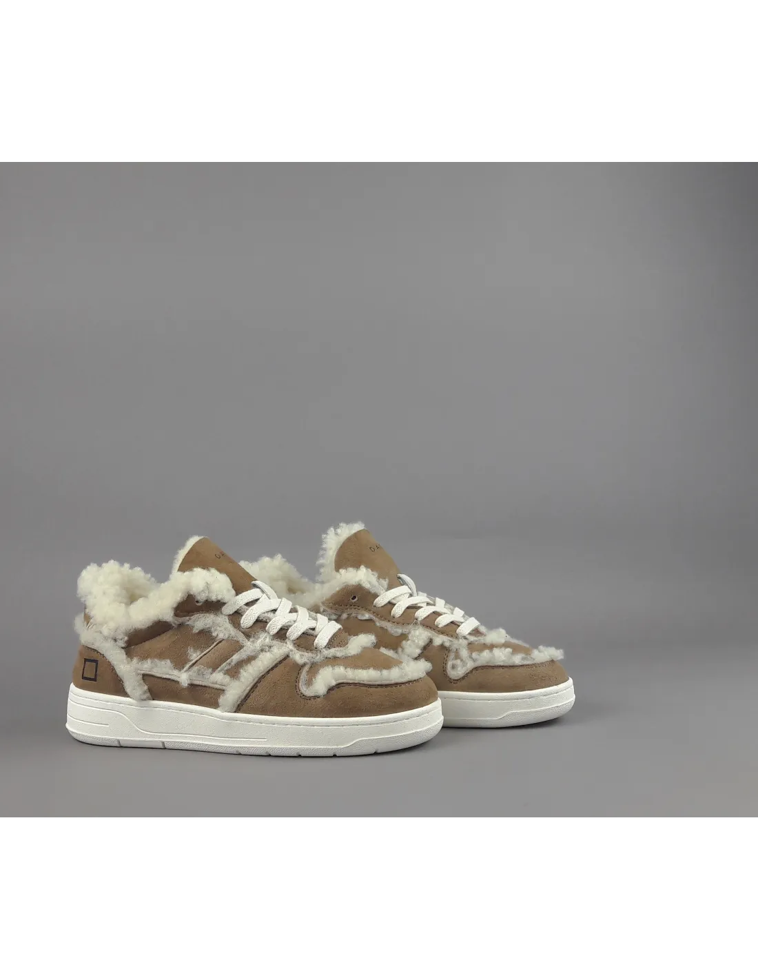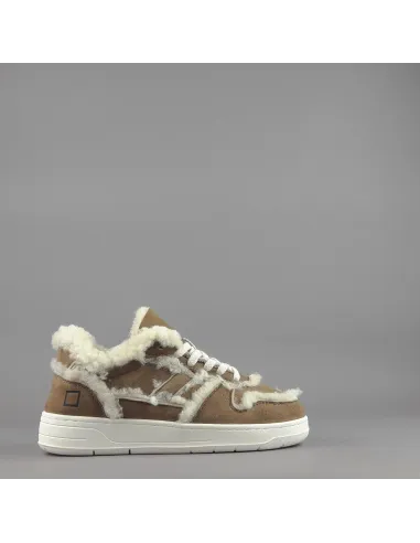 Collezione invernale, Sneakers donna D.A.T.E. COURT in montone shearling, taglio vivo, interno in montone, logo laterale impresso stampato, fondo cucito, soletta interna removibile di 2,5 cm in montone, suola in gomma.