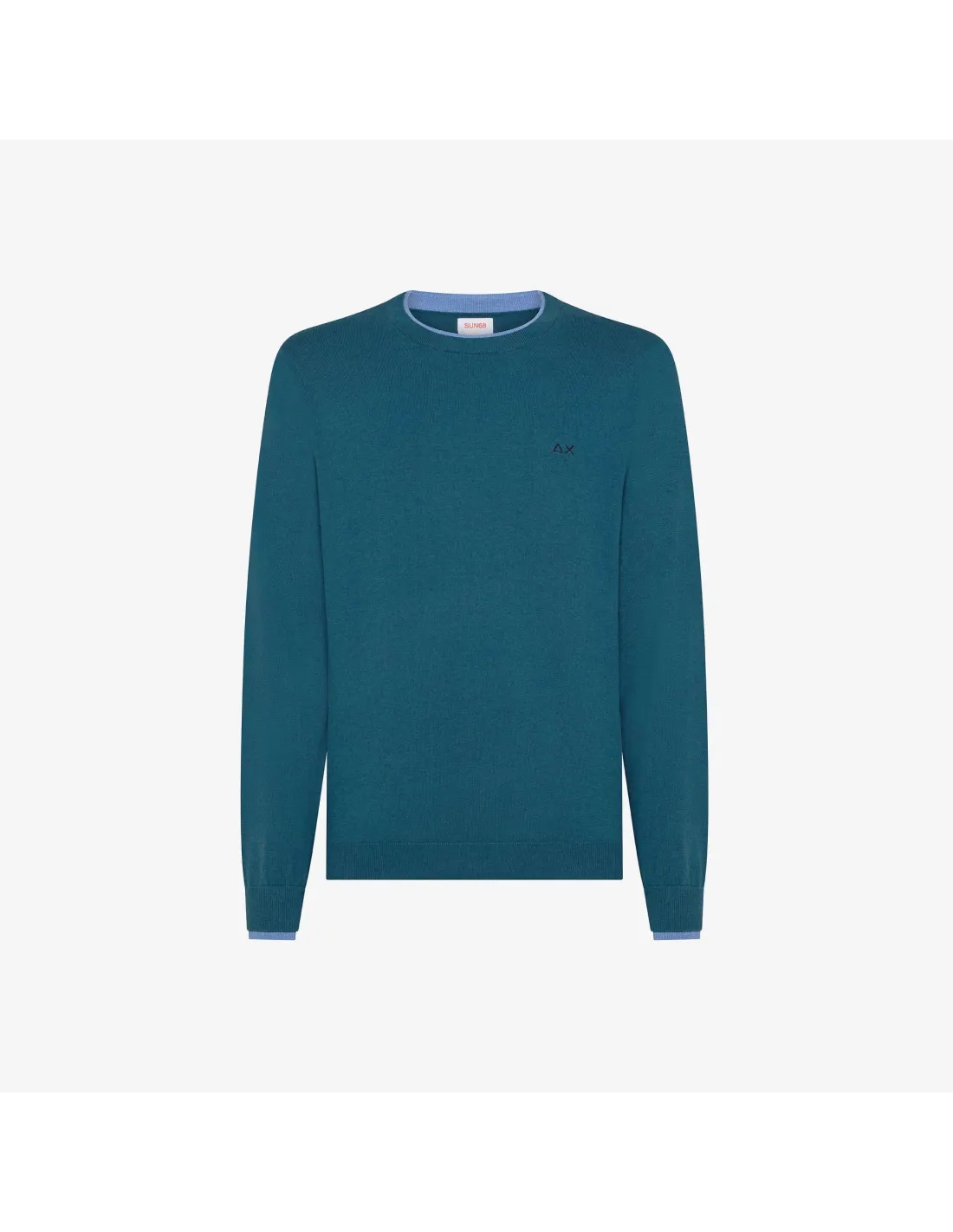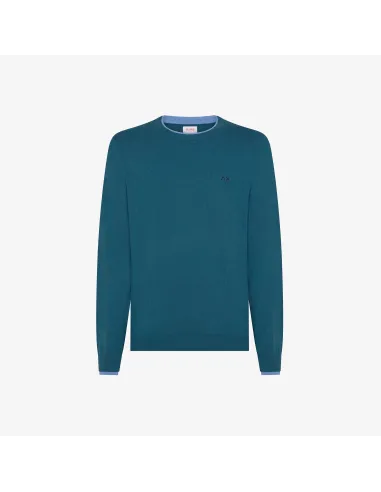 Collezione invernale, Maglia Sun 68 uomo, in misto lana, manica lunga, girocollo, collo e polsi a costine con inserto in contrasto, vestibilità regular, logo ricamato