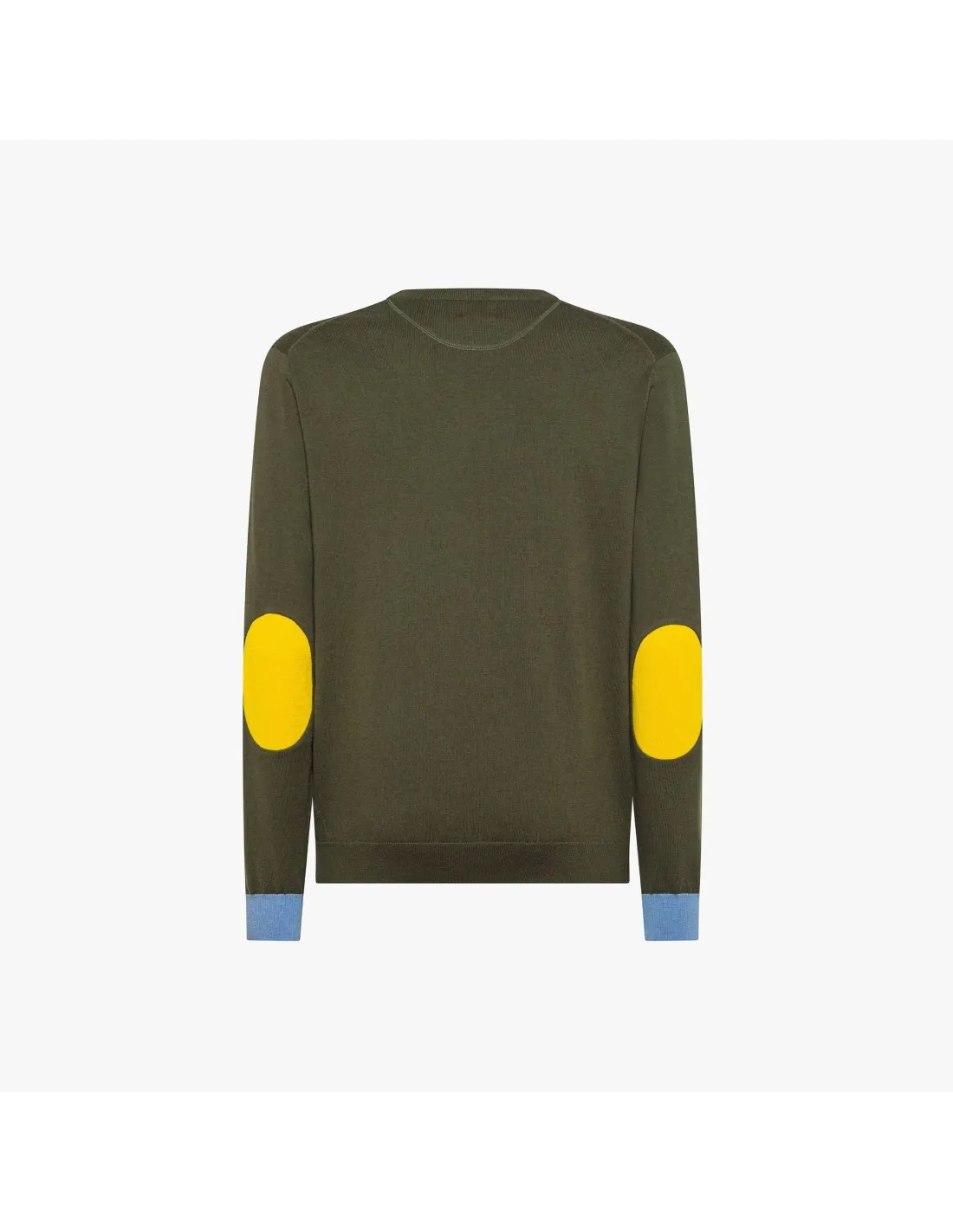 Collezione invernale, Maglia Sun 68 uomo, in misto lana, manica lunga con polsini a contrasto, girocollo, patch a contrasto sui gomiti, vestibilità regular, logo ricamato