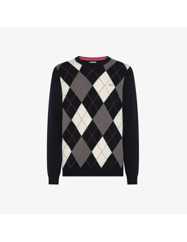 Collezione invernale, Maglia Sun 68 uomo, in misto lana, manica lunga, girocollo, collo e polsi a costine, fantasia rombi frontale, vestibilità regular, logo ricamato