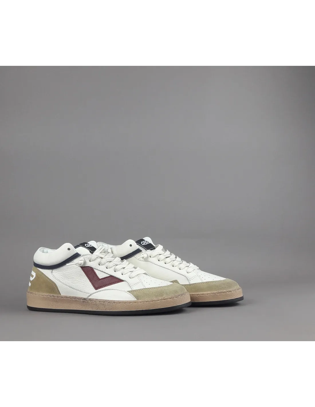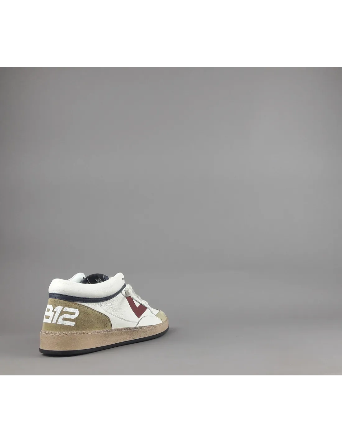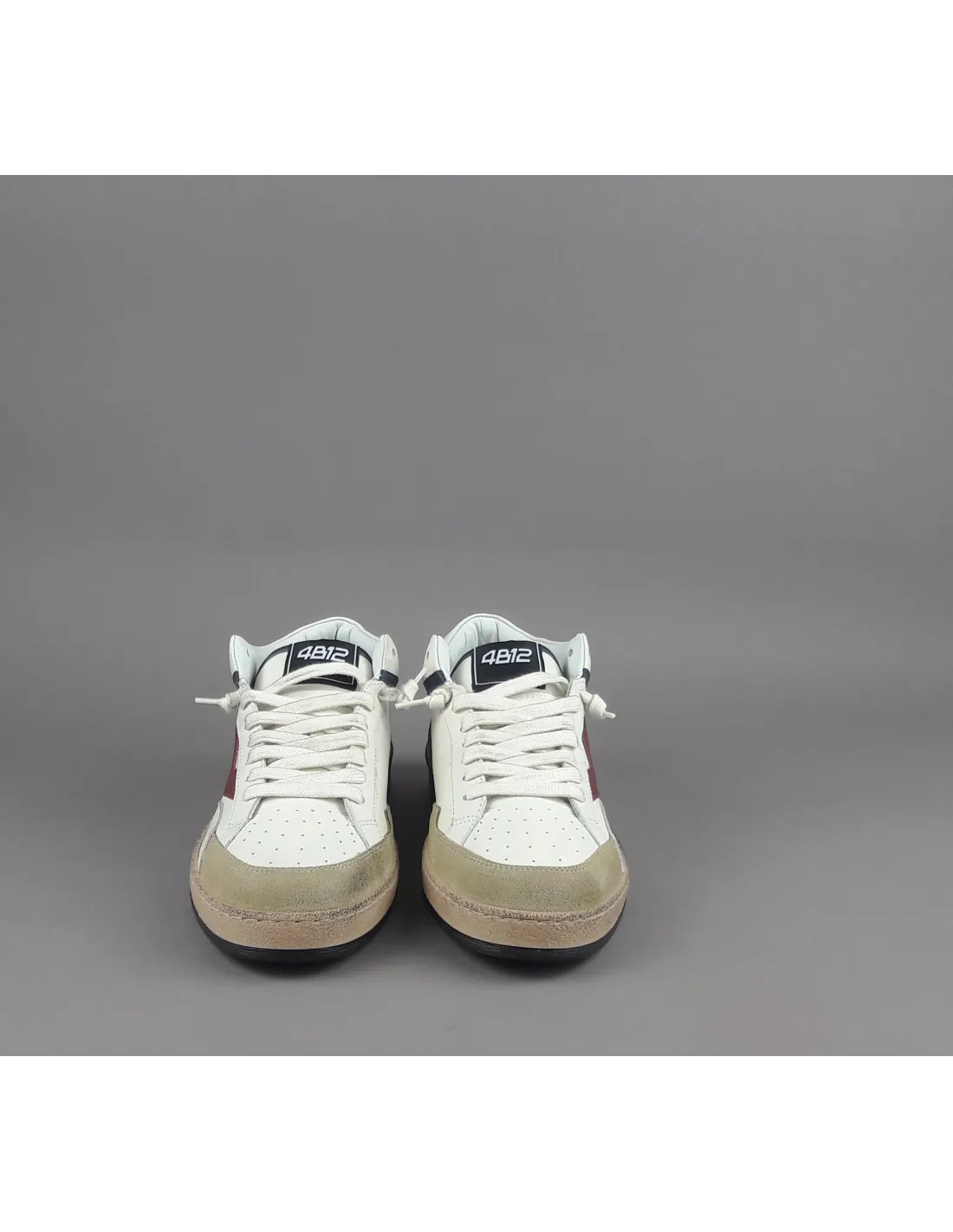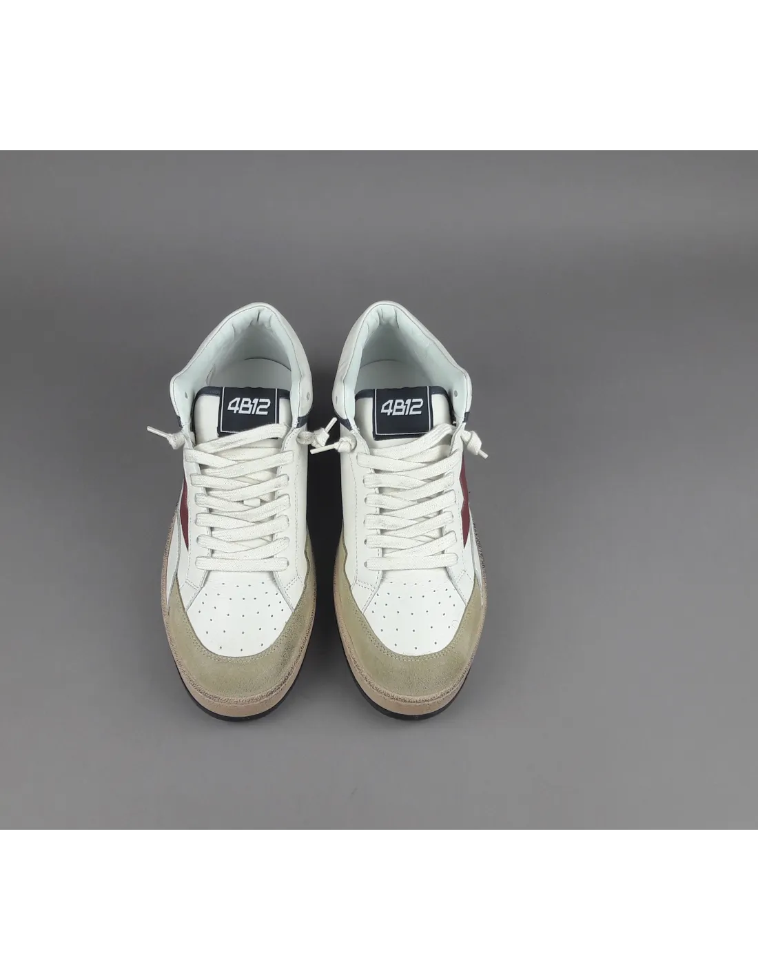 Collezione invernale, Sneakers uomo 4b12 Play in pelle bianco, inserti in camoscio beige, spoiler imbottito, logo in pelle bordeaux, logo stampato al tallone, fussbett interno estraibile, suola in gomma.