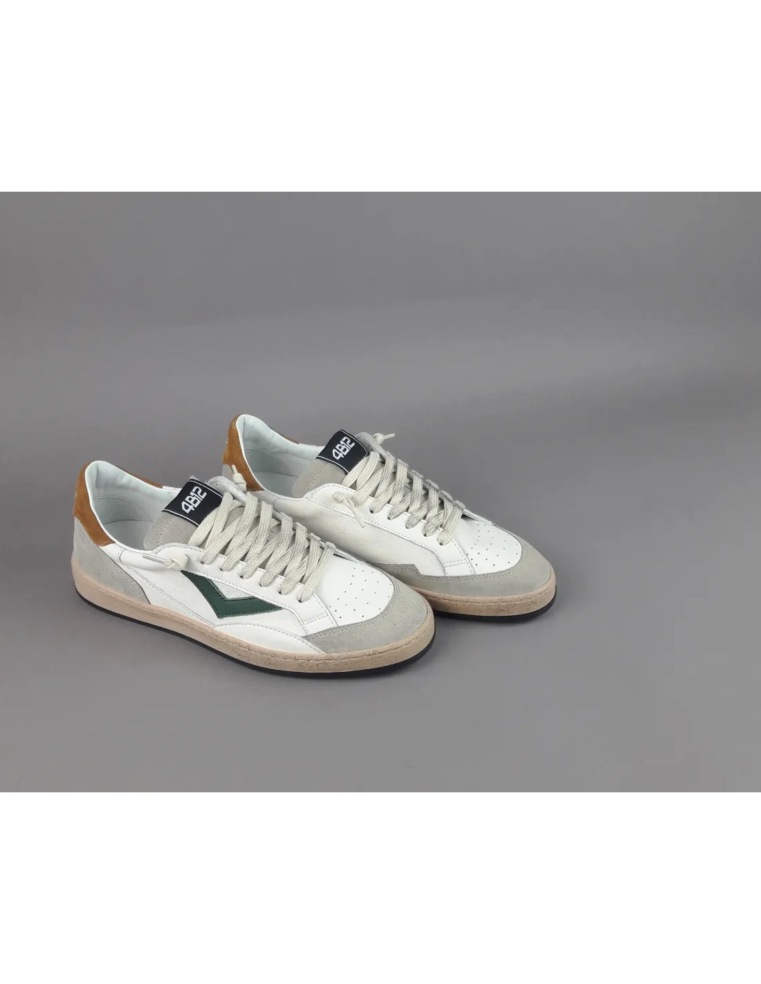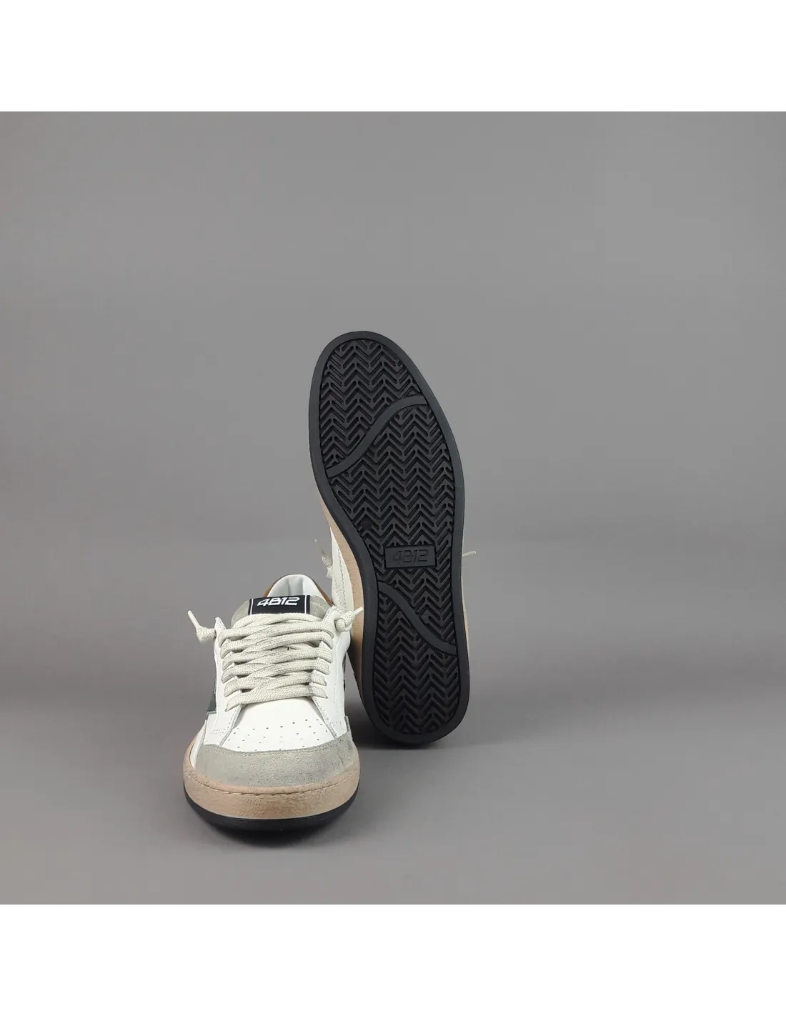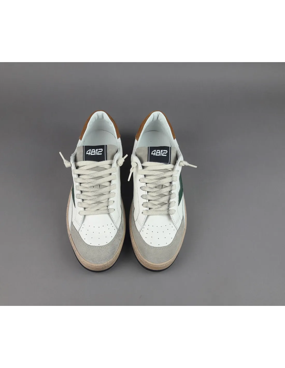 Collezione invernale, Sneakers uomo 4b12 Play in pelle bianco, inserti in camoscio grigio chiaro, spoiler in camoscio marrone, logo in pelle verde, fussbett interno estraibile, suola in gomma.