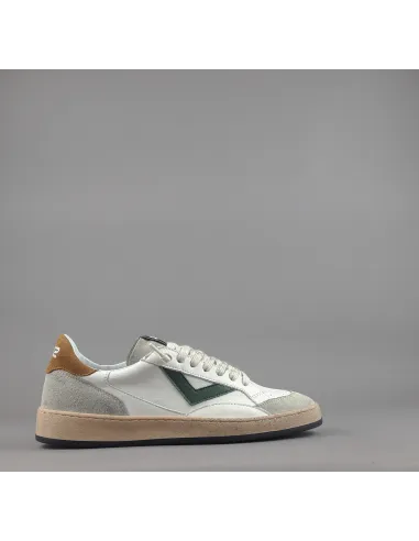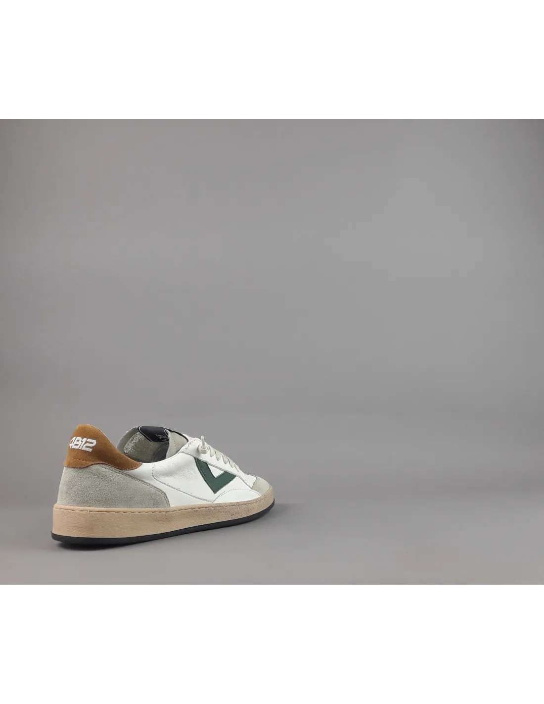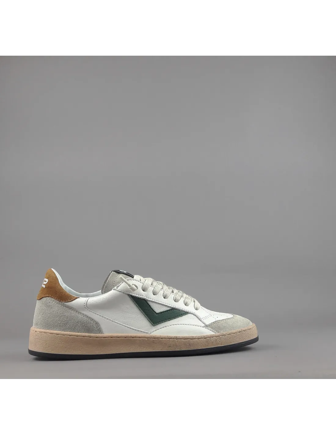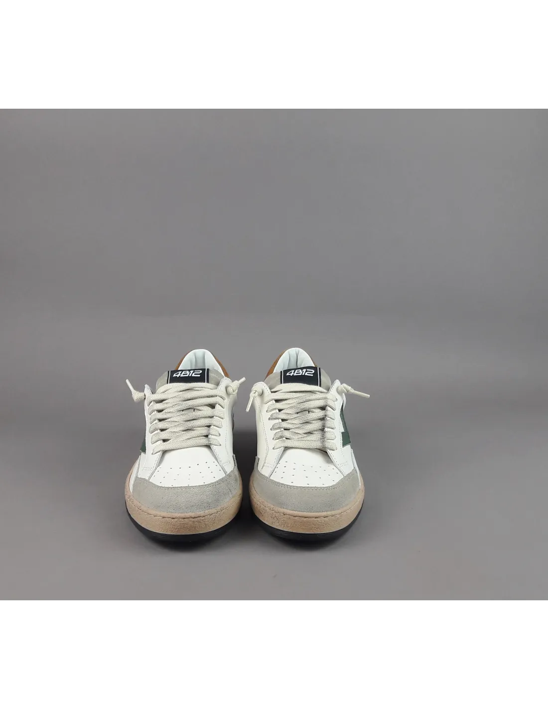 Collezione invernale, Sneakers uomo 4b12 Play in pelle bianco, inserti in camoscio grigio chiaro, spoiler in camoscio marrone, logo in pelle verde, fussbett interno estraibile, suola in gomma.