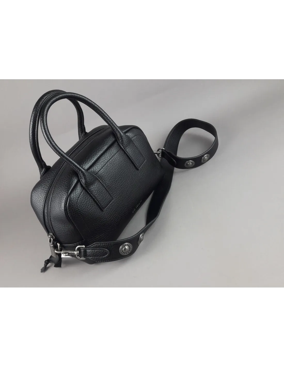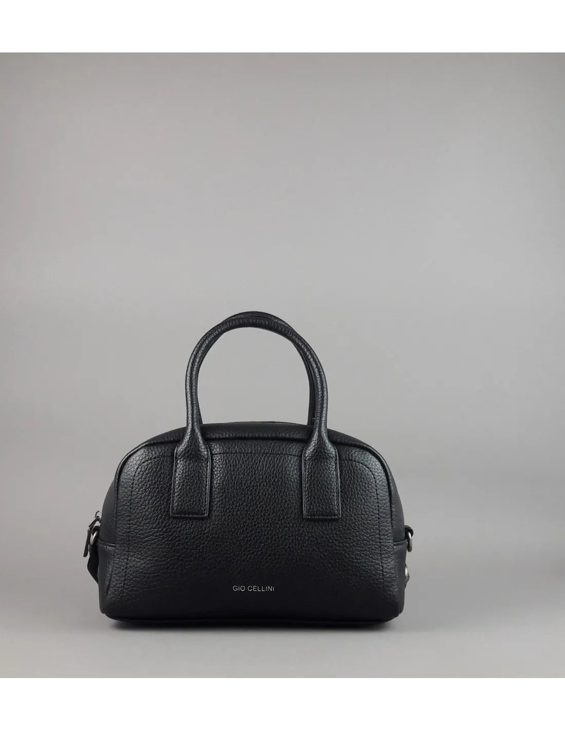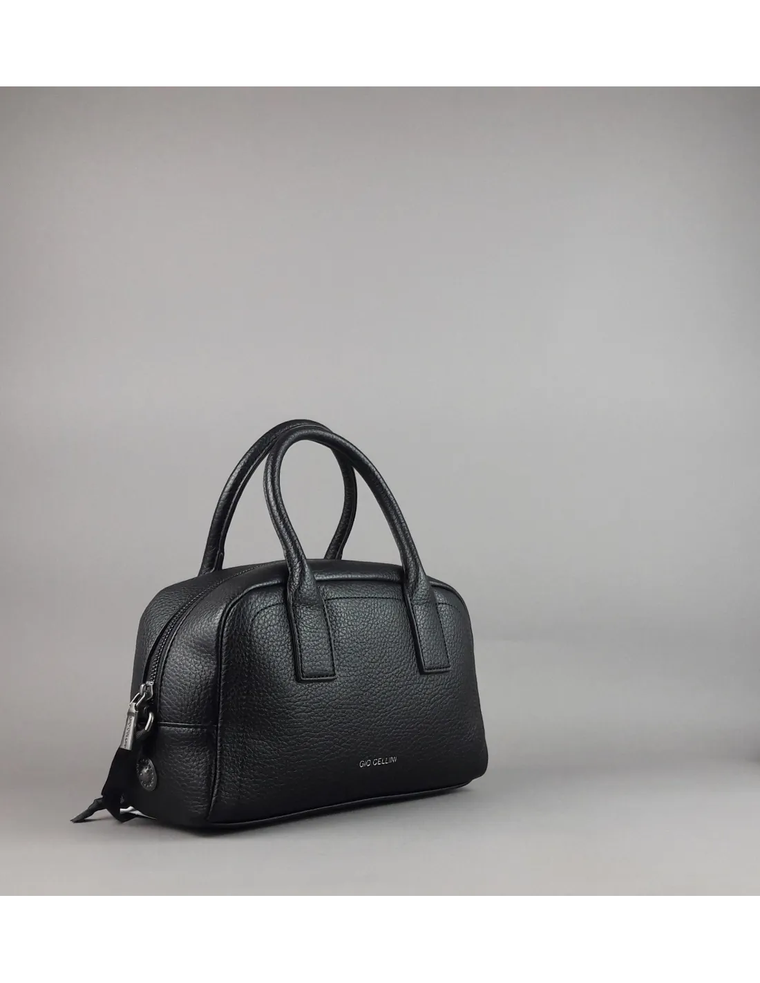 Collezione invernale, Gio Cellini borsa bauletto piccolo, in poliuretano martellato, doppio manico centrale, chiusura con cerniera, tracolla, logo stampato frontale