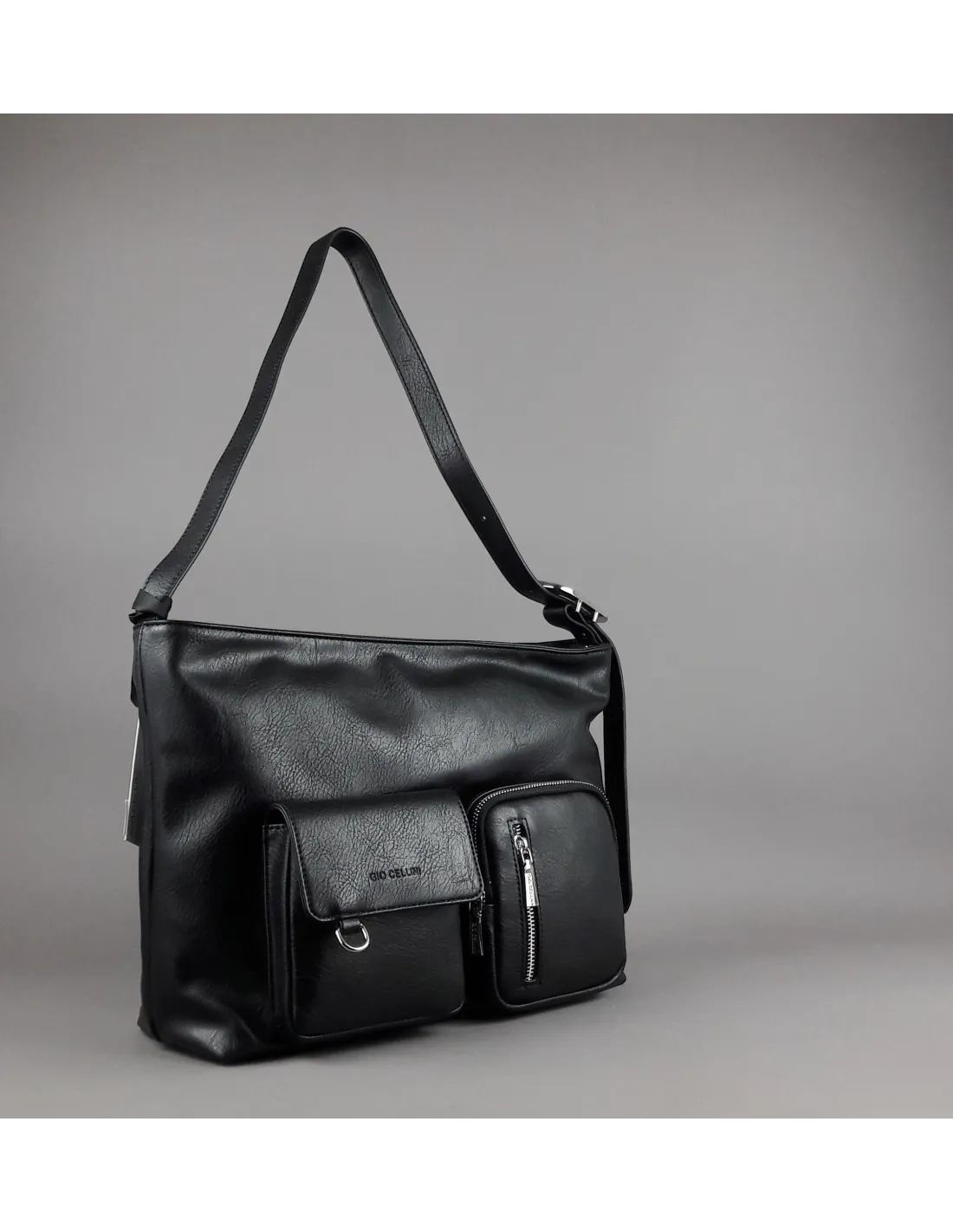 Collezione invernale, Gio Cellini borsa a spalla, in poliuretano liscio, tracolla centrale, chiusura con cerniera, doppia tasca frontale logo frontale