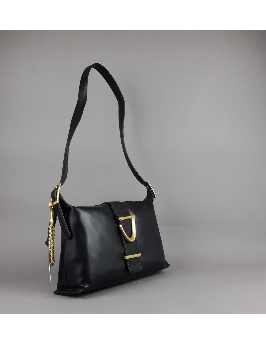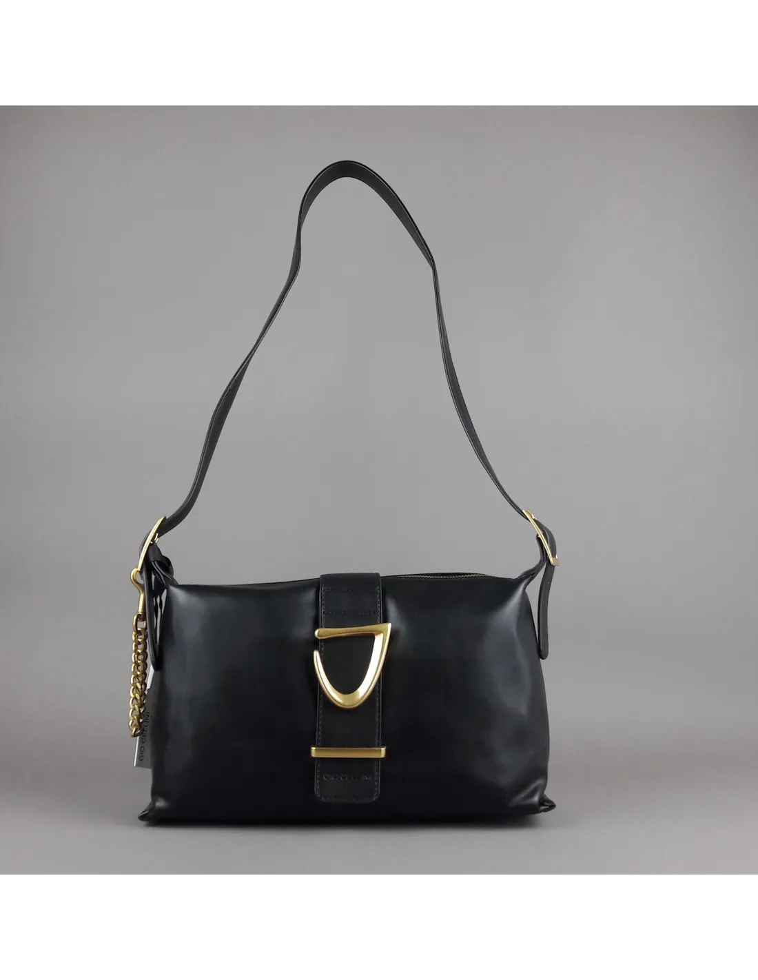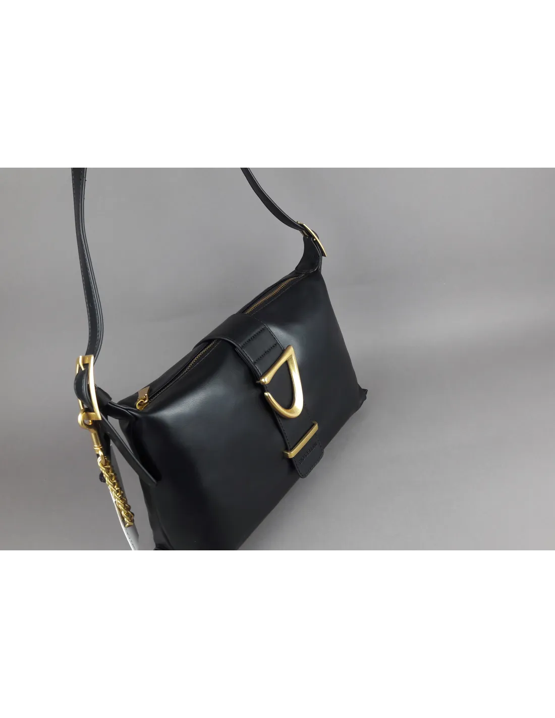 Collezione invernale, Gio Cellini borsa a spalla, in poliuretano liscio, tracolla centrale, chiusura con cerniera, logo frontale
