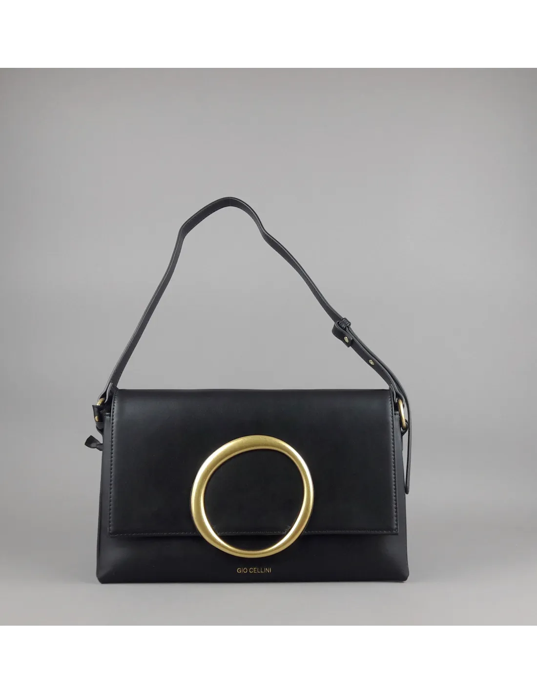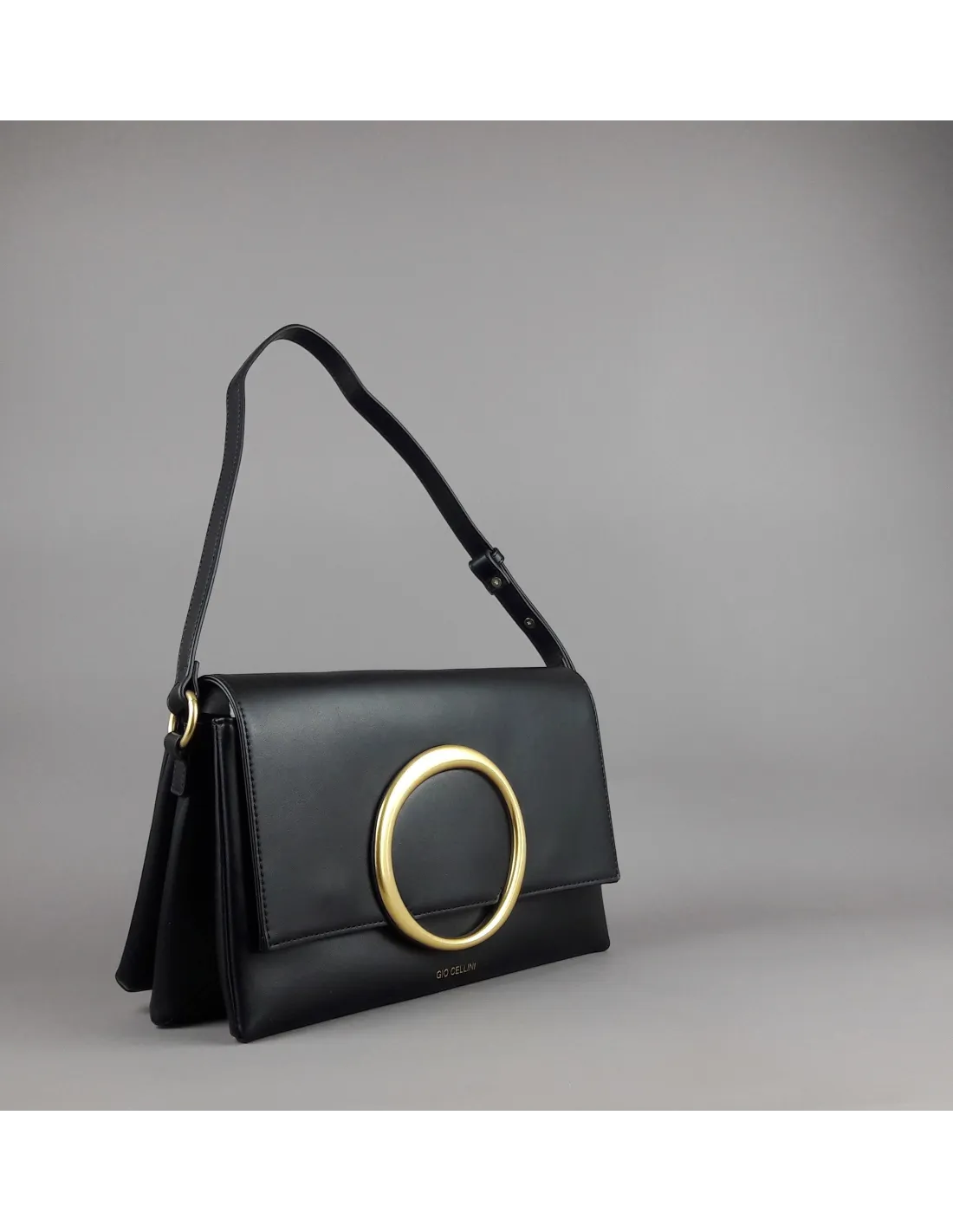 Collezione invernale, Gio Cellini borsa clutch grande tre soffietti, in poliuretano, chiusura con patta e clip, tracolla, logo stampato frontale