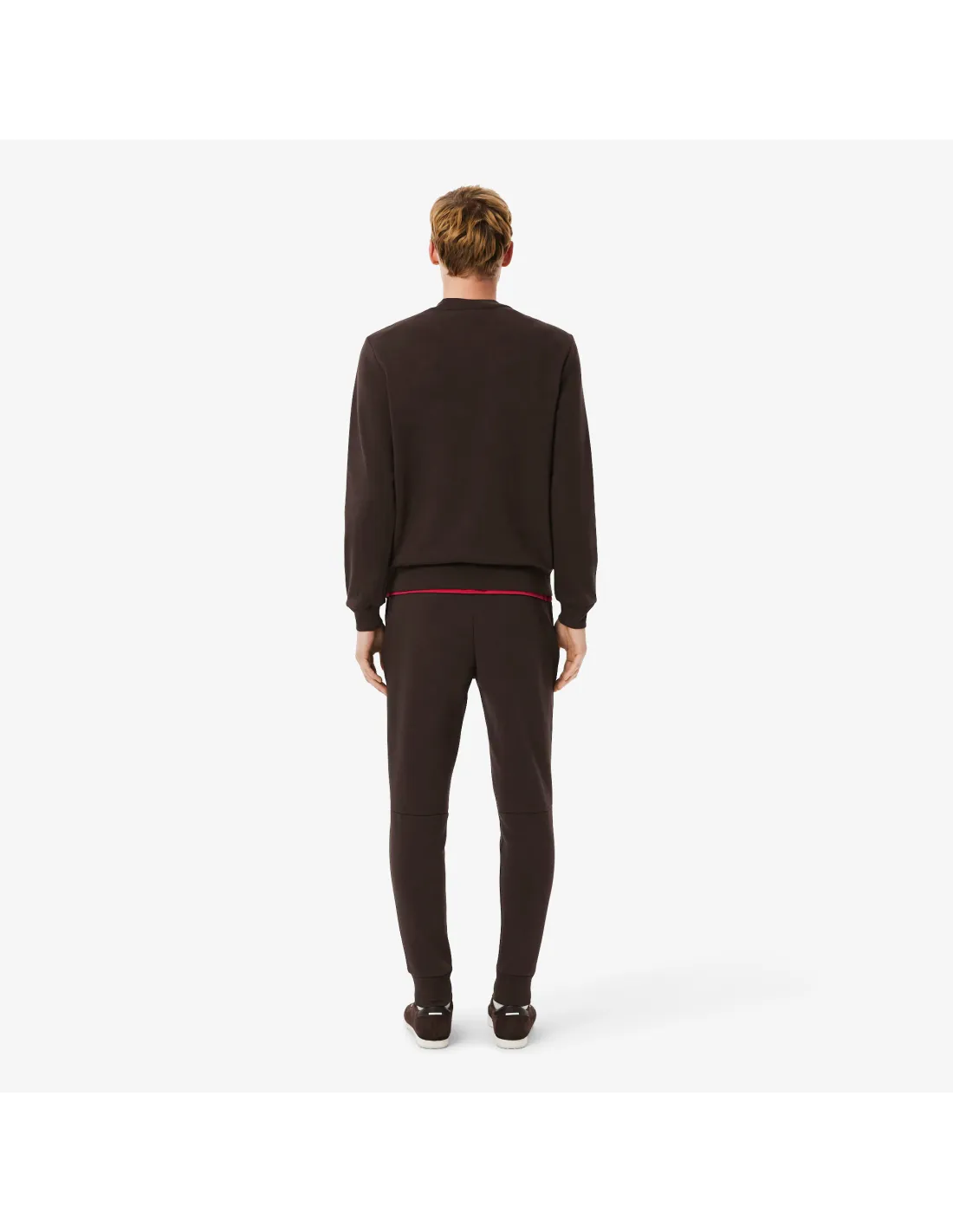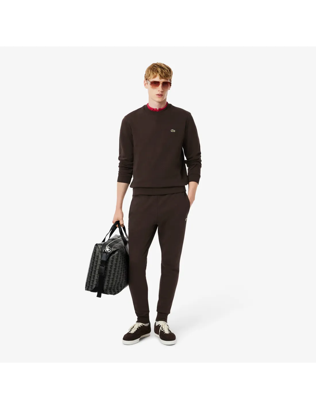 Collezione invernale, Pantaloni felpa uomo in misto cotone spazzolato, fondo caviglie a costine con elastam, vestibilità slim, tasche laterali, cordoncino in vita, logo coccodrillo