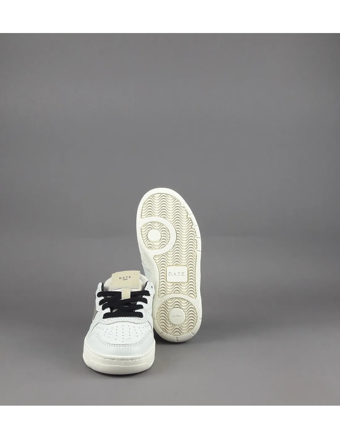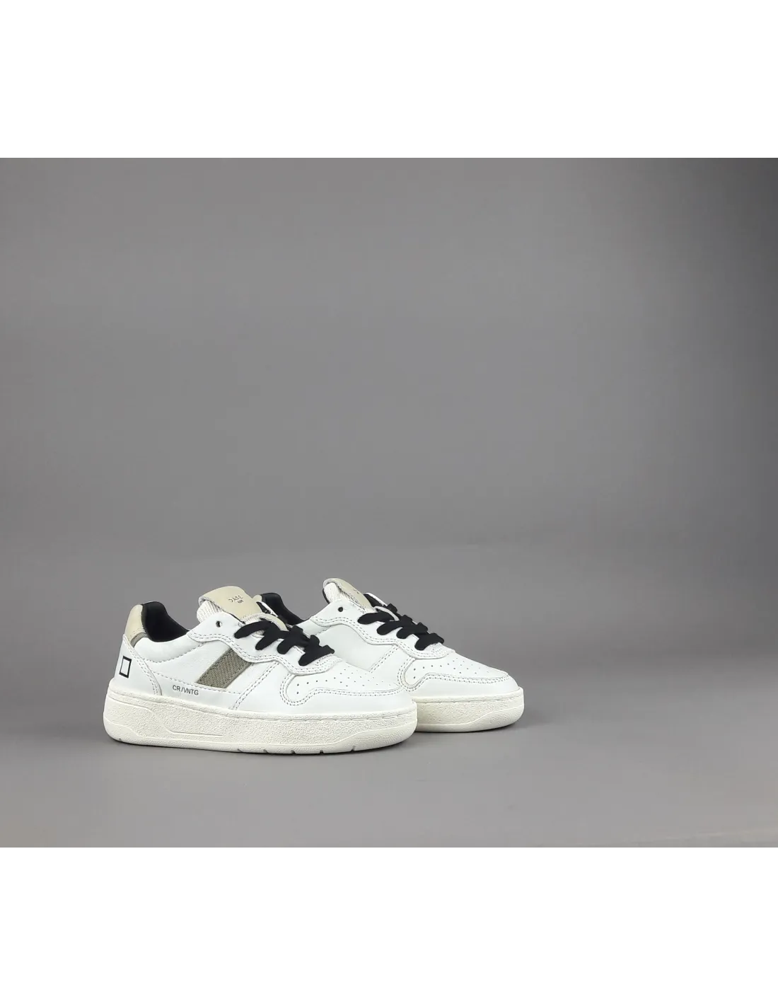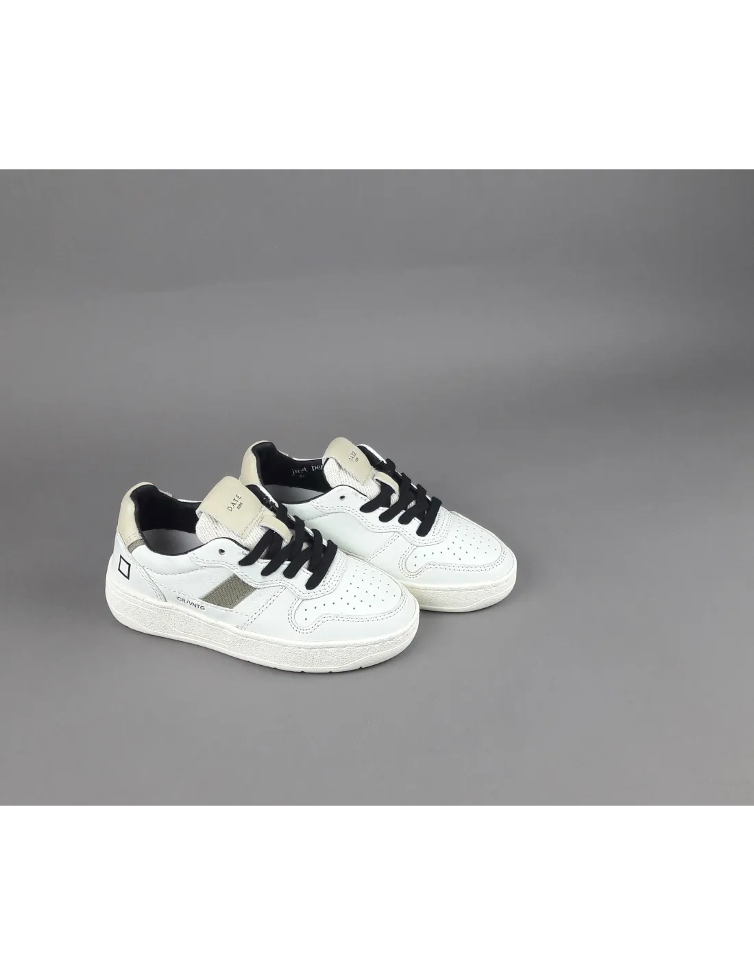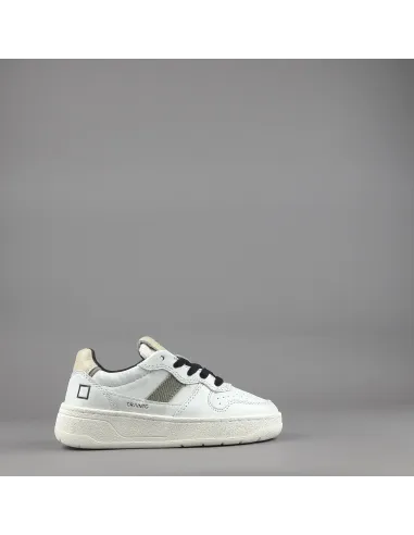 Collezione invernale, Sneakers Junior D.A.T.E. COURT 2.0 in pelle, dettagli cordura, spoiler in pelle avorio, logo laterale impresso, fondo cucito, soletta interna removibile di 1 cm, suola in gomma.