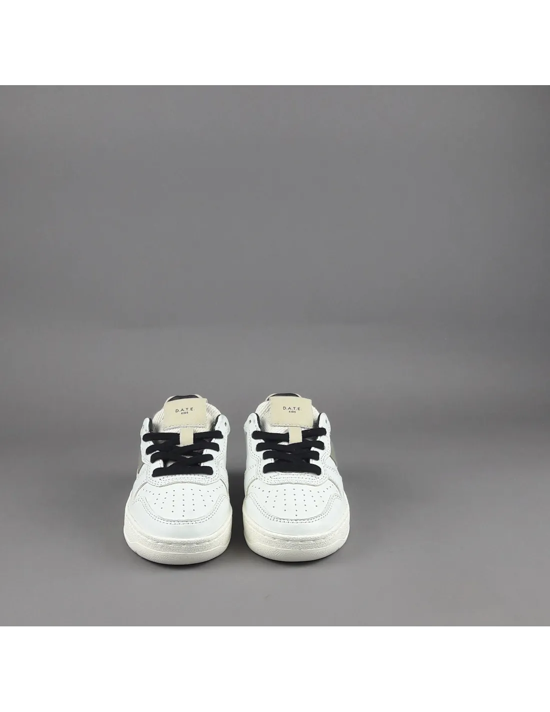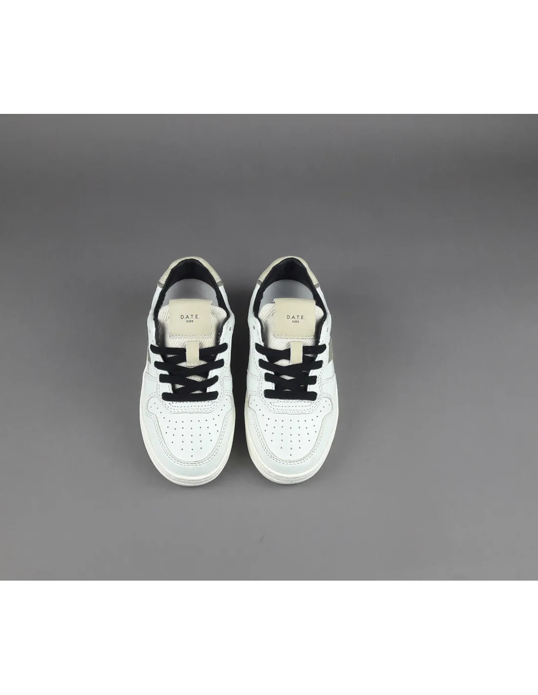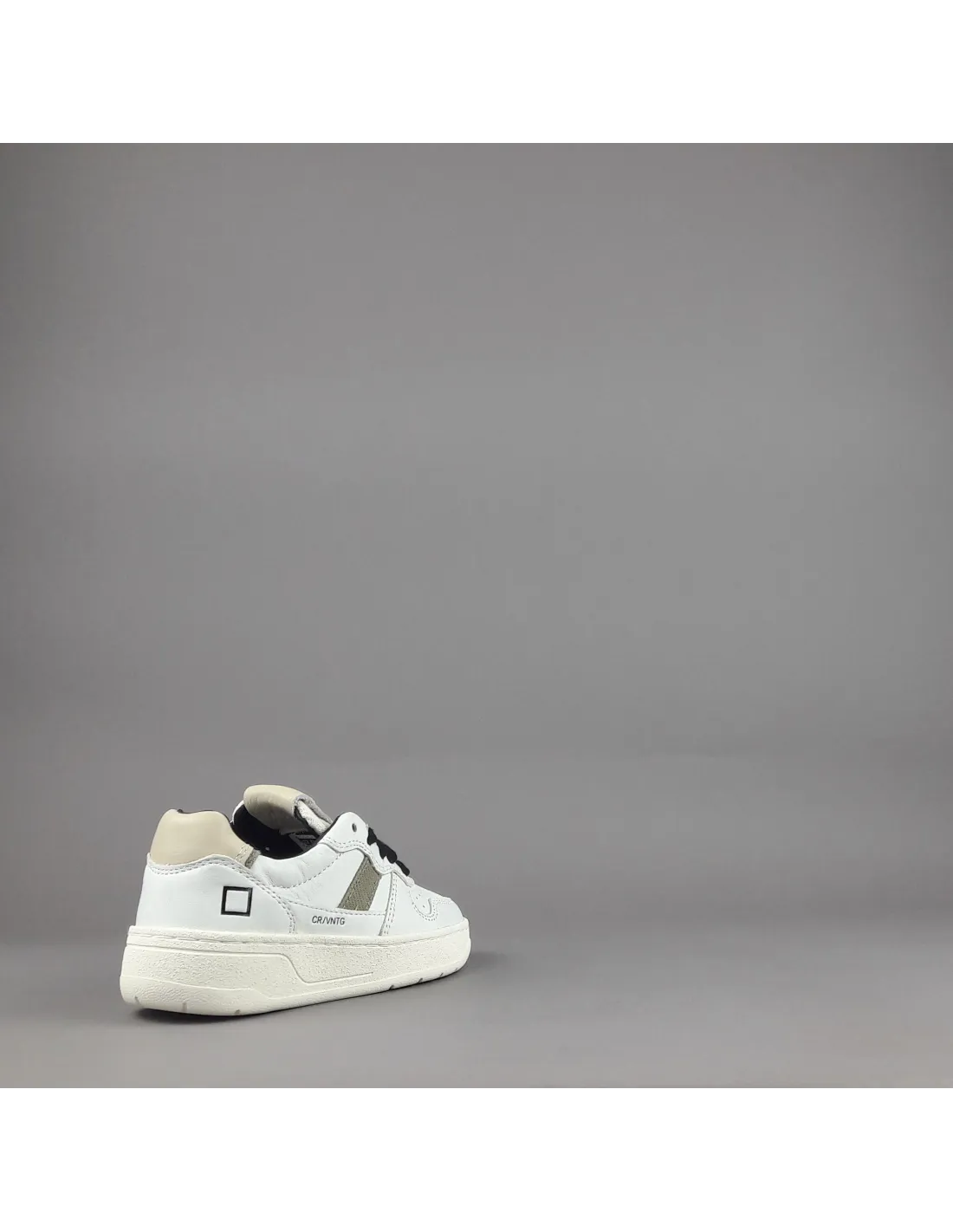 Collezione invernale, Sneakers Junior D.A.T.E. COURT 2.0 in pelle, dettagli cordura, spoiler in pelle avorio, logo laterale impresso, fondo cucito, soletta interna removibile di 1 cm, suola in gomma.