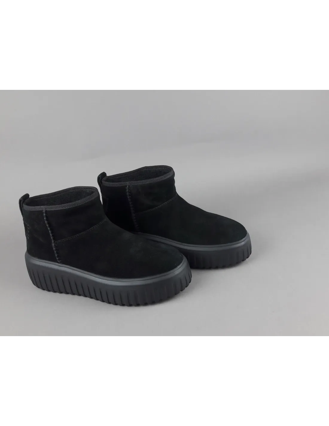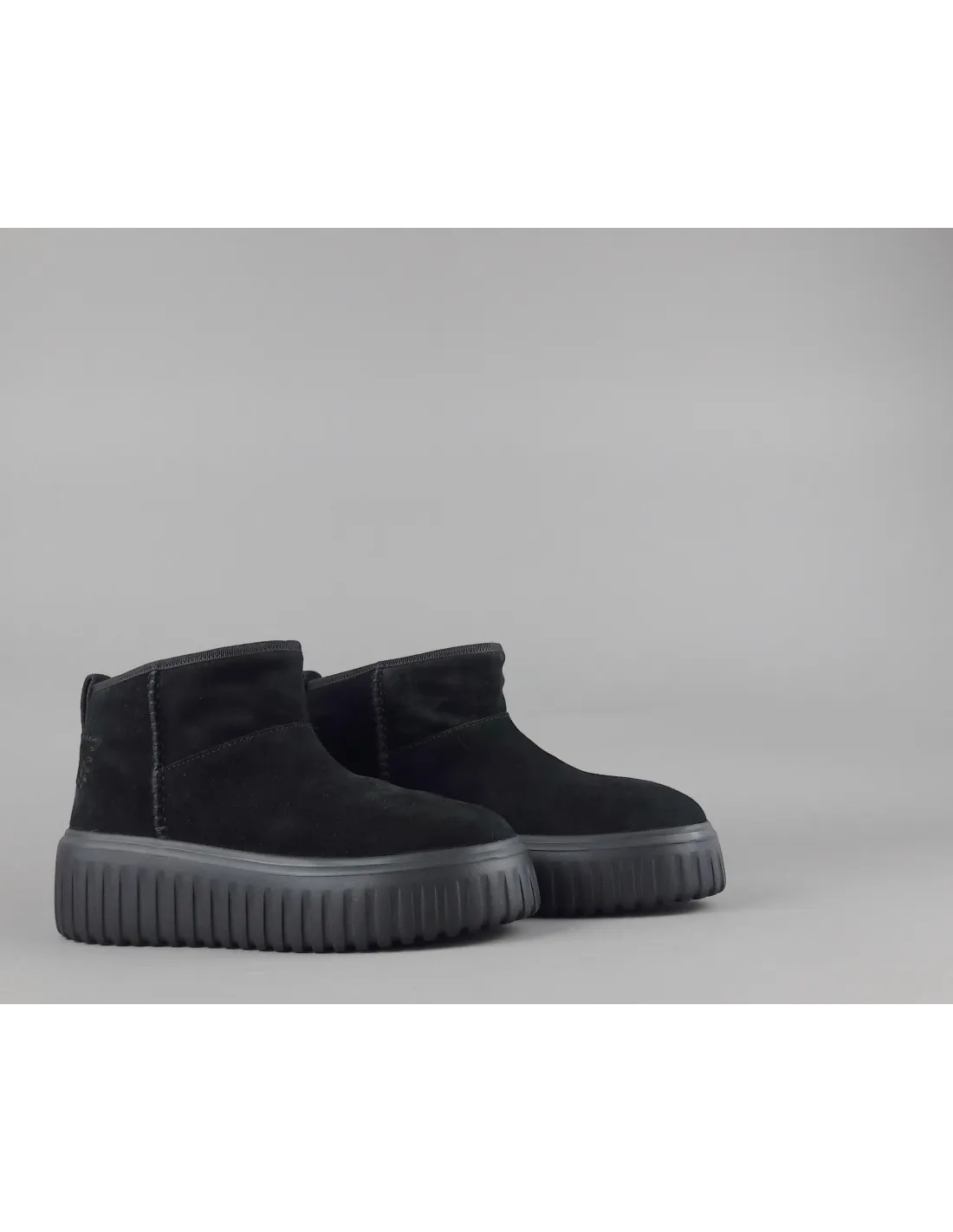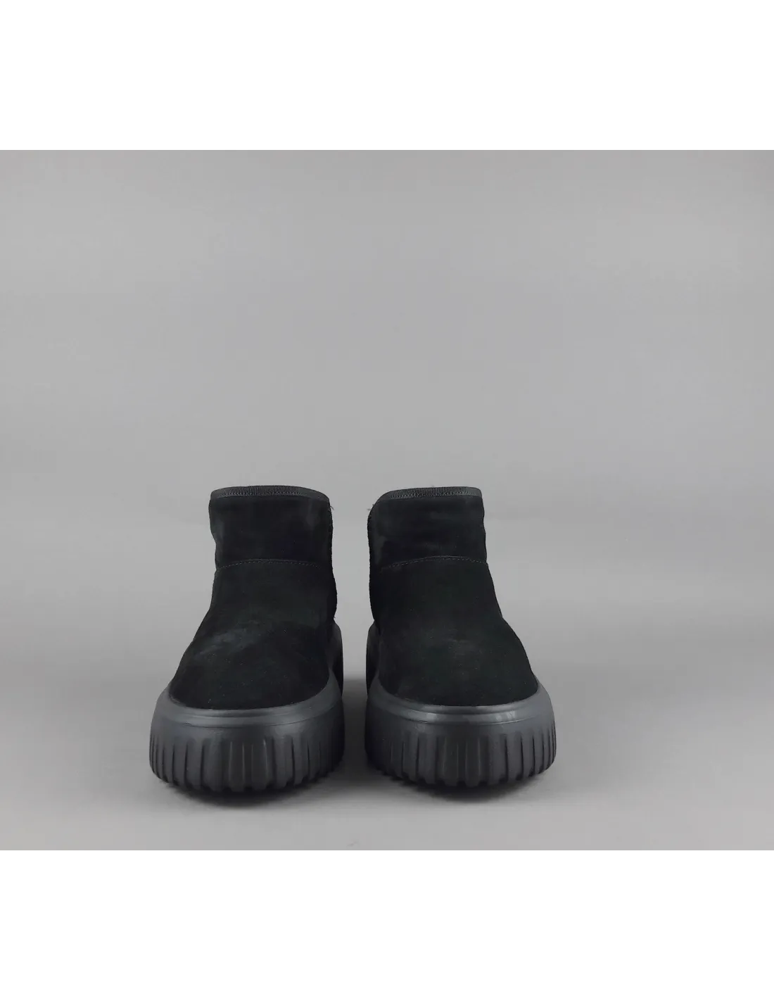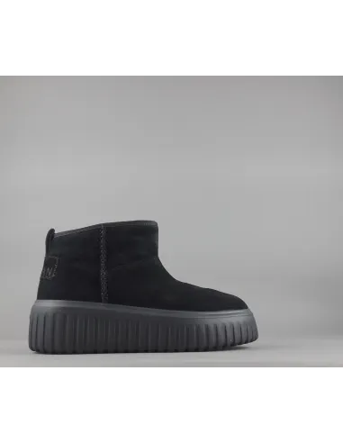 Collezione invernale, stivaletto donna fondo STRIPES, camoscio nero con interno in pile, logo cucito su banda posteriore, fondo gomma 5,8cm.