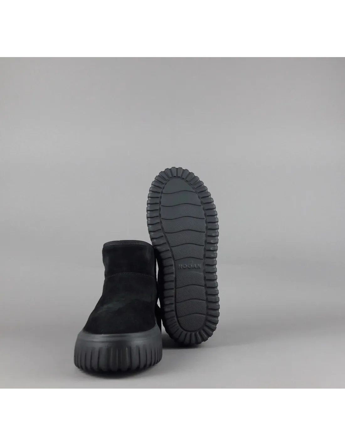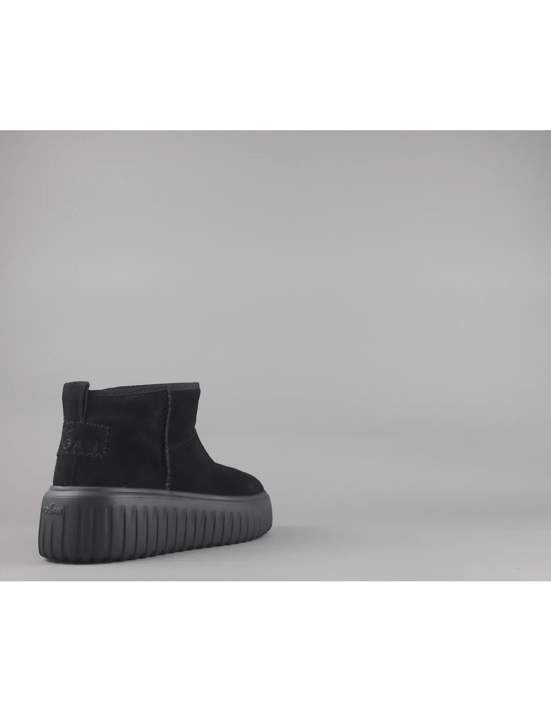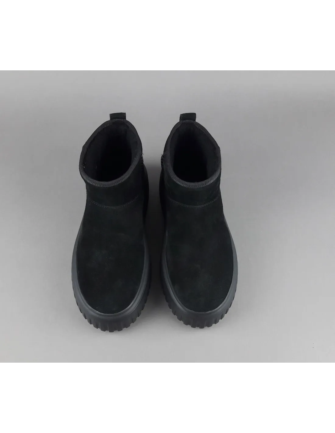 Collezione invernale, stivaletto donna fondo STRIPES, camoscio nero con interno in pile, logo cucito su banda posteriore, fondo gomma 5,8cm.