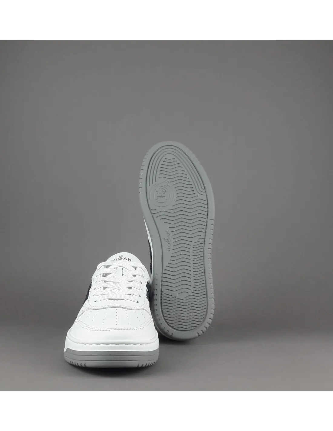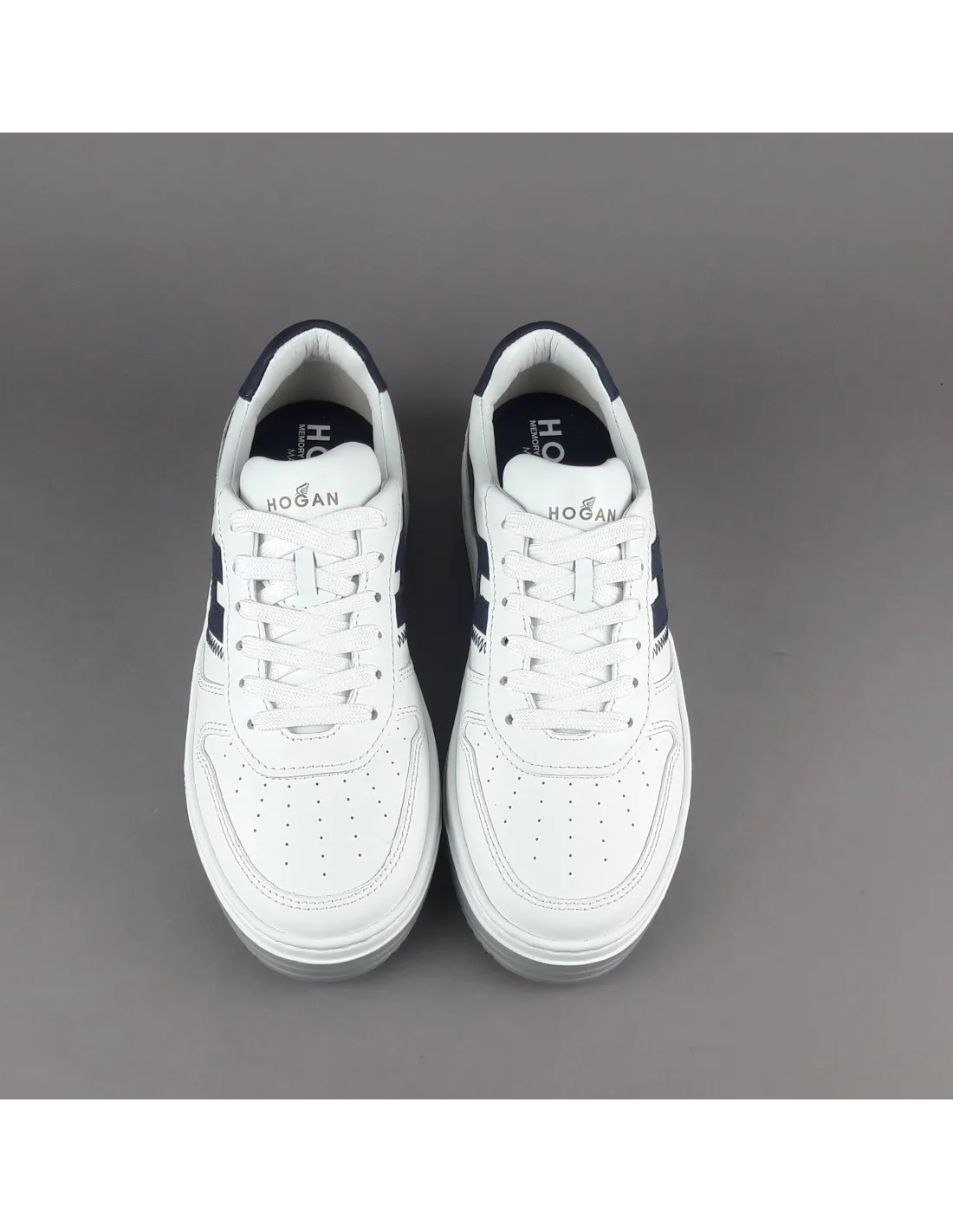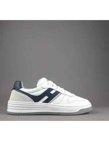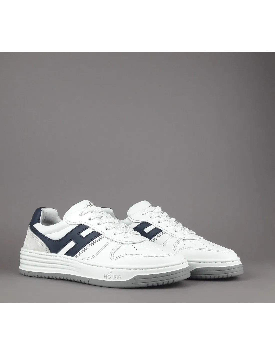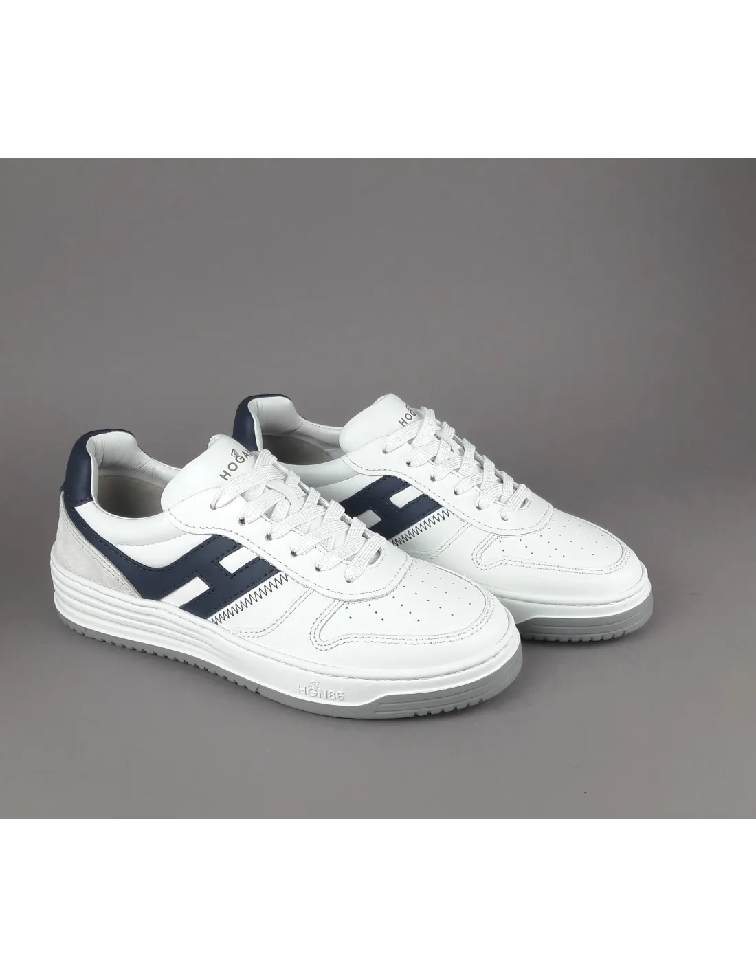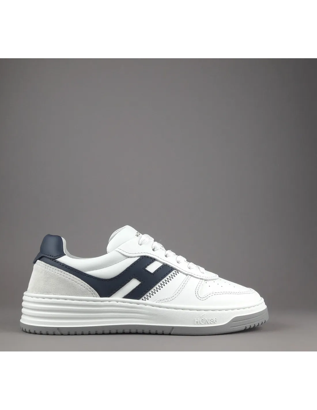 Collezione invernale, sneakers uomo H630, pelle, inserti in camoscio, h lunga e spoiler in pelle blu scuro, fussbett in memory foam estraibile, fondo gomma.