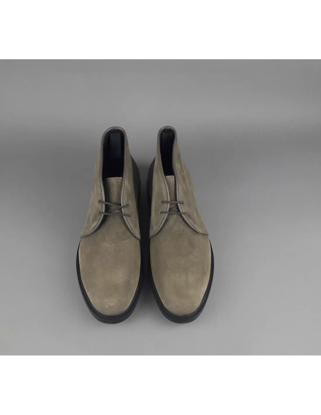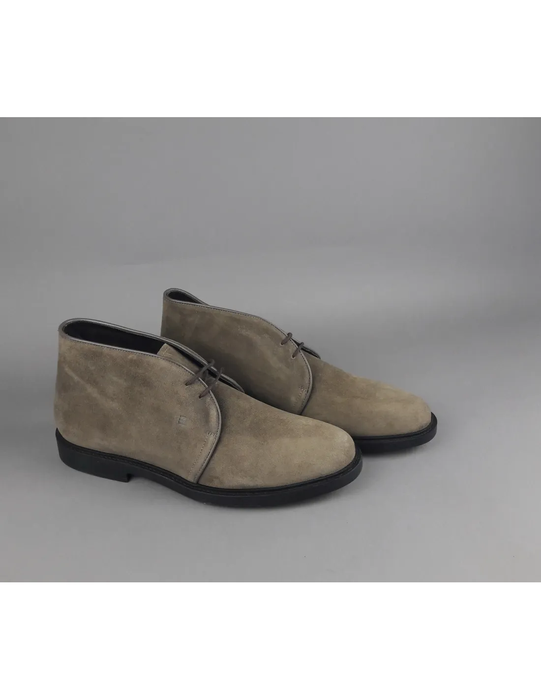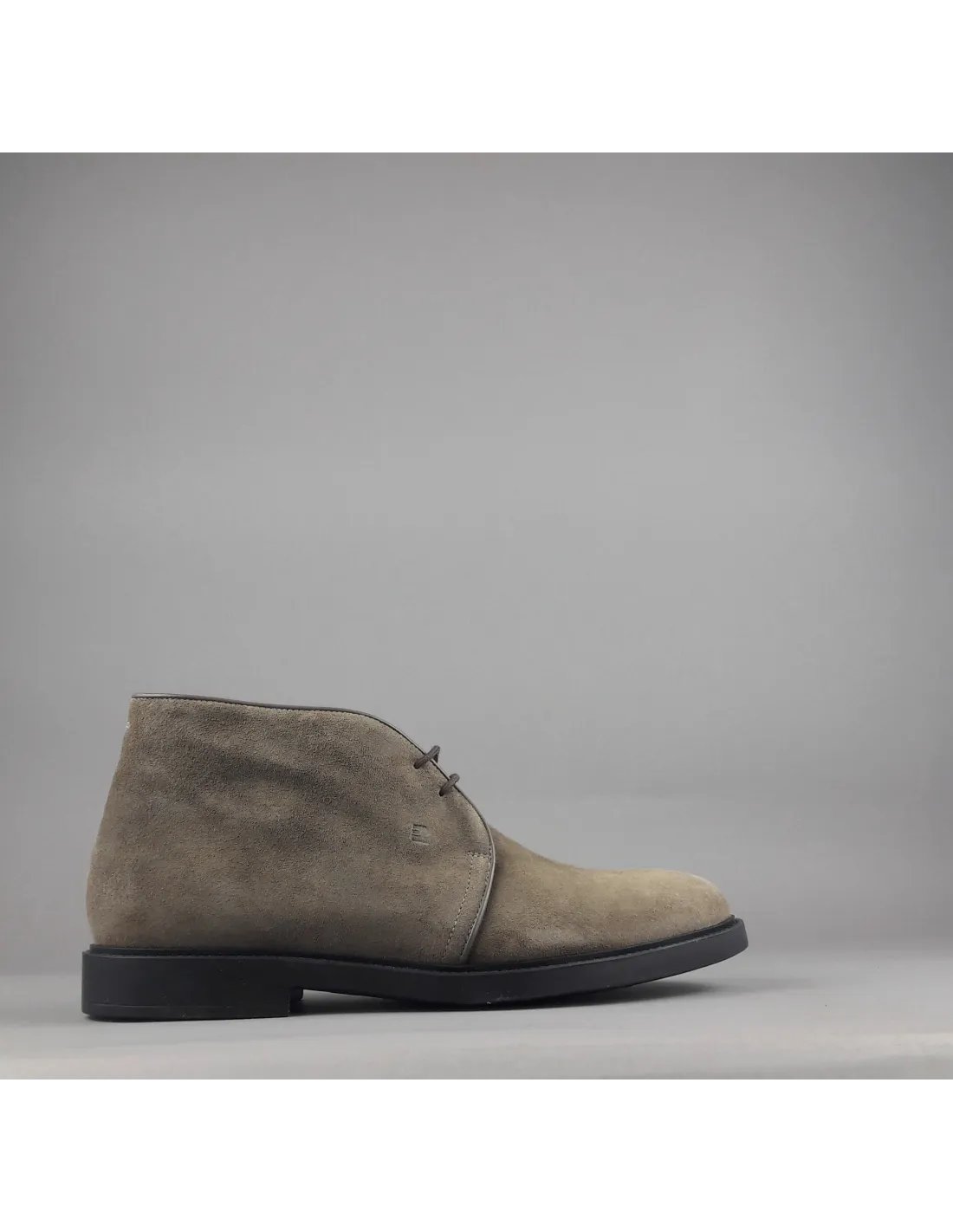 Collezione Invernale, Fratelli Rossetti polacchino uomo in camoscio idrorepellente, allacciatura a due buchi, monogramma impresso a lato, fondo gomma