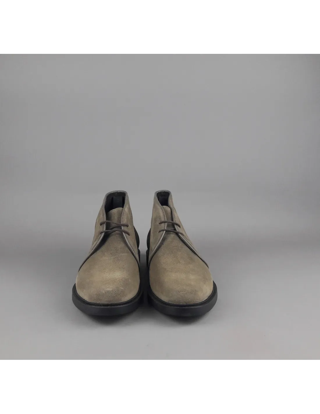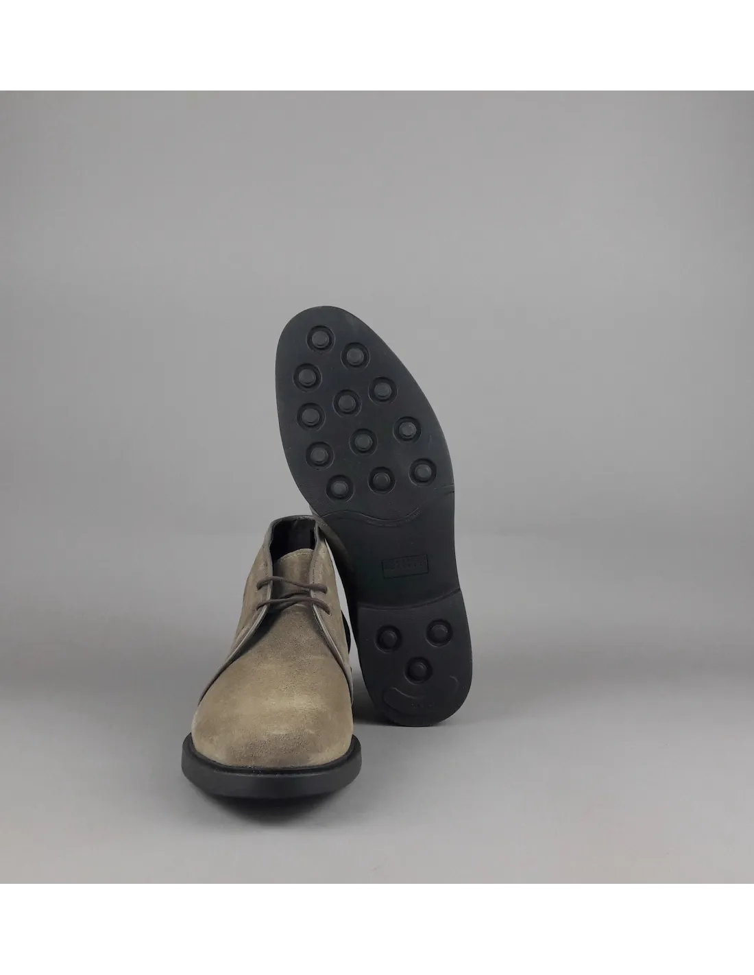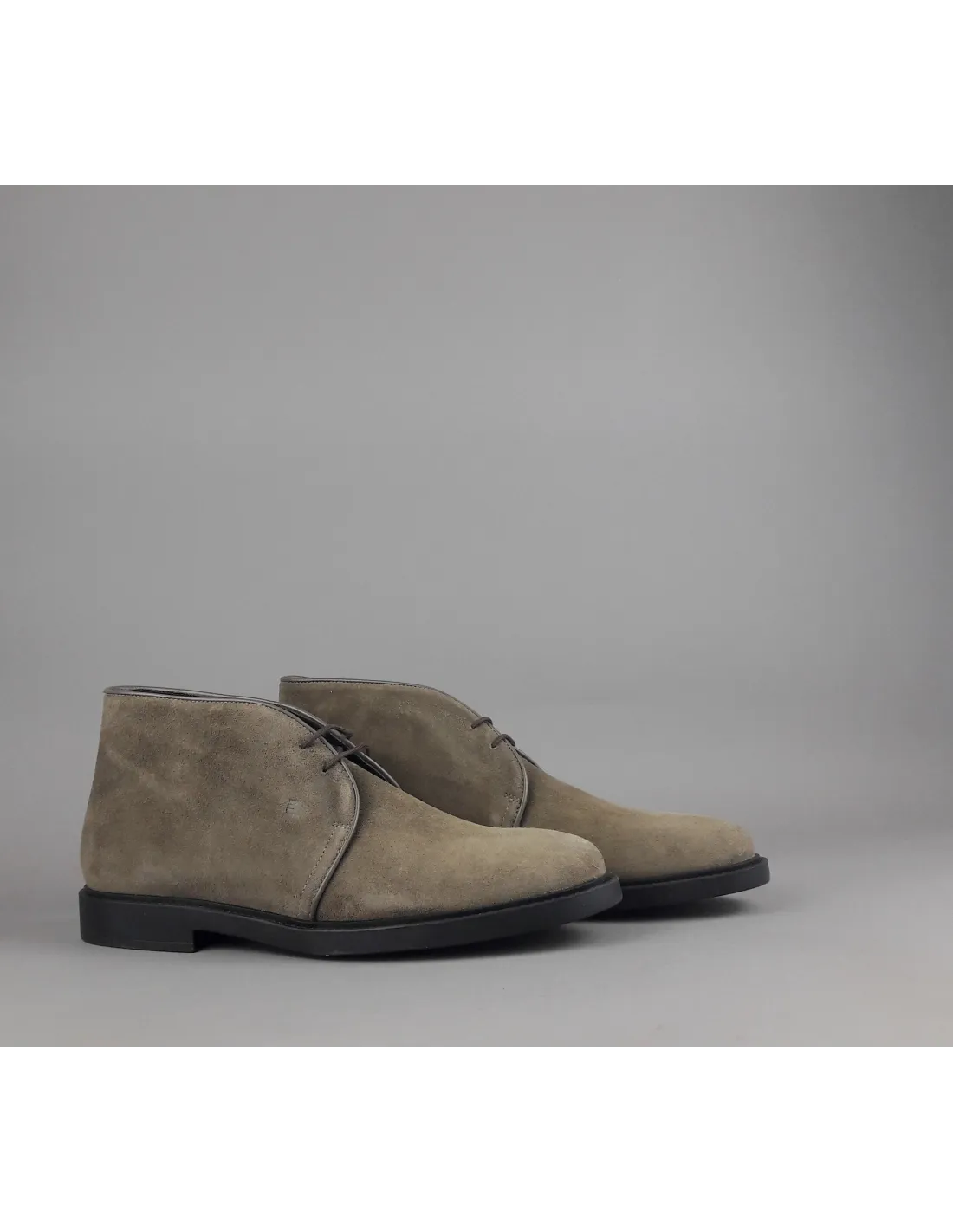 Collezione Invernale, Fratelli Rossetti polacchino uomo in camoscio idrorepellente, allacciatura a due buchi, monogramma impresso a lato, fondo gomma
