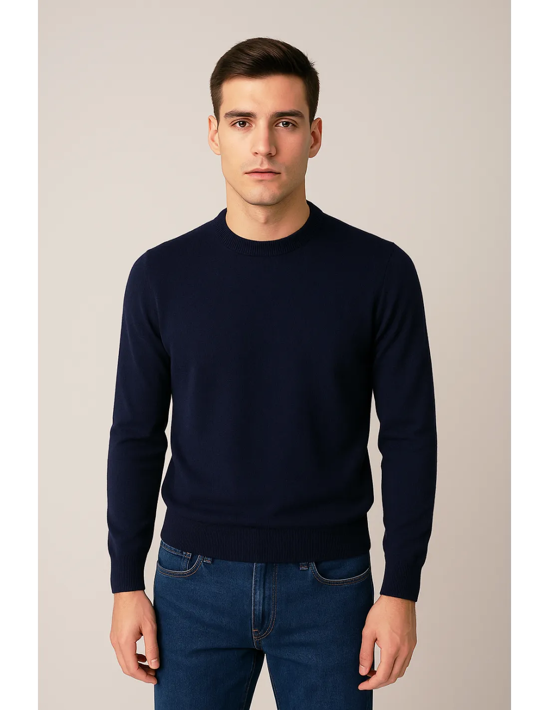 Collezione invernale, Maglia girocollo uomo Filippo De Laurentiis, in lana merino 120s, manica lunga, polsi e collo lavorazione a coste, vestibilità regular