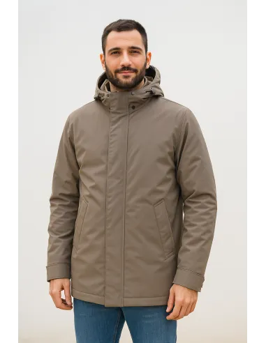 Collezione invernale, Giubbino uomo Barrow, tessuto Soft Shell idrorepellente, vestibilità regular, cappuccio staccabile, chiusura con zip coperta da patta, tasche con bottone a pressione, imbottitura : 63% piumino 30% poliestere 7% piuma