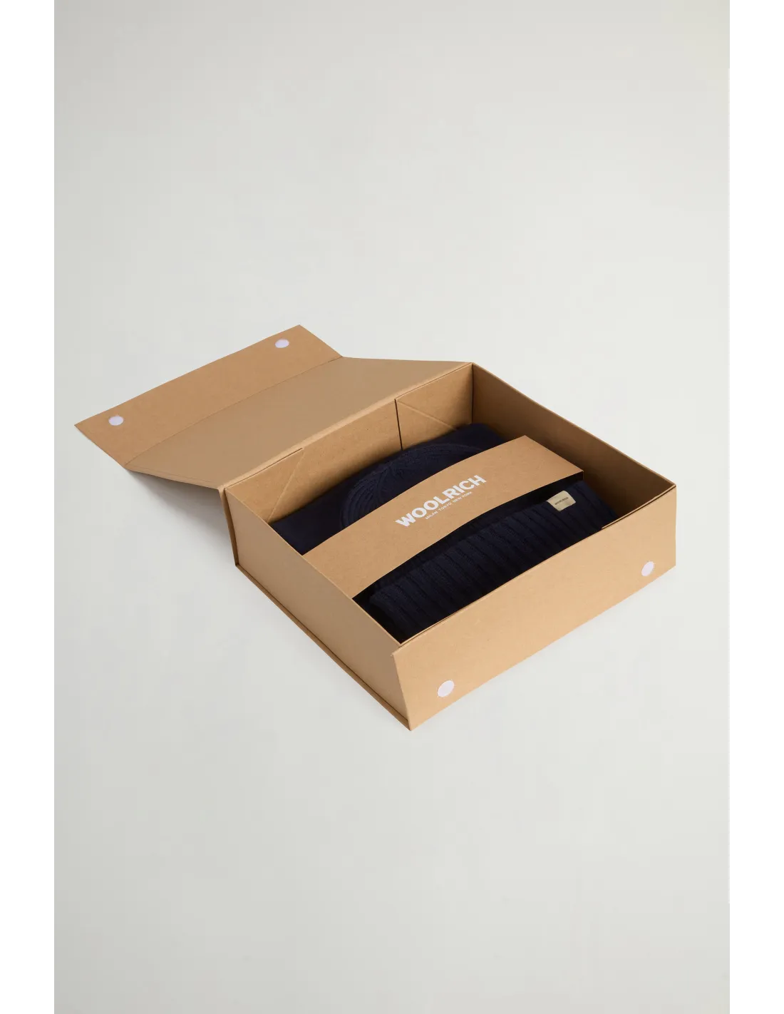 Woolrich \ Sciarpa Cappello Kit Unisex Misto Lana Blu Scuro Prezzo 140,00