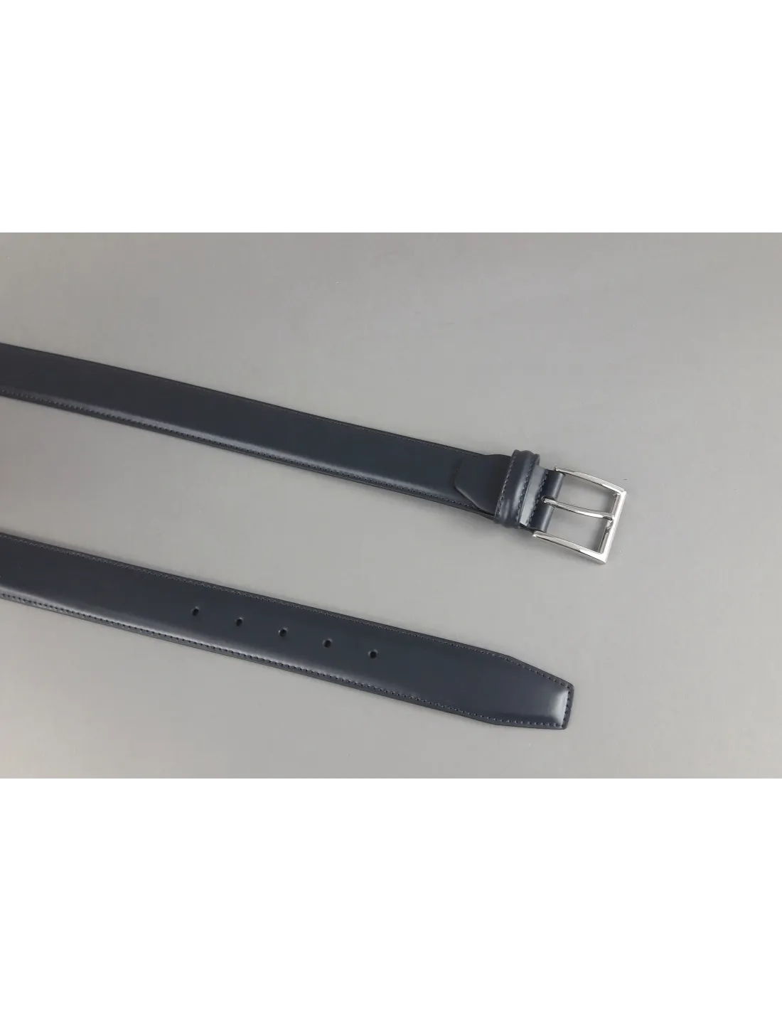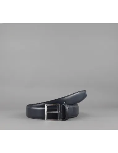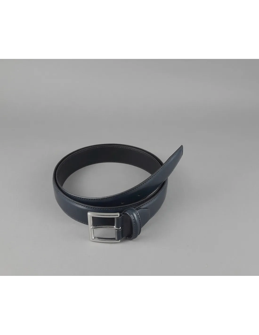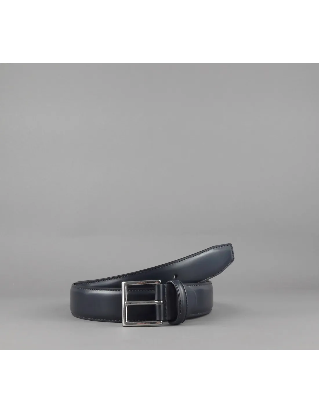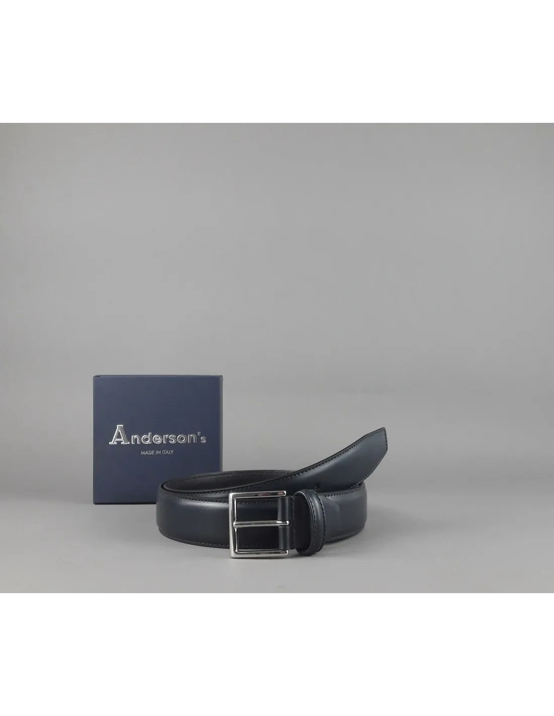Anderson's, Cintura uomo in pelle Blu Scuro, cucitura lungo il bordo, accorciabile con vite, fibbia in metallo cromato.