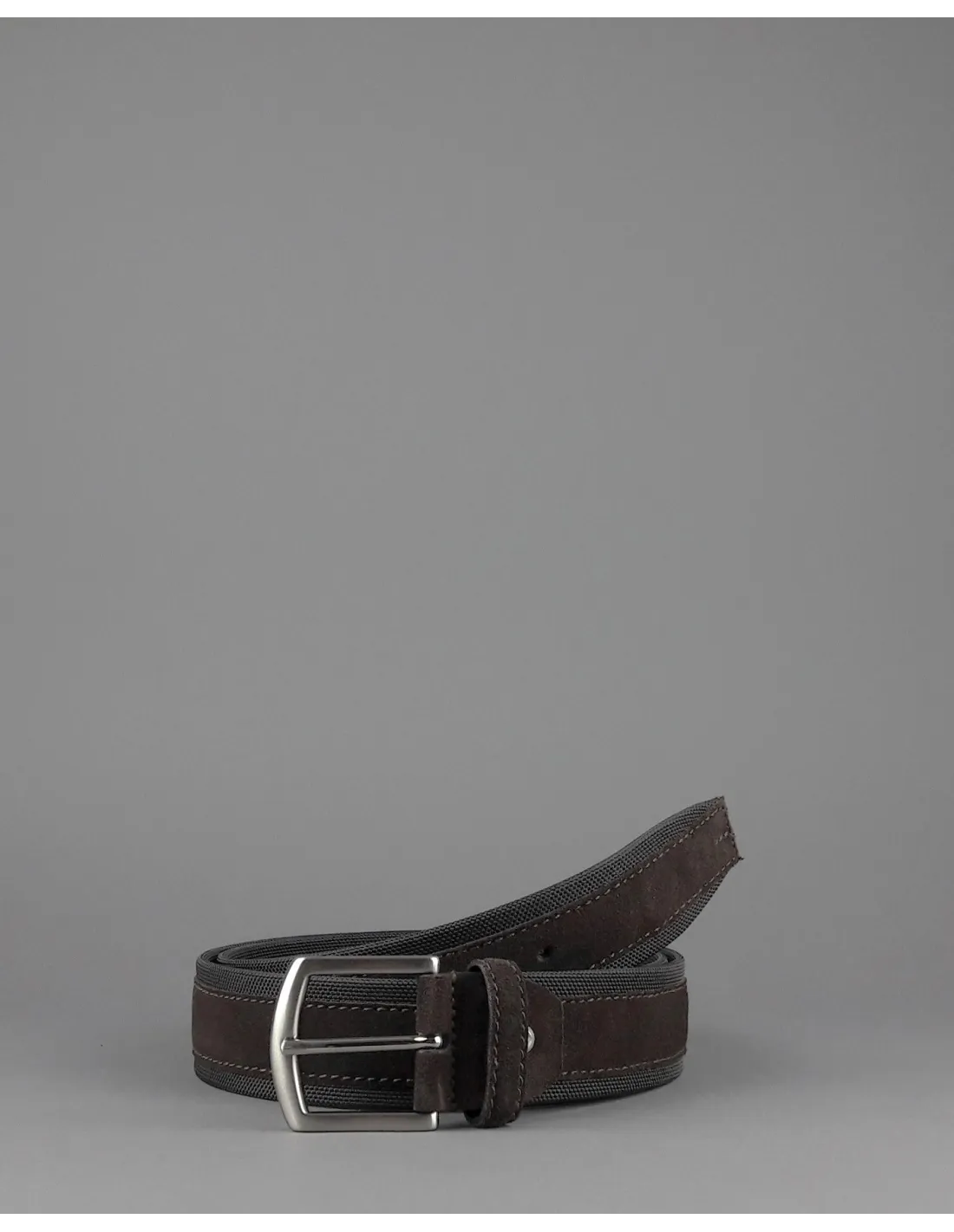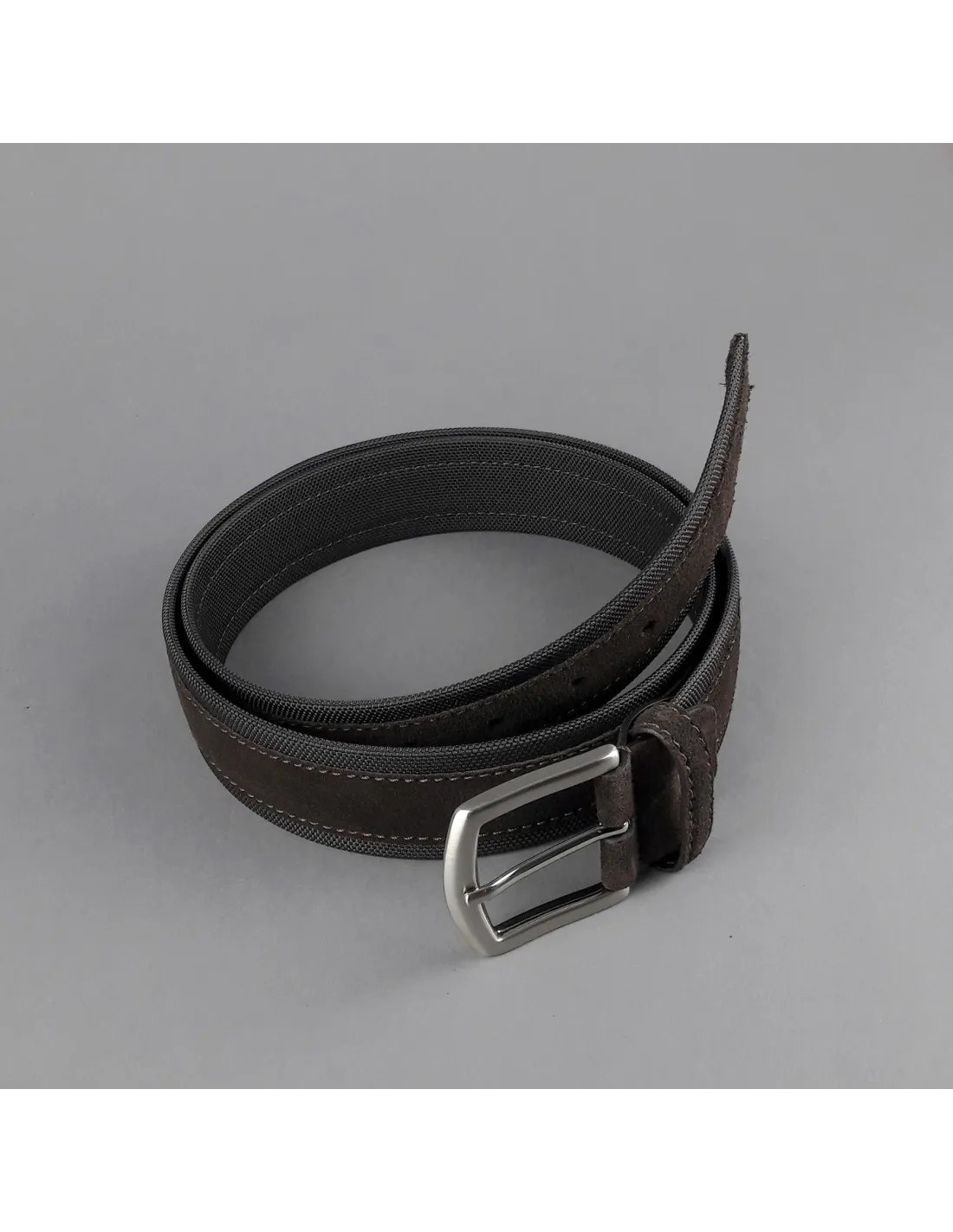 Anderson's, Cintura uomo in tessuto tecnico Marrone Scuro, rifinitura centrale in Camoscio Marrone Scuro, accorciabile con vite, fibbia in metallo cromato.