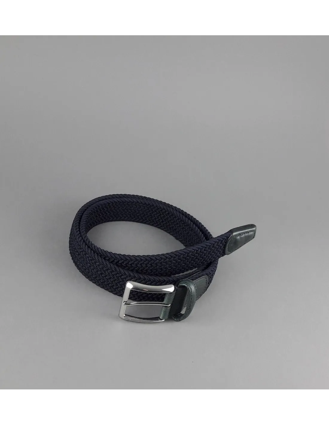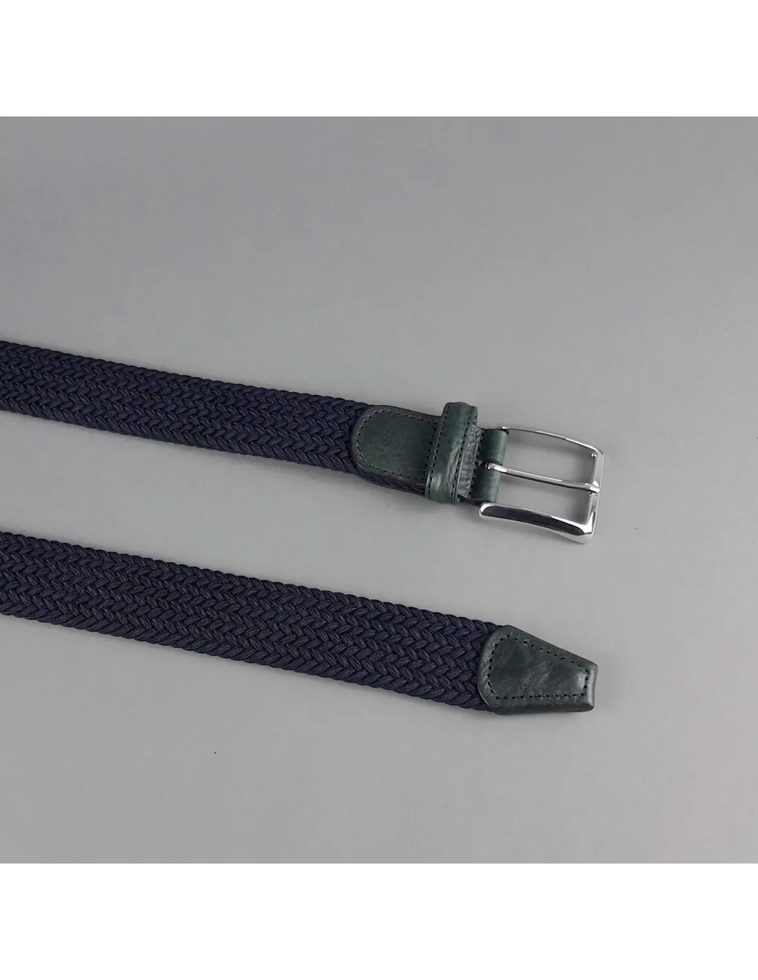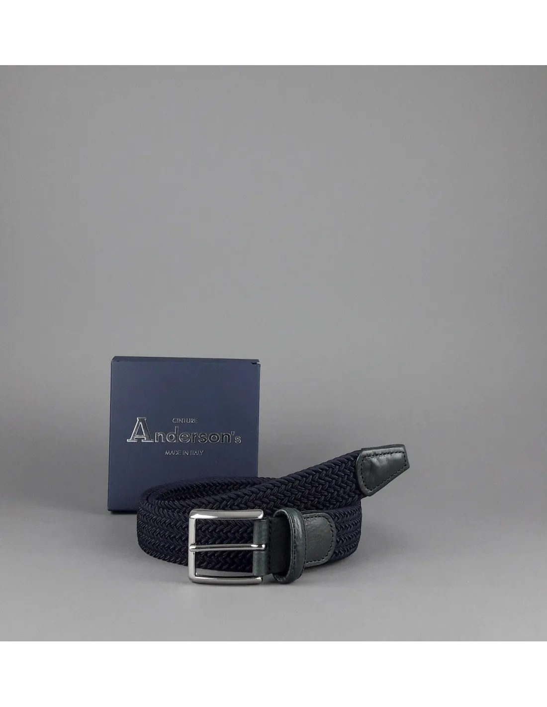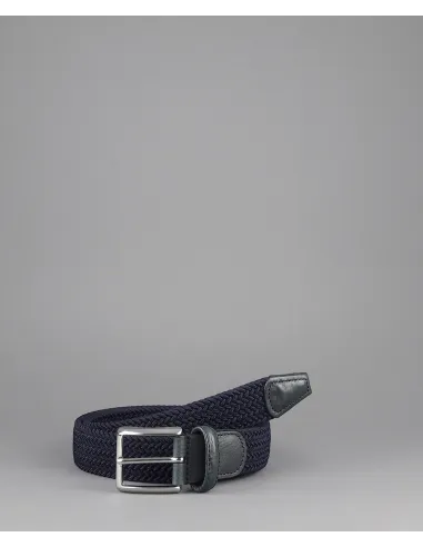 Anderson's, Cintura uomo in tessuto elastico intrecciato Blu Scuro, rifinitura puntale e fibbia in Pelle Blu , fibbia in metallo cromato.