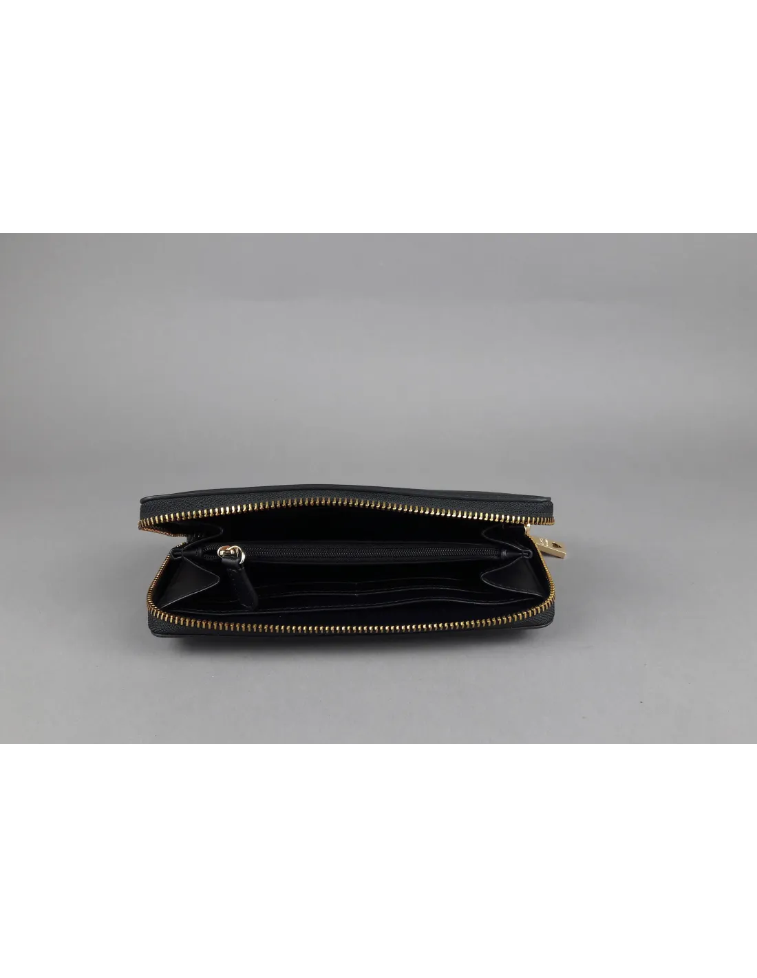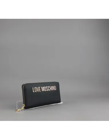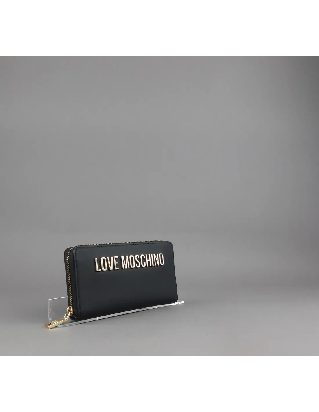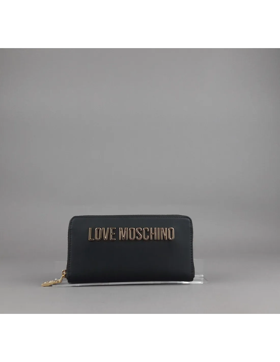 Love Moschino collezione invernale, portafogli donna in poliuretano liscio, chiusura con cerniera, logo metallo frontale