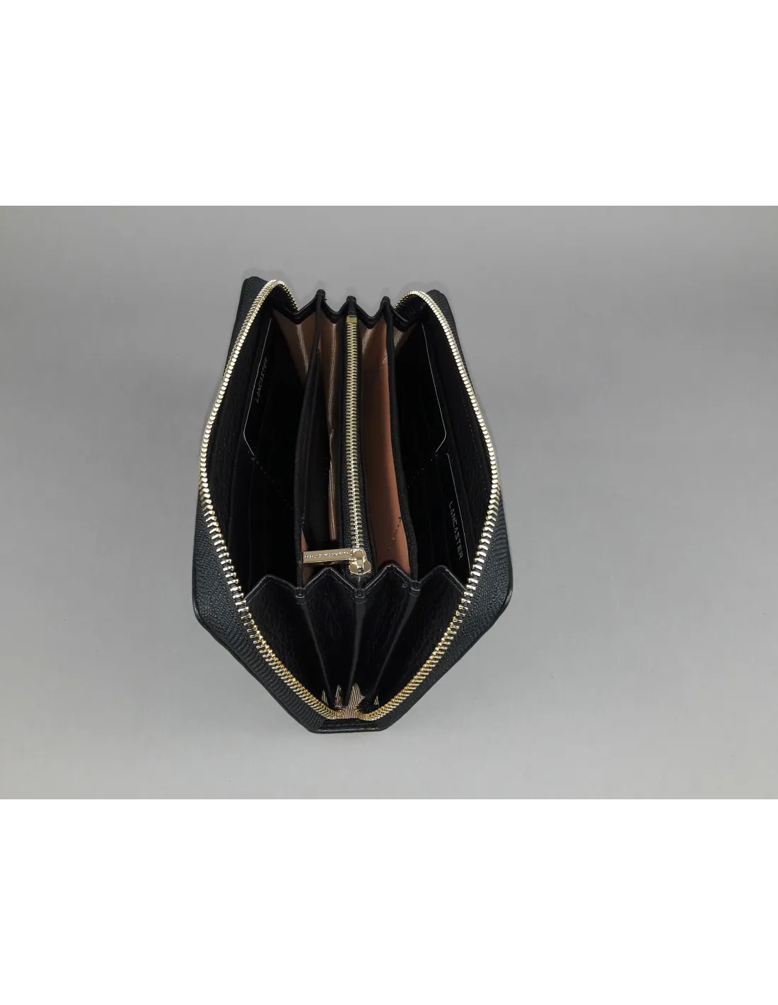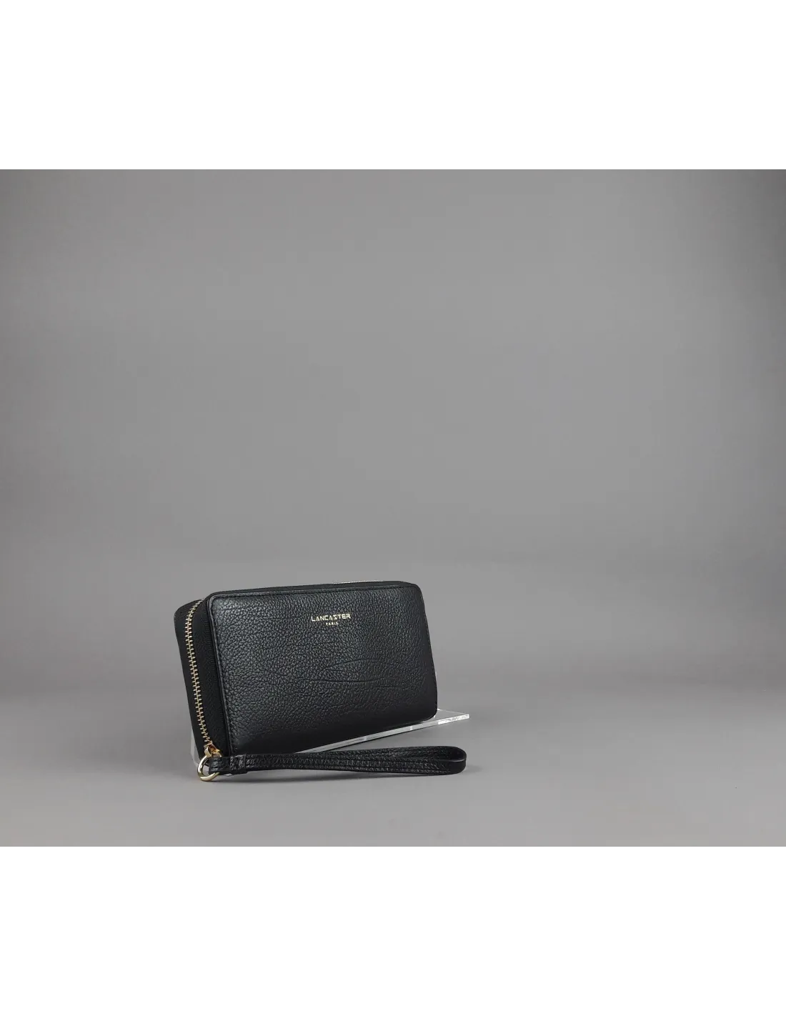 Collezione invernale, portafoglio donna Lancaster Paris, pelle martellata, chiusura con cerniera zip around, logo stampato frontale
