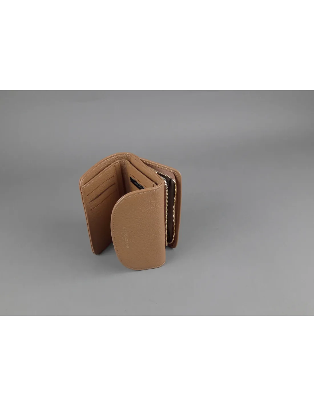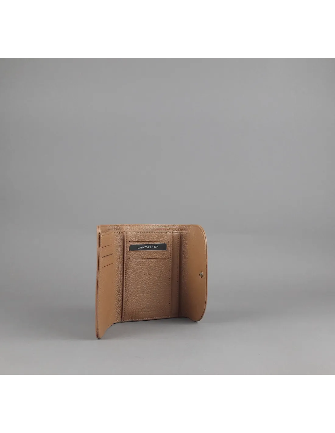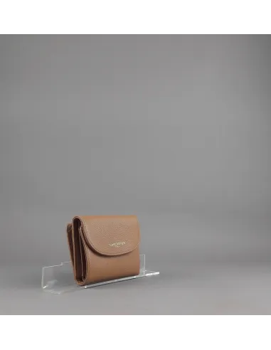 Collezione invernale, portafoglio piccolo donna Lancaster Paris, pelle martellata, chiusura con bottone a pressione, portamonete posteriore con zip, logo stampato frontale