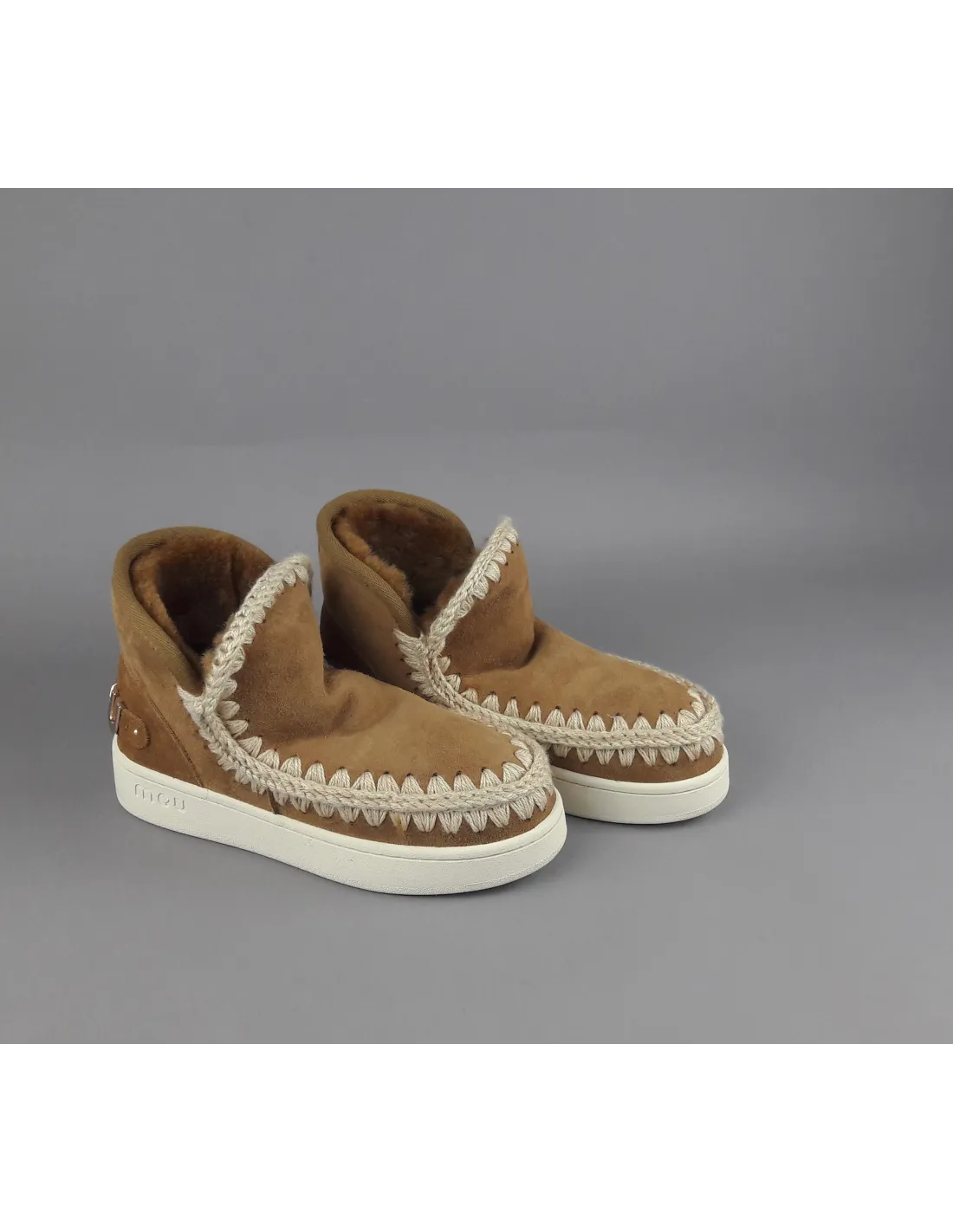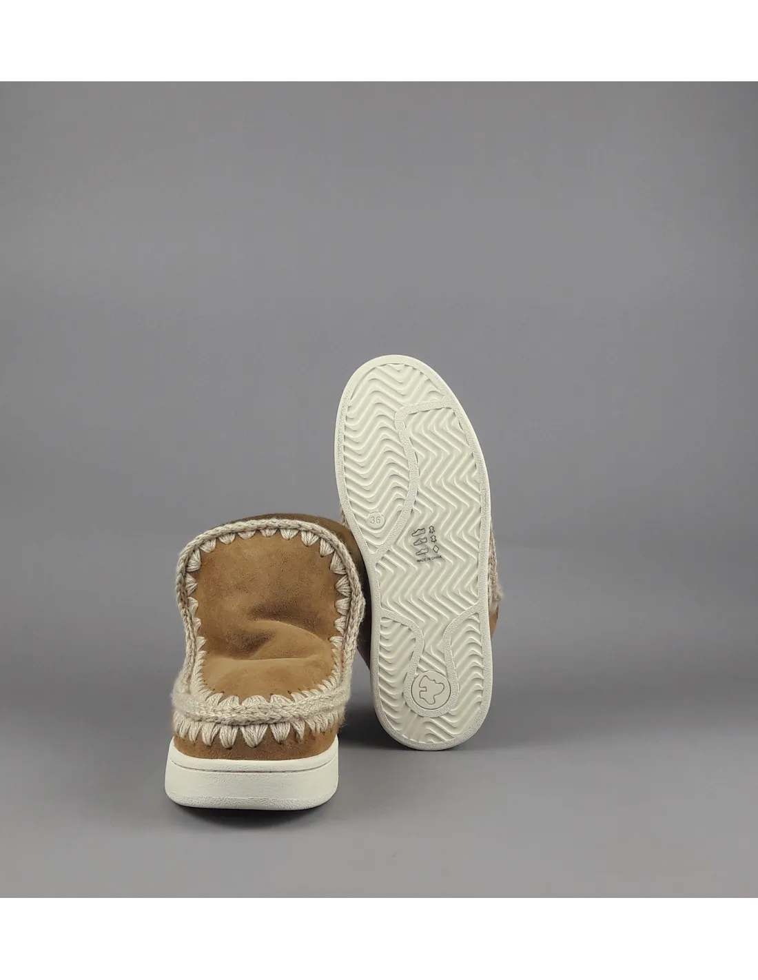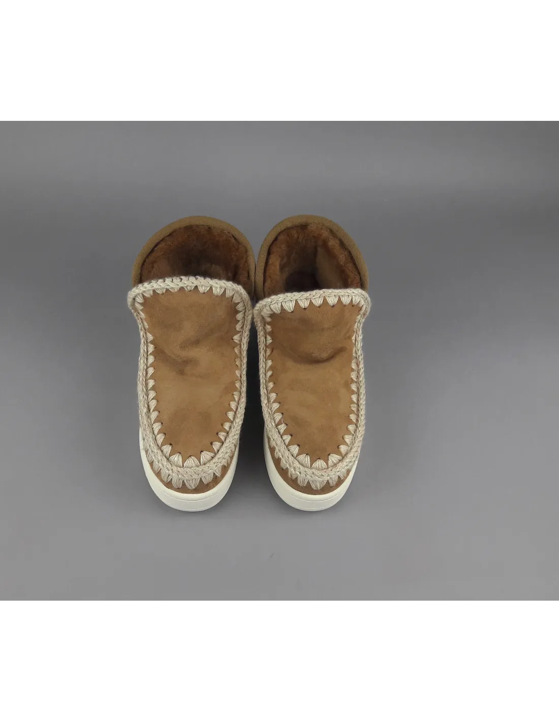 Collezione invernale, eskimo sneaker donna, montone double face, logo metallo, dettagli all'uncinetto lavorati a mano, atezza 15 cm, fondo sneakers,