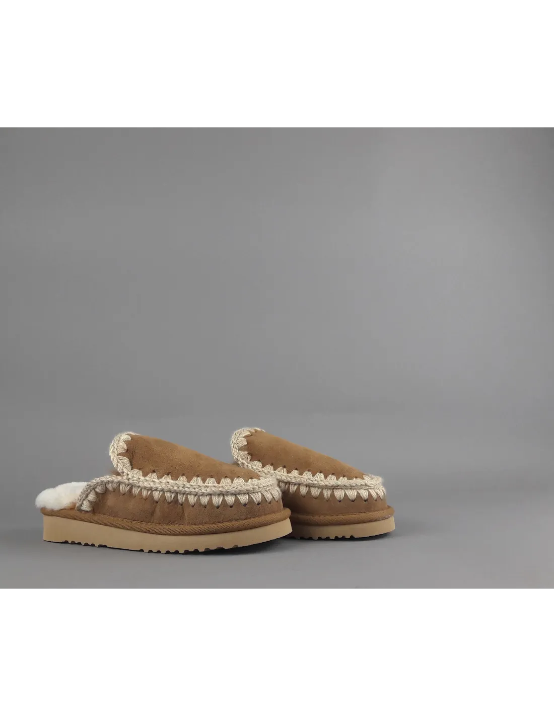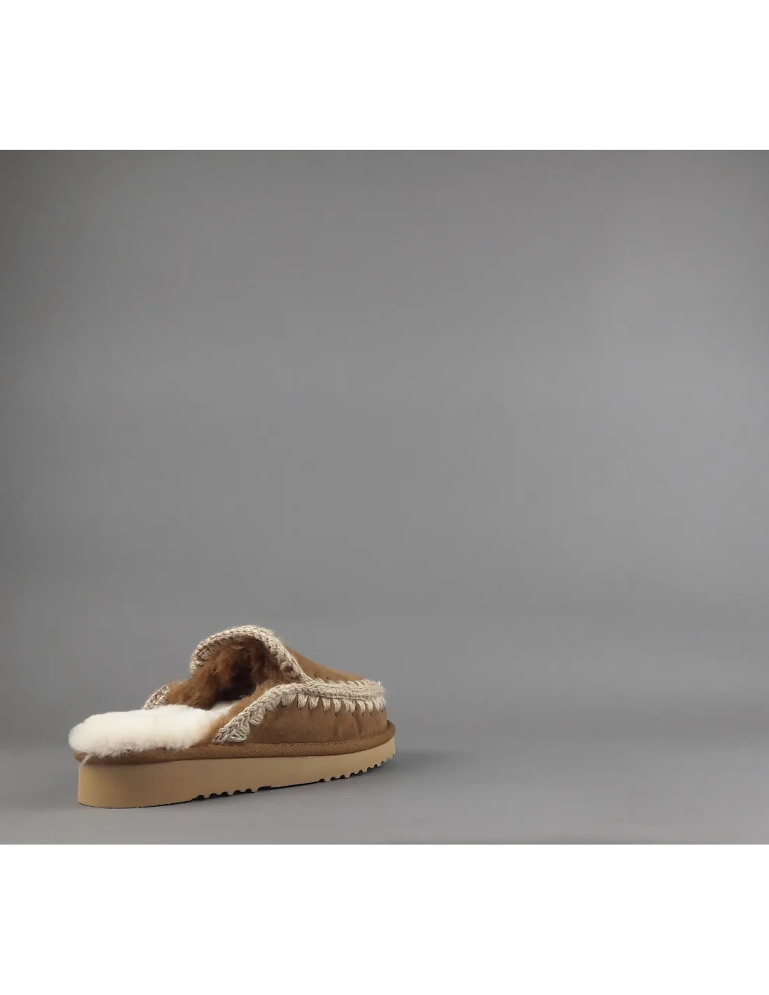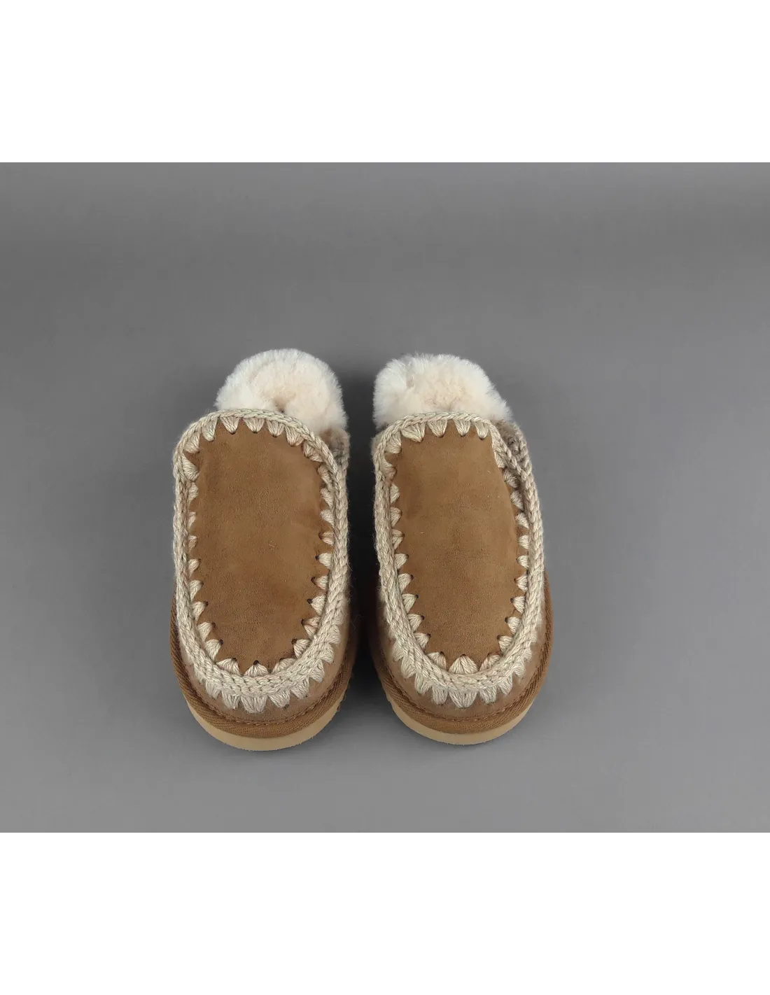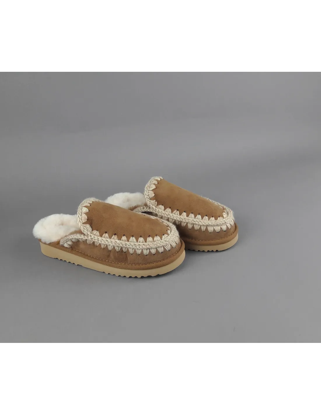 Collezione invernale, eskimo Slipper full donna, montone double face, dettagli all'uncinetto lavorati a mano, fondo gomma,