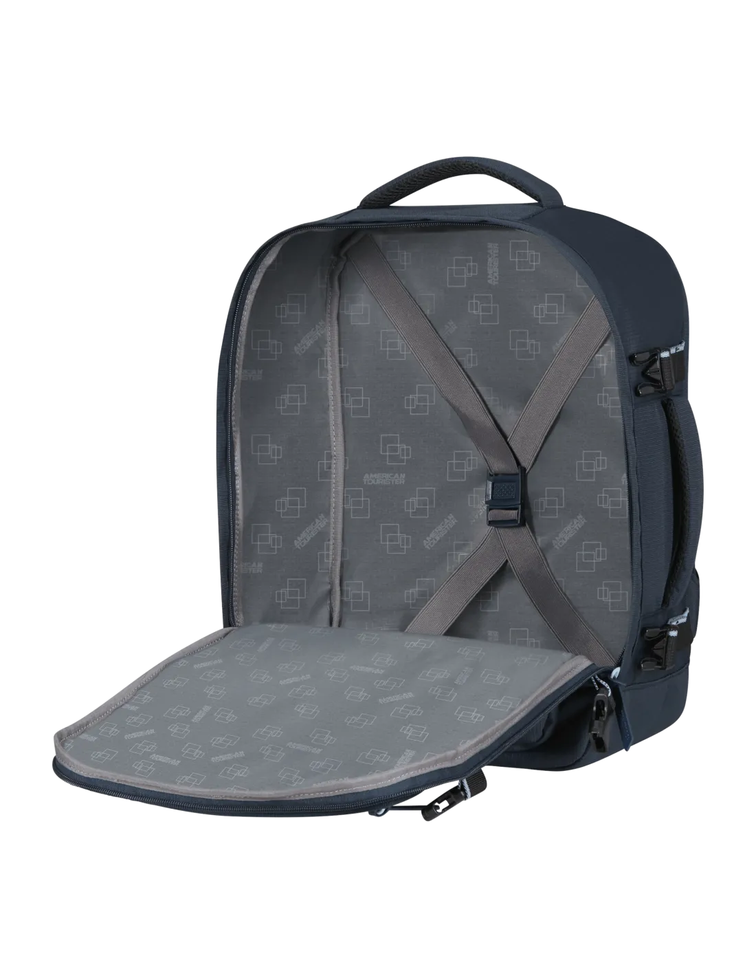 American Tourister BY Samsonite Zaino borsa Take 2 Cabin S/M in tessuto nylon riciclato, chiusure con zip, spallacci ergonomici imbottiti, manico centrale, cinghie di compressione interne.
