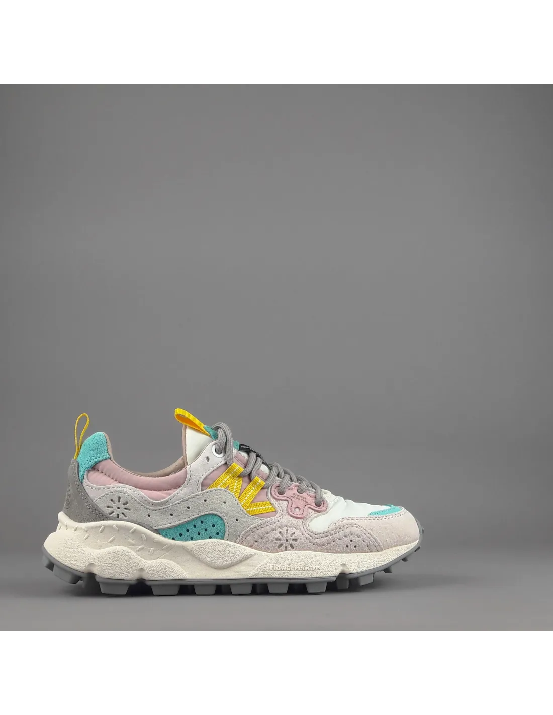Collezione estiva, sneakers donna yamano 3, in camoscio multicolor con inserti in tela, logo laterale in contrasto, spoiler tallone in contrasto, sottopiede estraibile in sughero, fondo gomma