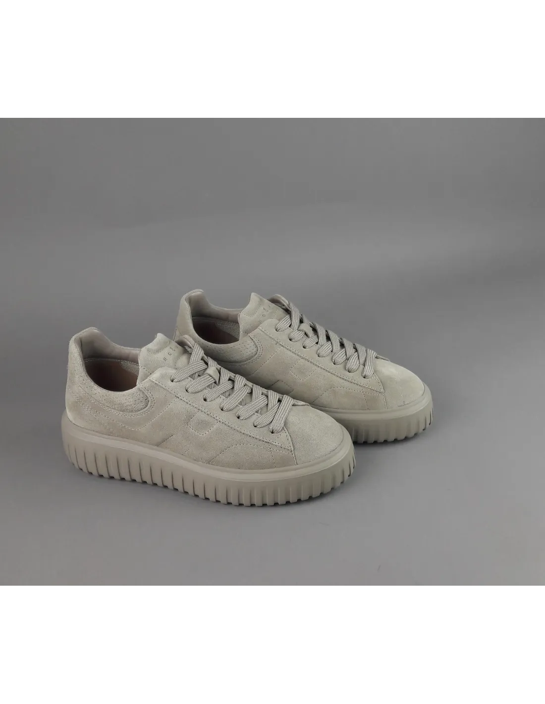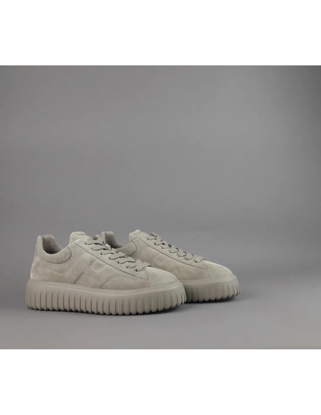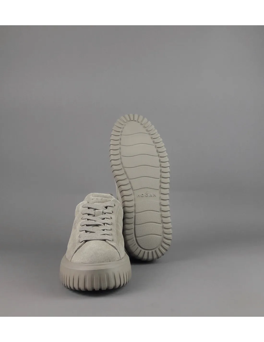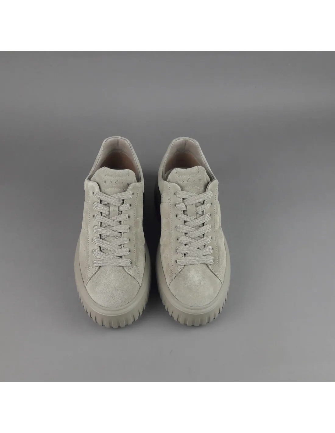 Collezione estiva, Sneakers H645 uomo in camoscio, H laterale stripes in camoscio talpa, foussbett in memory foam, suola in gomma.