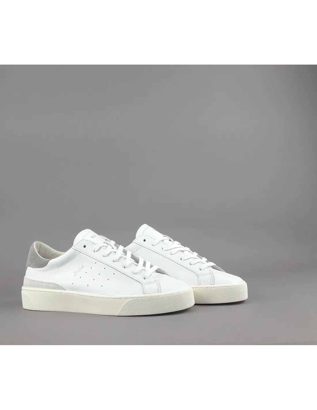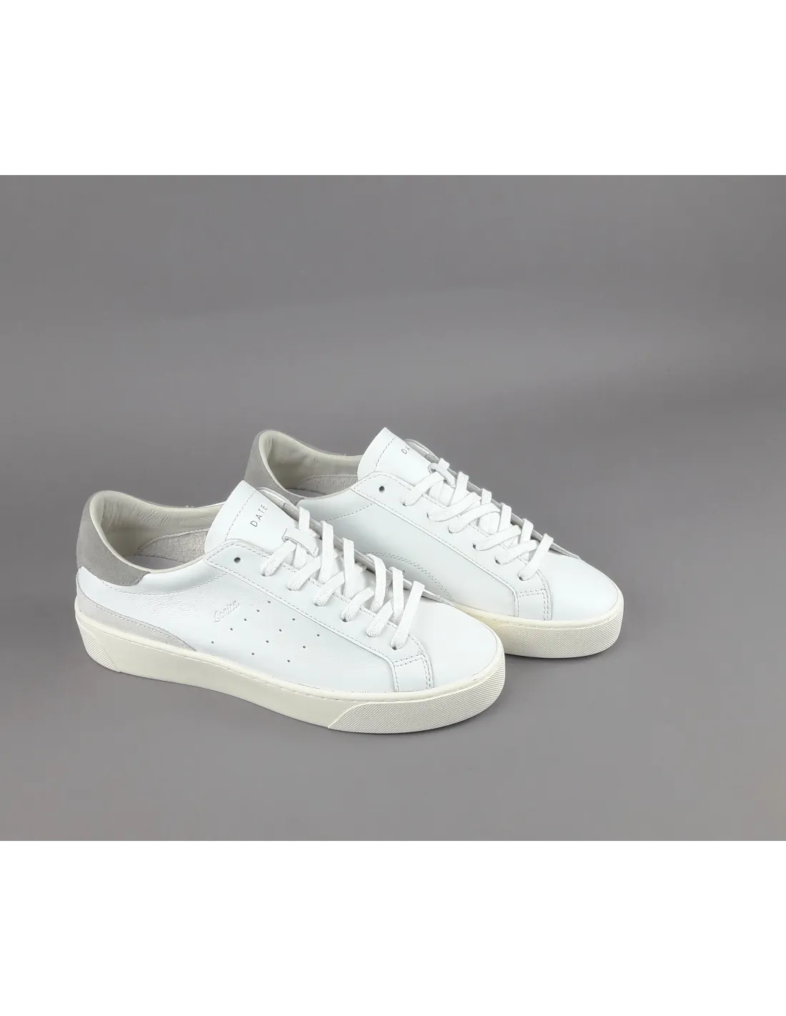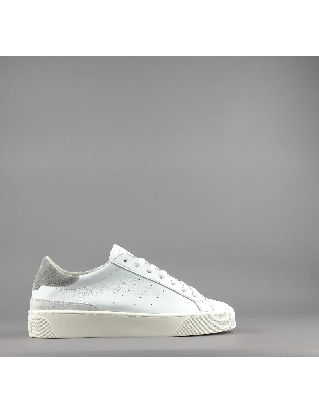 D.A.T.E. collezione estiva, Sneakers uomo SONICA in pelle, spoiler in camoscio grigio, bucature laterali, inserti in camoscio, soletta interna removibile di 2,5 cm, suola in gomma.