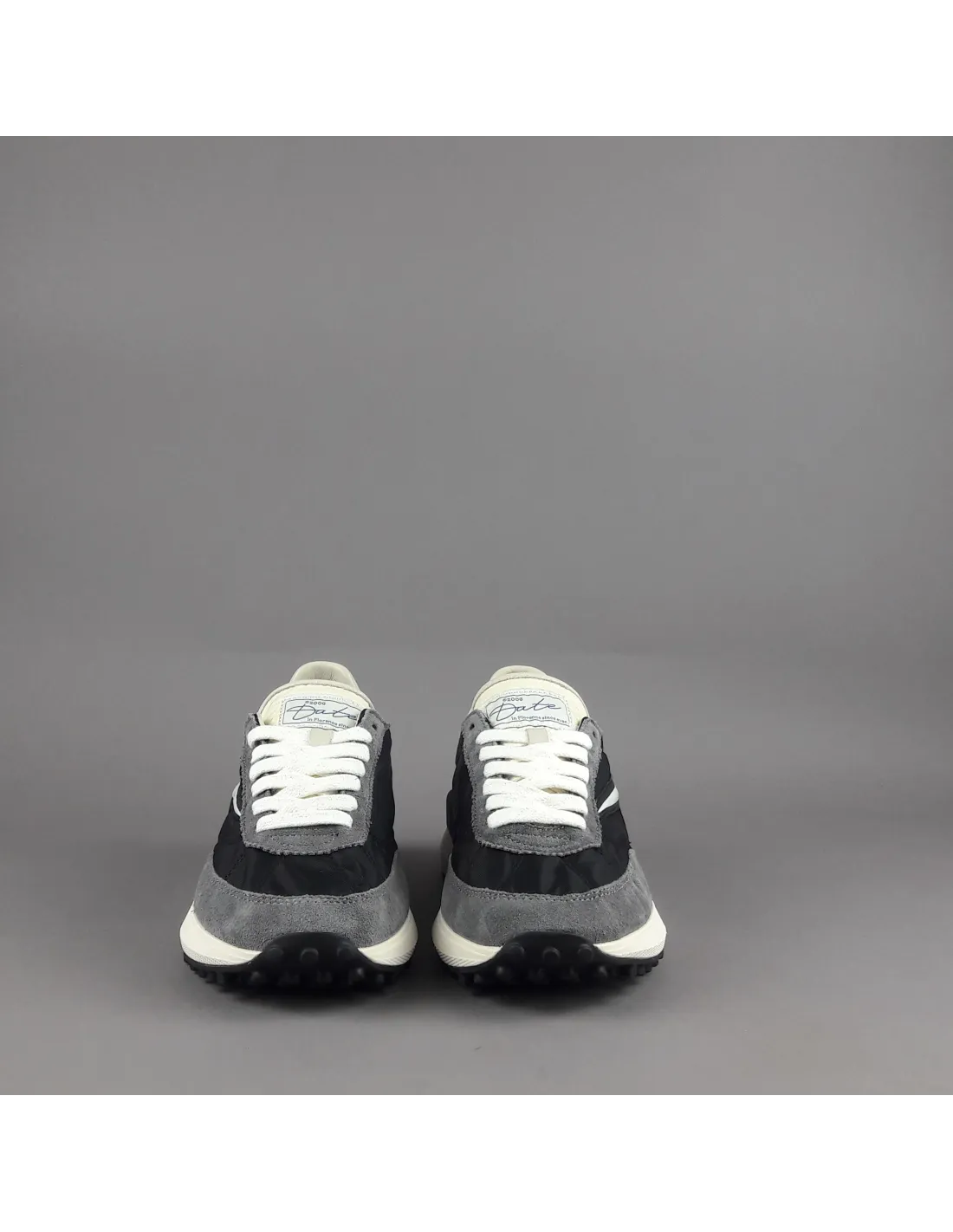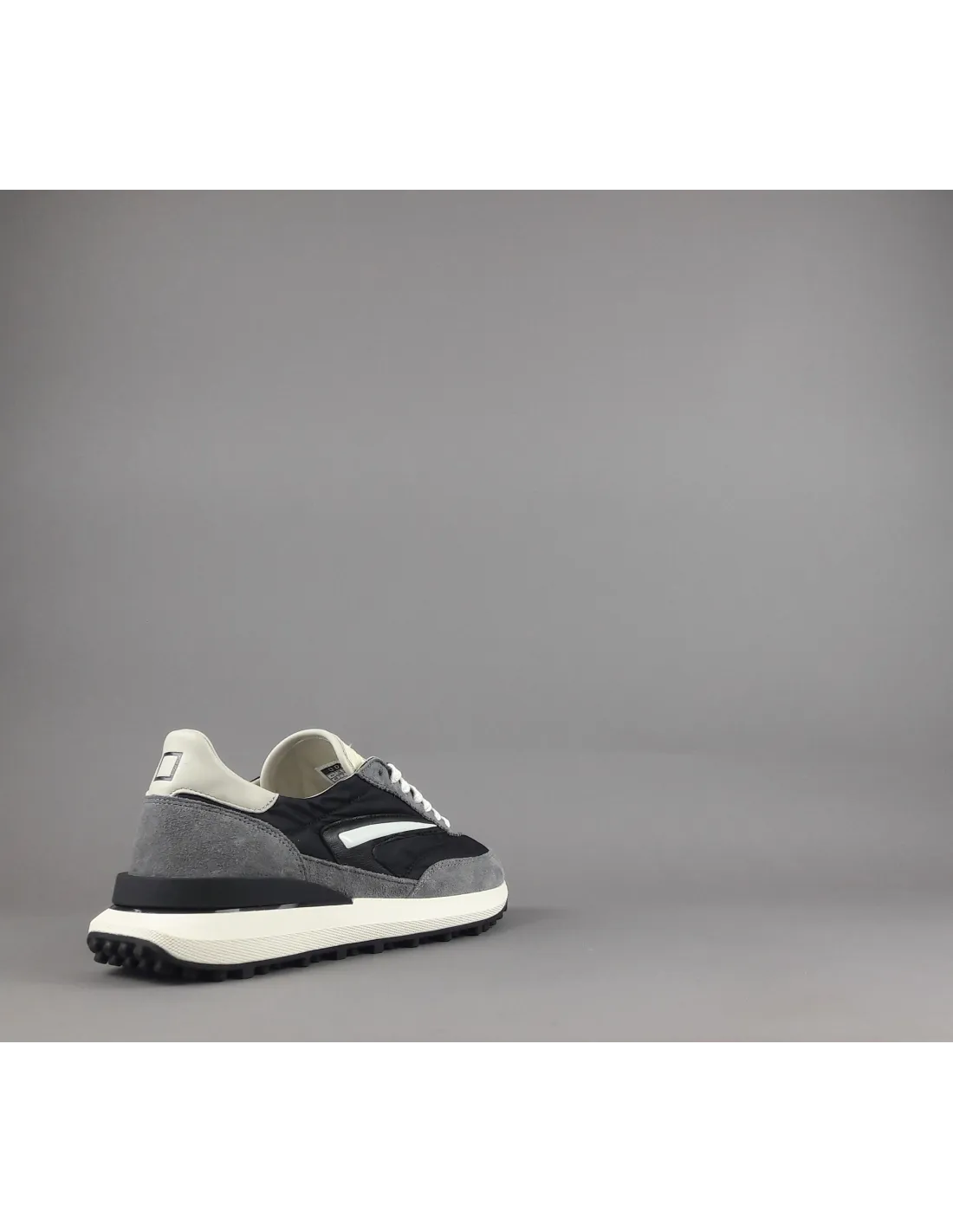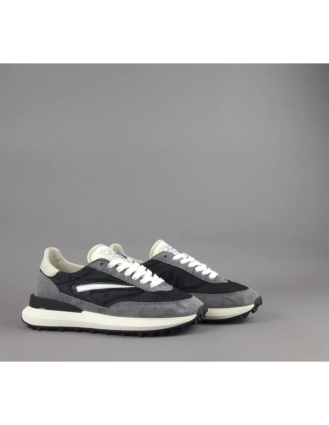 D.A.T.E collezione estiva, Sneakers uomo ATHLETA in camoscio grigio e tessuto tecnico nero, spoiler e baffo laterale avorio, soletta interna removibile di 2 cm, suola in gomma.