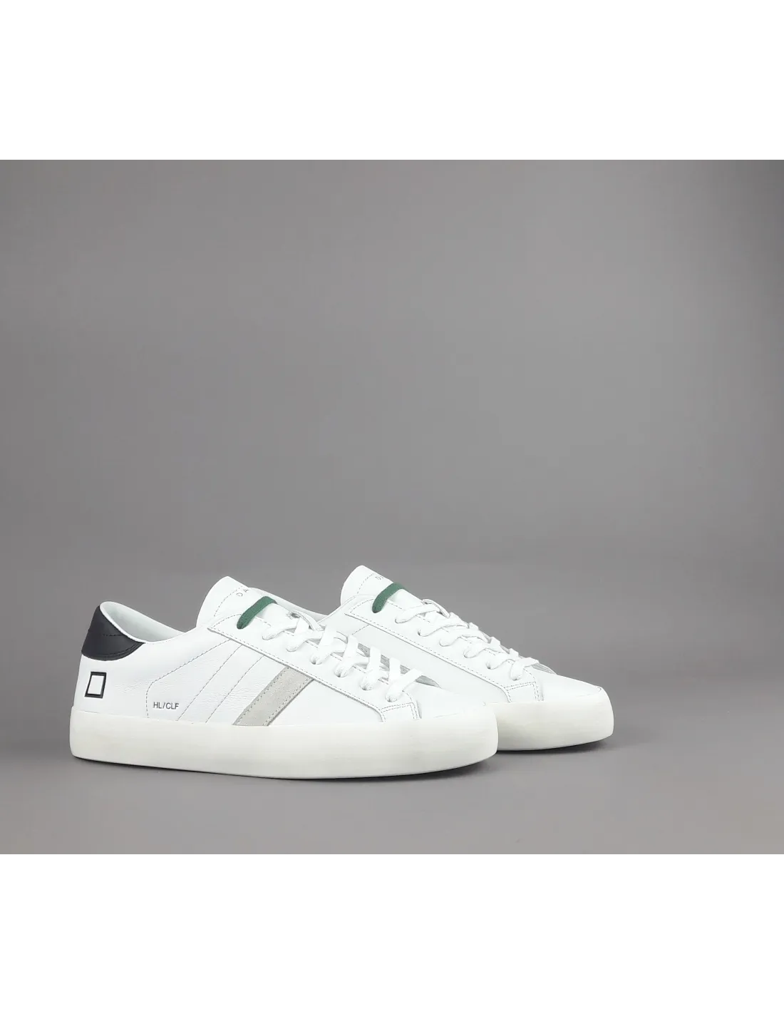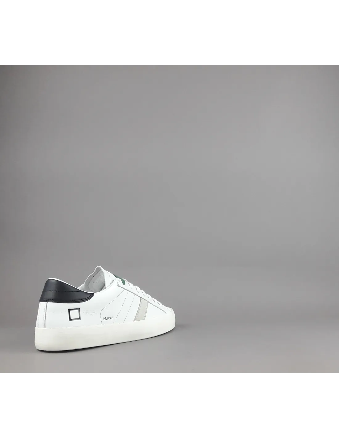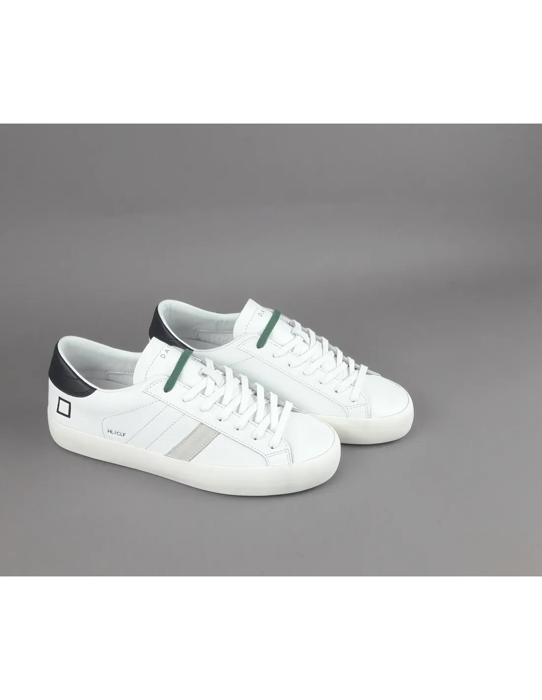 D.A.T.E. collezione estiva, Sneakers uomo D.A.T.E. HILL LOW in pelle, spoiler in pelle nero, doppio laccio, logo laterale impresso, striscia laterale camoscio ghiaccio, soletta interna removibile di 2,5 cm, suola in gomma.
